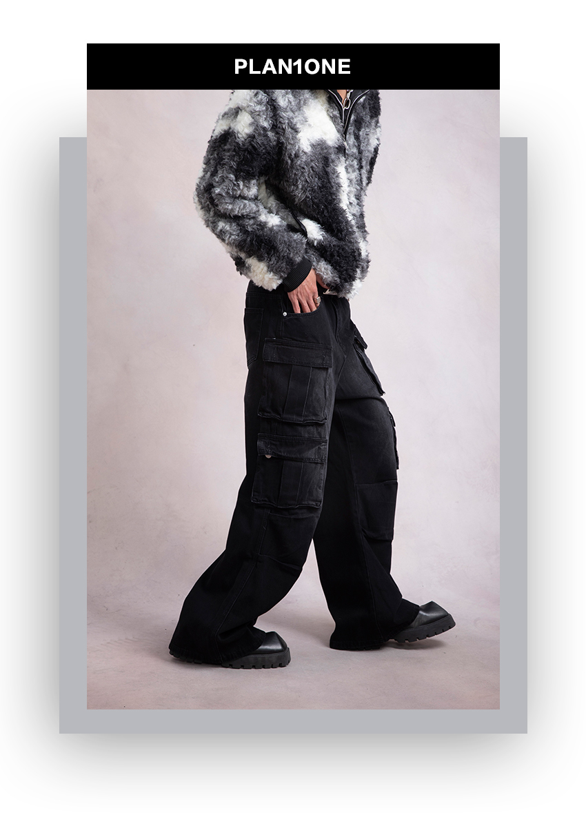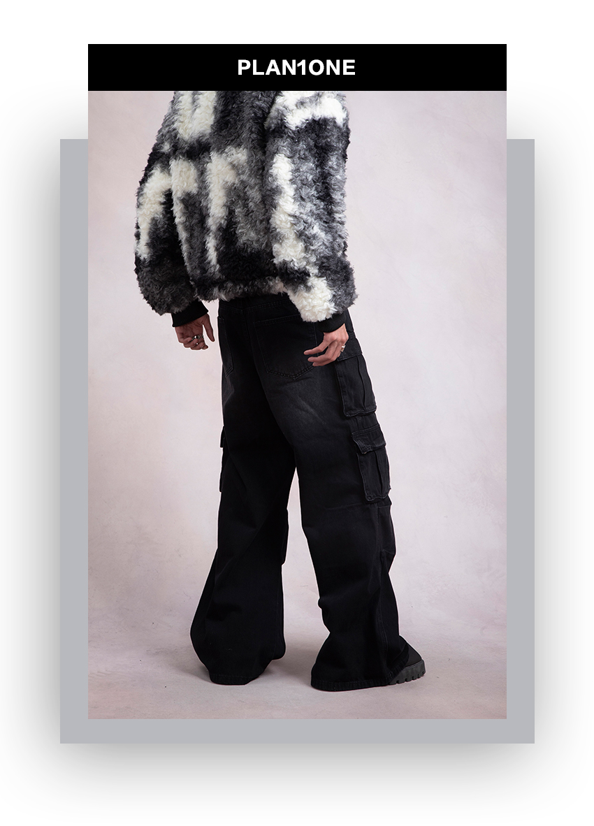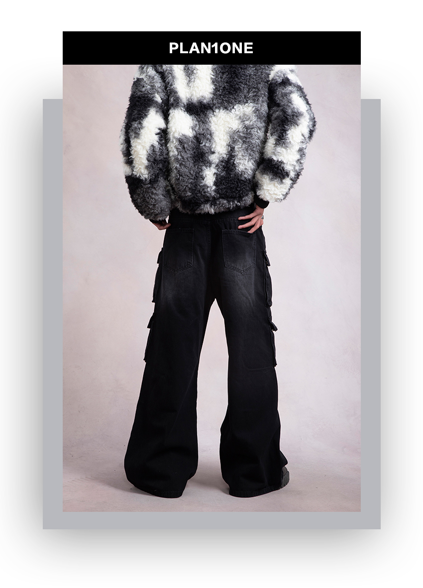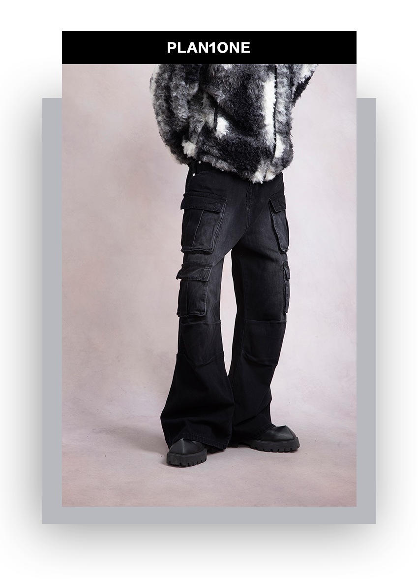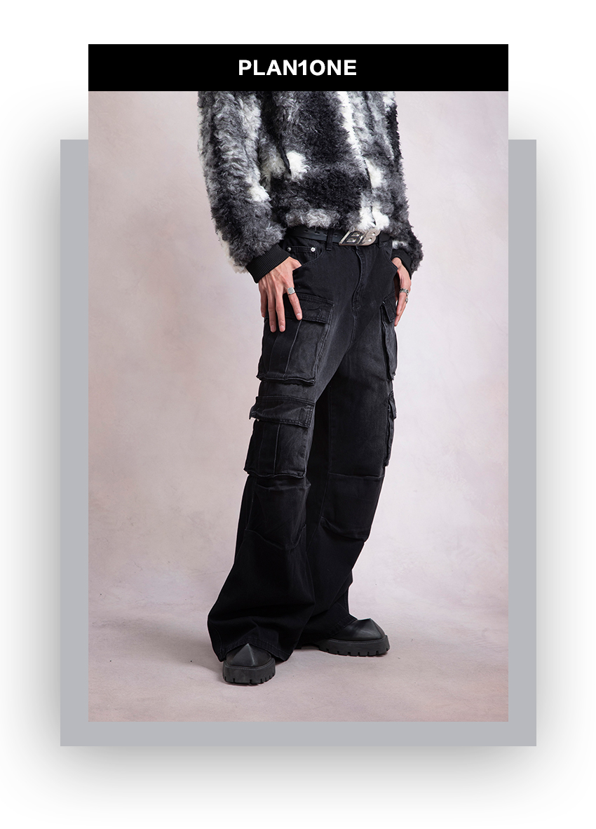 Washed Multi-Pocket Straight Cargo Denim Jeans WN9286
