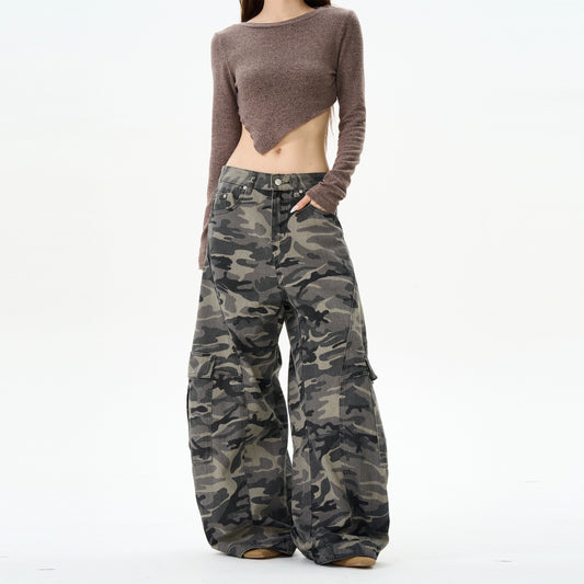 Large Pocket Wash Wide Leg Cargo Pants WN22353