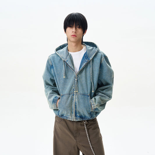 Rhinestone Zipper Damage Short Hoodie WN16382