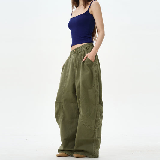 Multi-Pocket Pleats Draped Wide Leg Half Denim Jeans WN16381