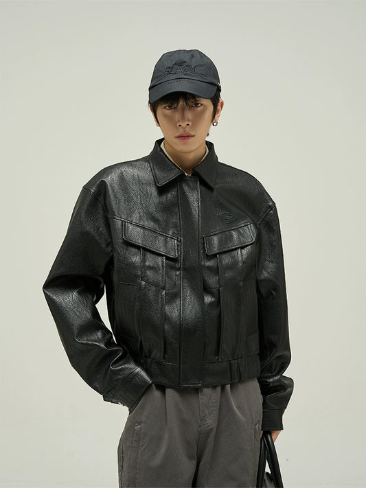 Standing-Collar PU Leather Puffer Jacket WN16380