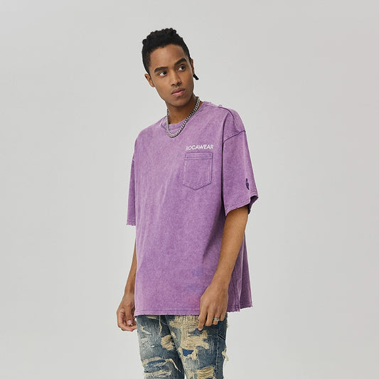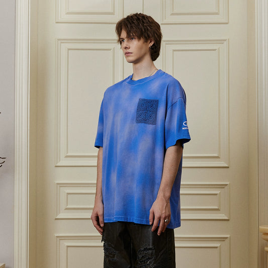Dirty Wash Hole Patch Embroidery Oversize Short Sleeve T-Shirt WN17964