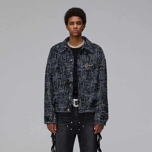 Double Layered Patchwork Mesh Turn-Down Collar Jacket WN17844