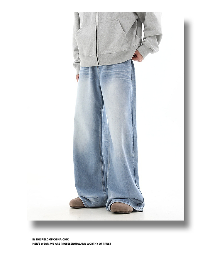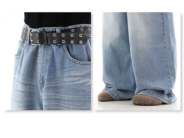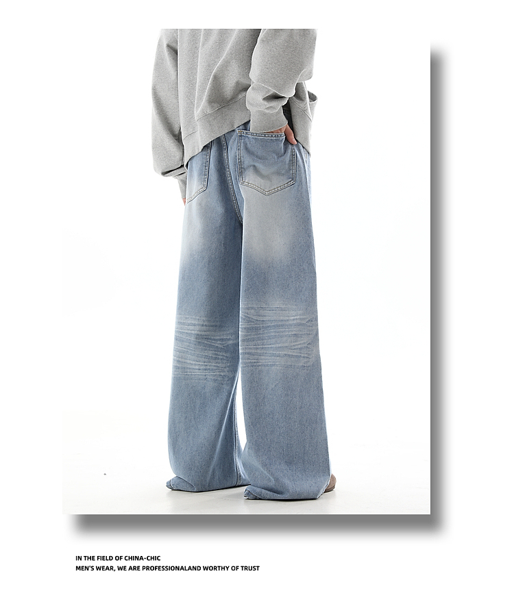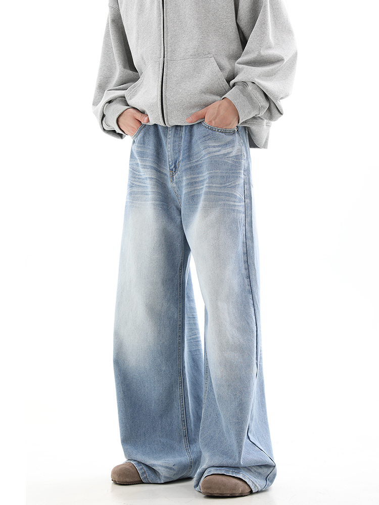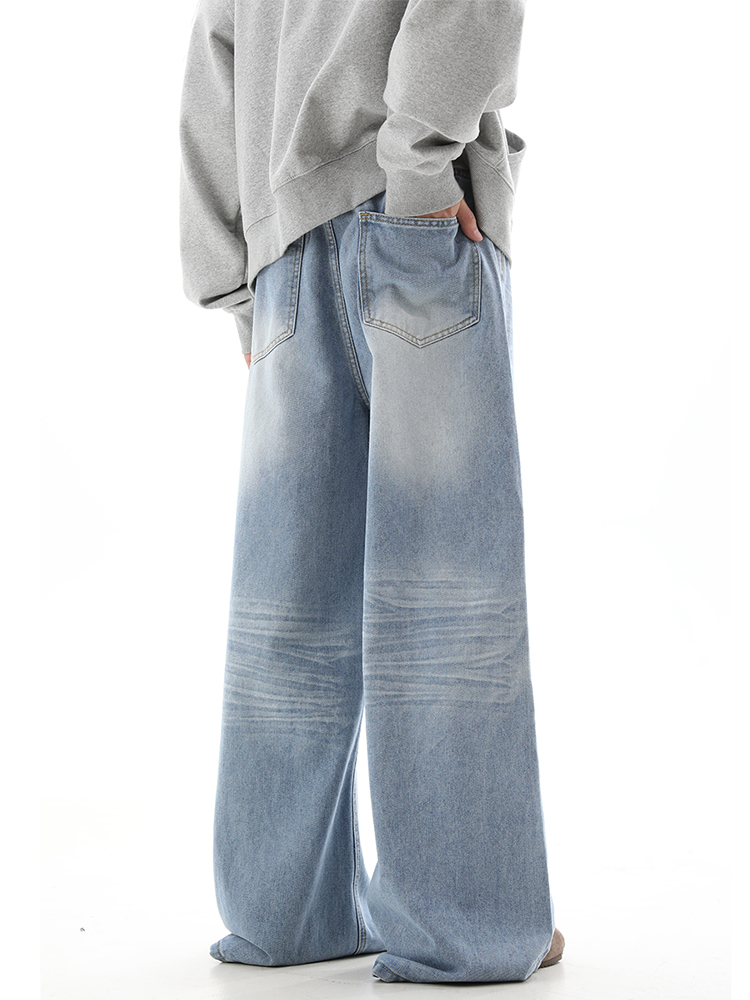 Washed Wide-Leg Straight Denim Jeans WN10333