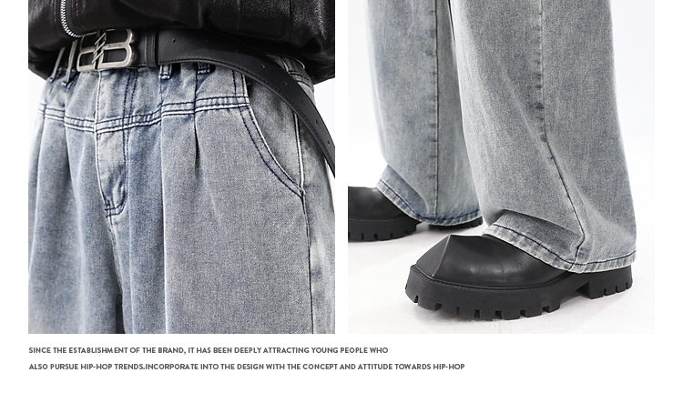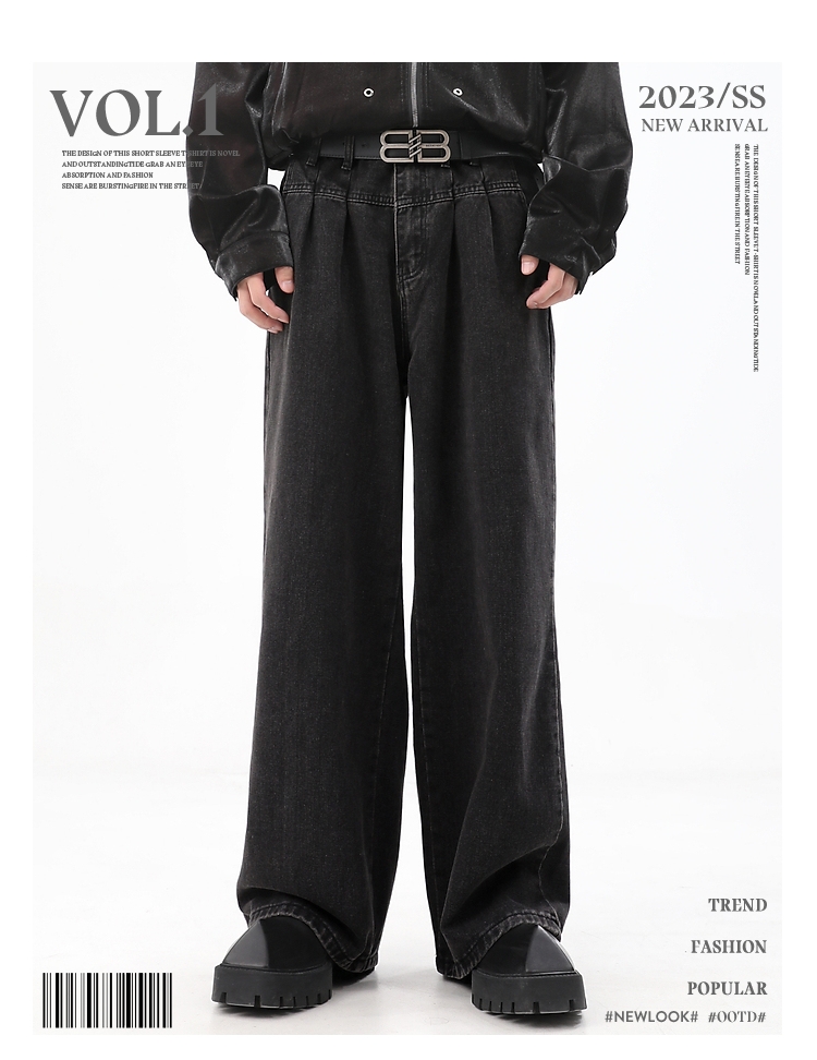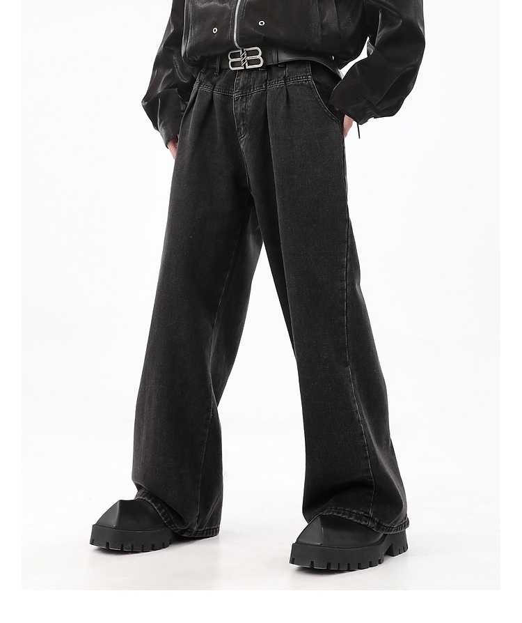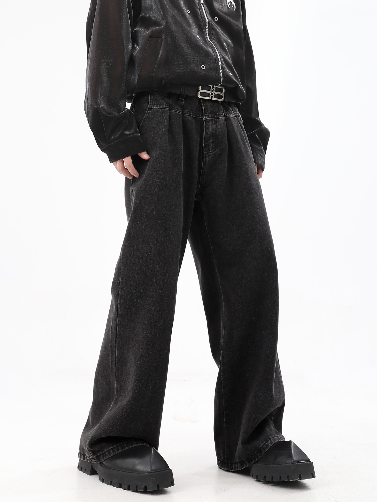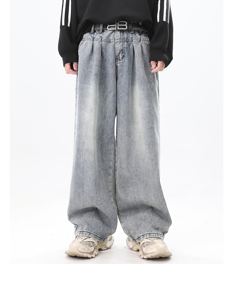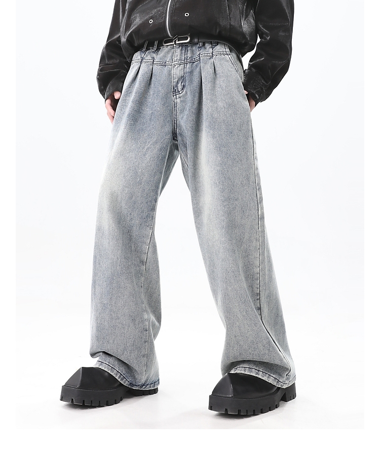 Washed Wide-Leg Straight Denim Jeans WN10429