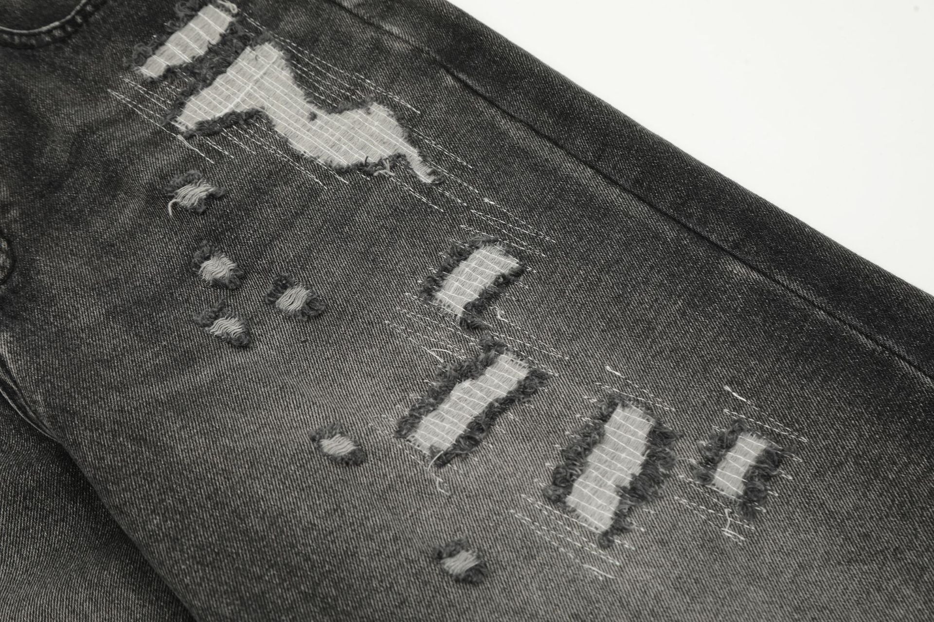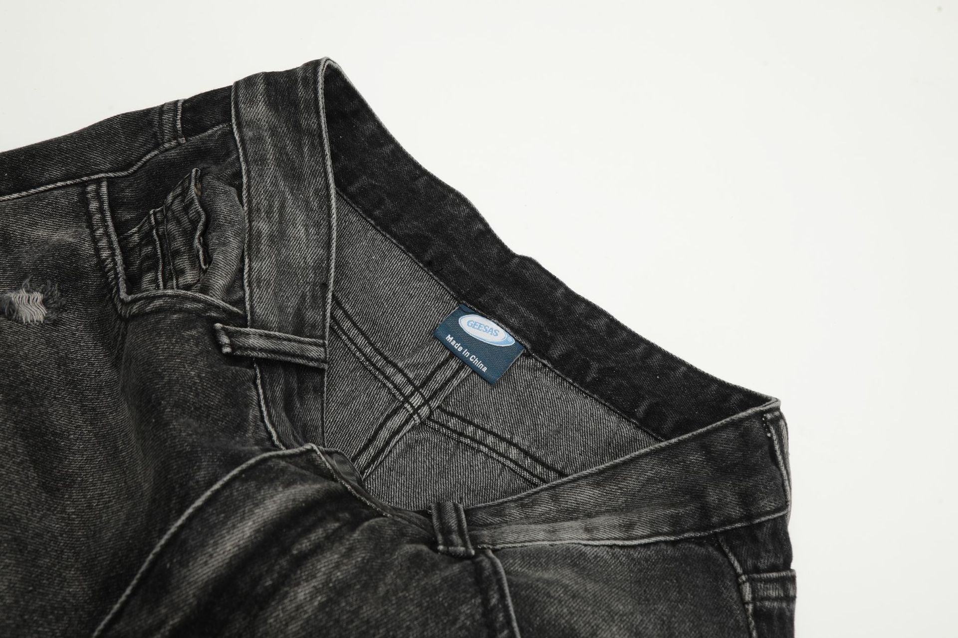 Washed Damage Straight-Leg Denim Jeans WN11395
