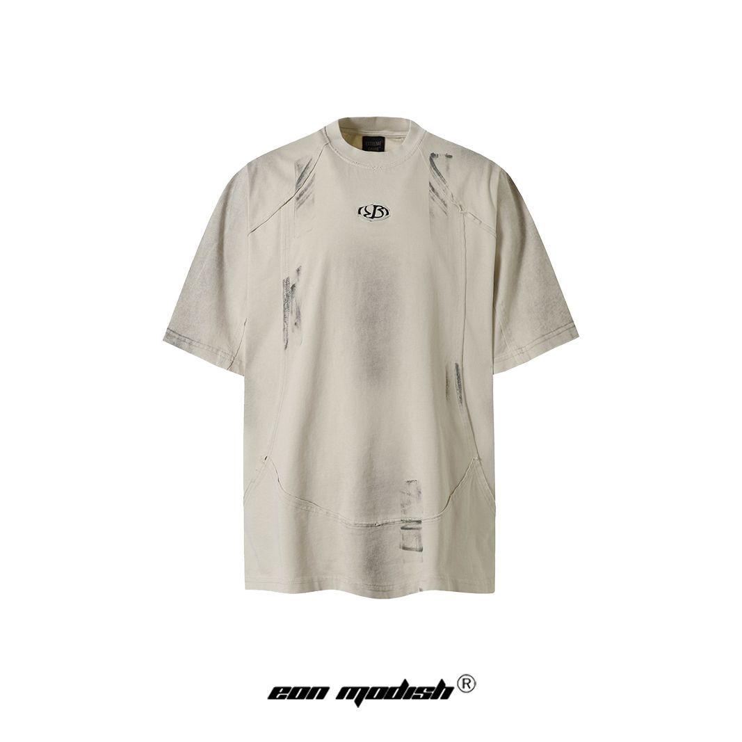 Washed Heavyweight Embroidery Oversize Short Sleeve T-Shirt WN14019