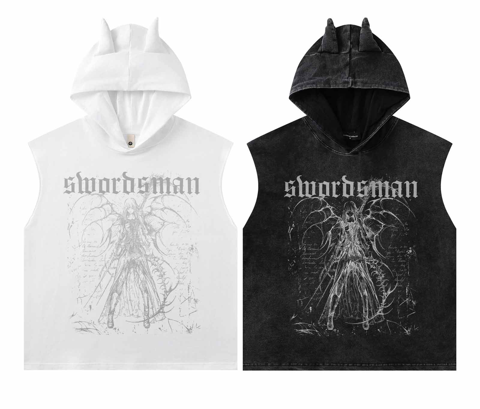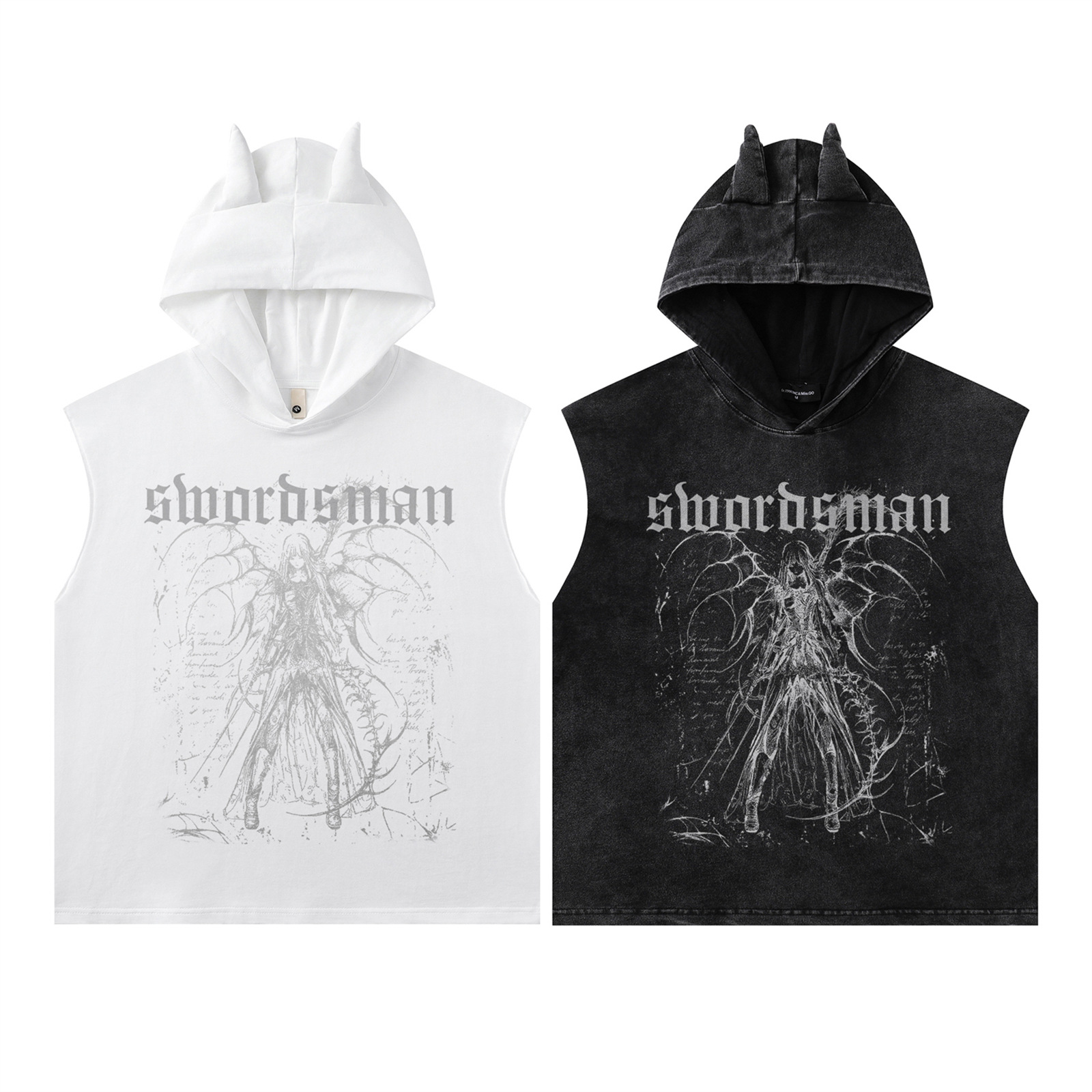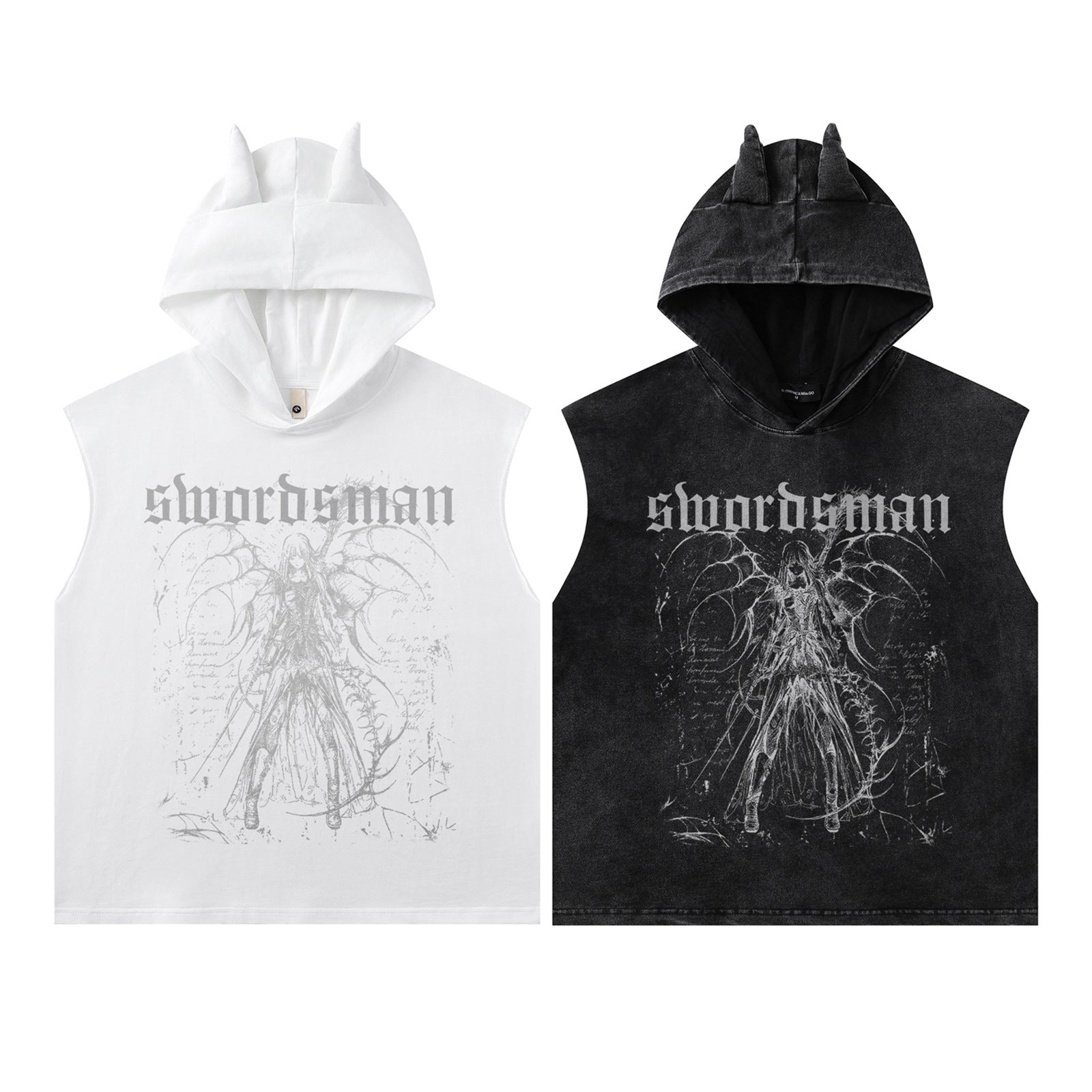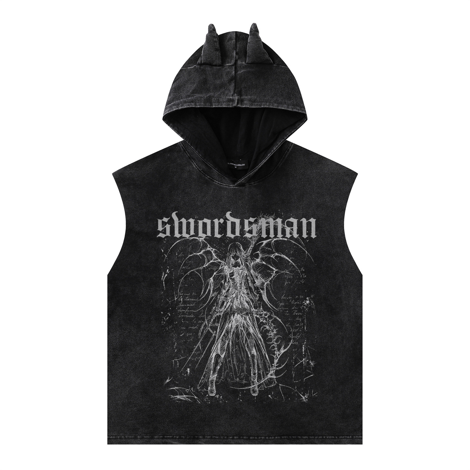Washed Graffiti Print Sleeveless Hooded Tank Top WN15054