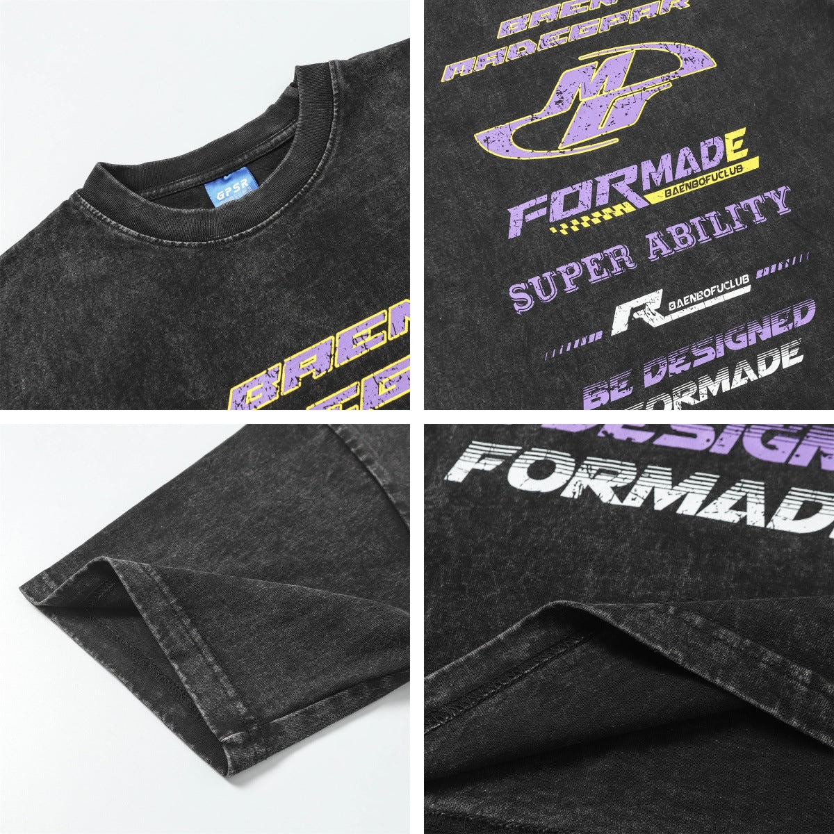 Washed Letter Print Oversize Short Sleeve T-Shirt WN15064