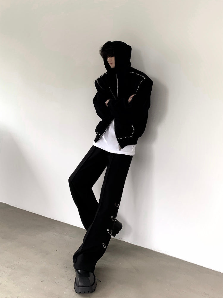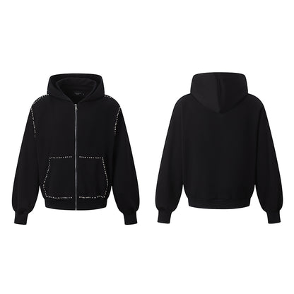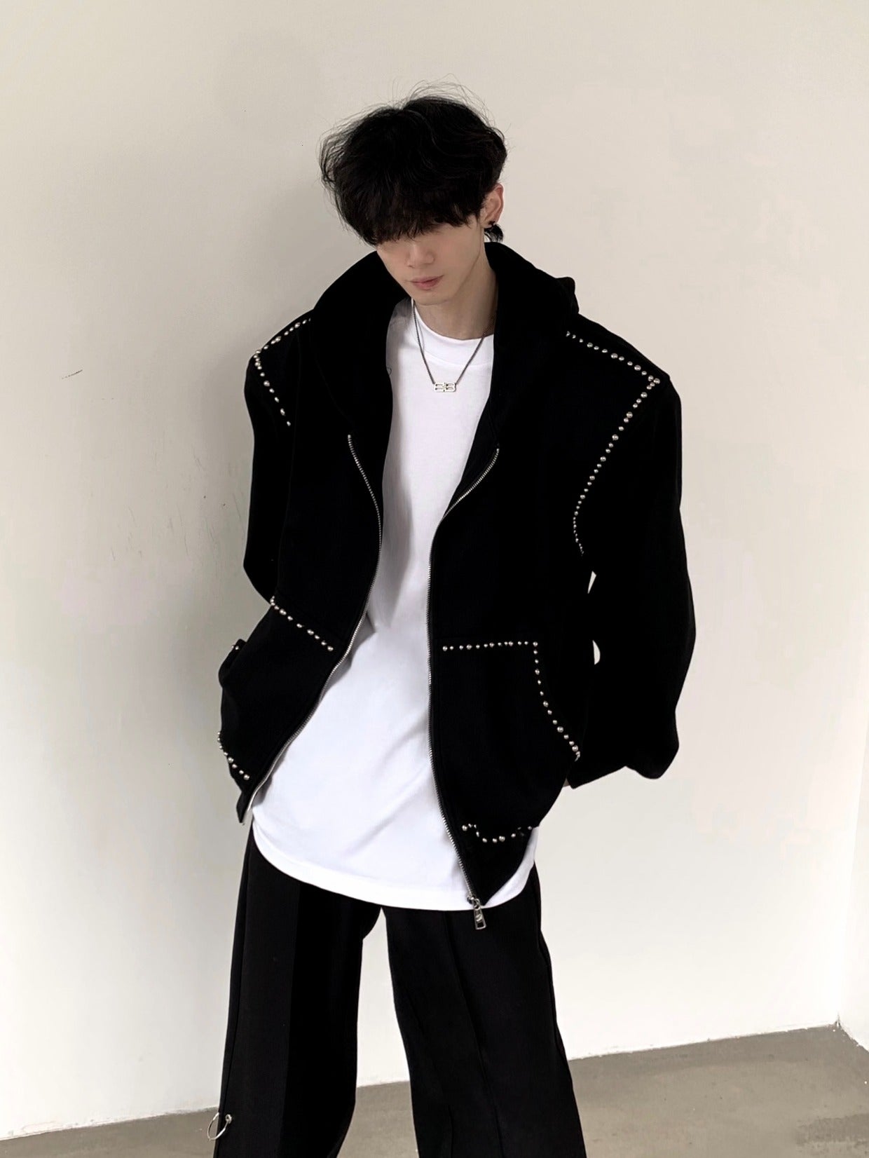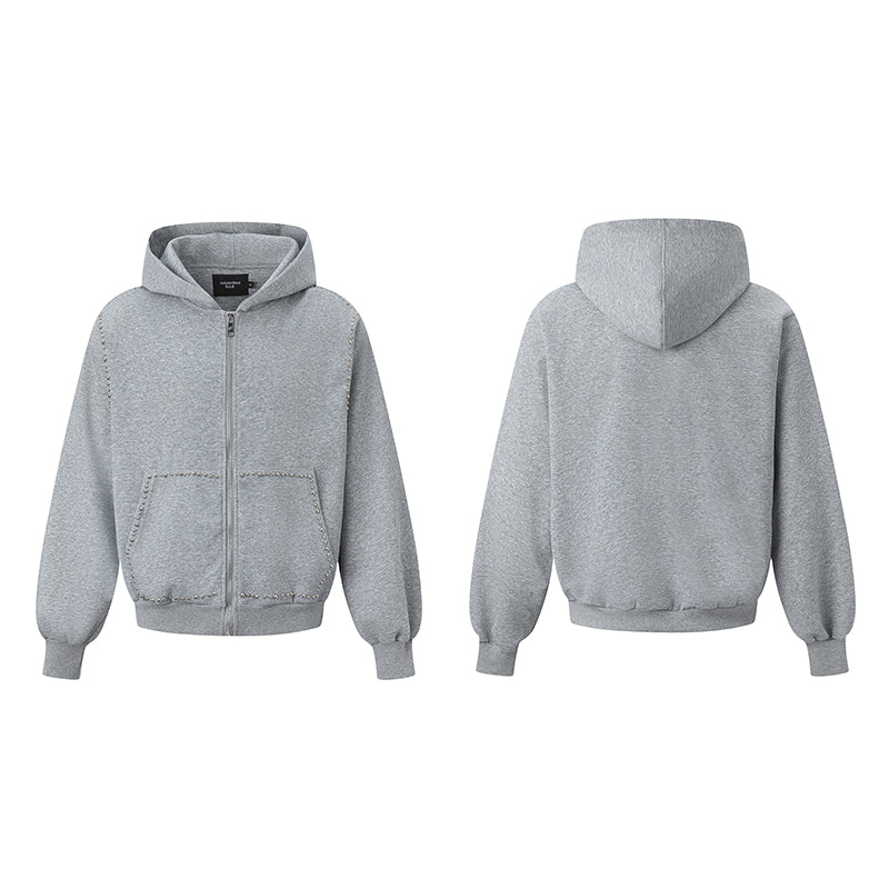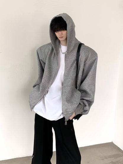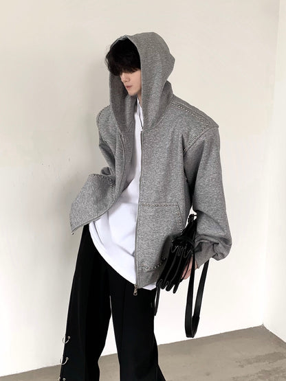 Studs Metal Detail Zipper Hooded Jacket WN15426