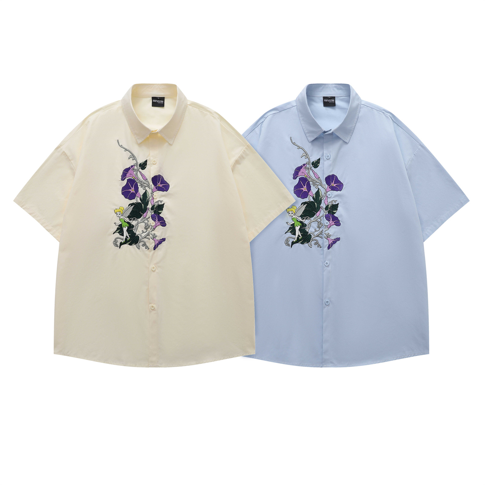 Floral Embroidery Oversize Short Sleeve Shirt WN18543