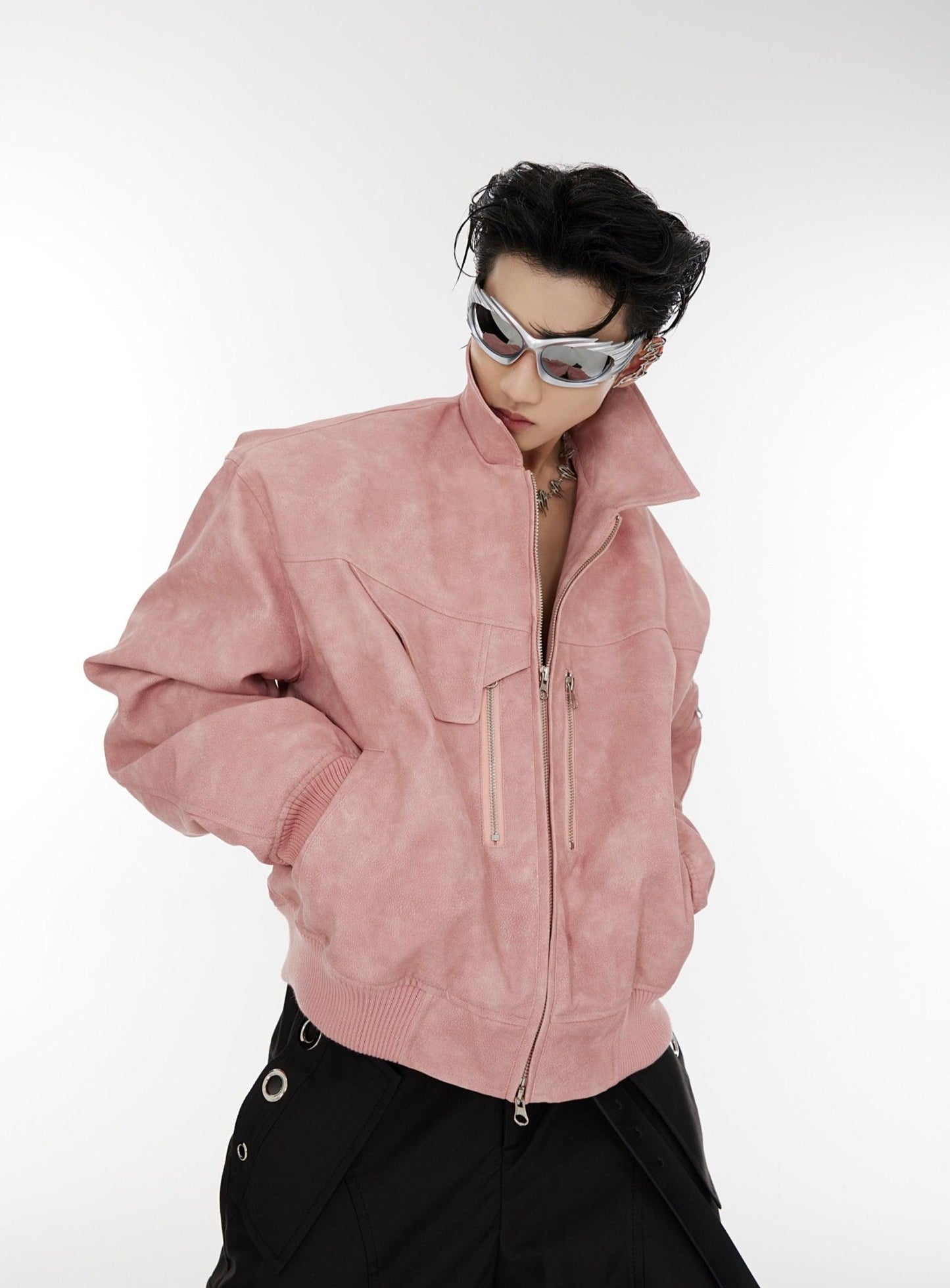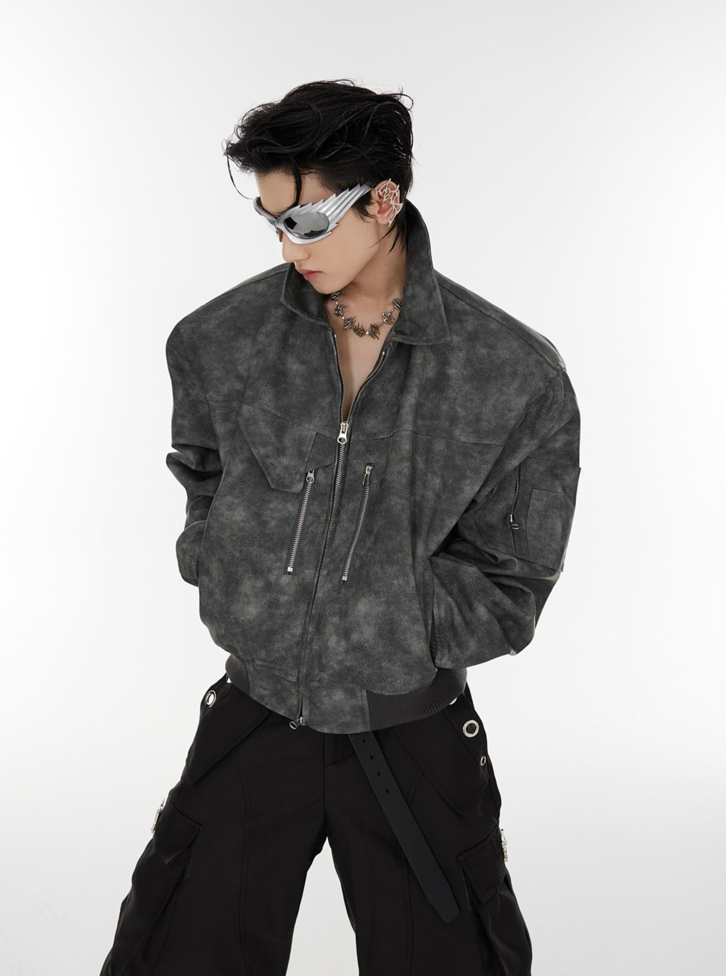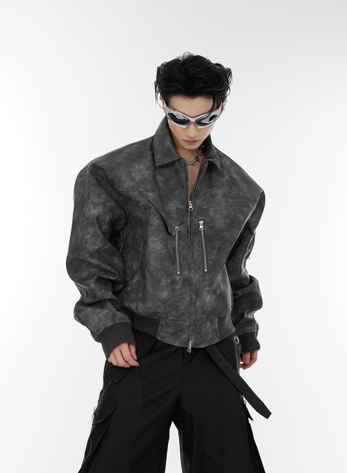 Oversize Shoulder-pad PU Leather Jacket WN2005