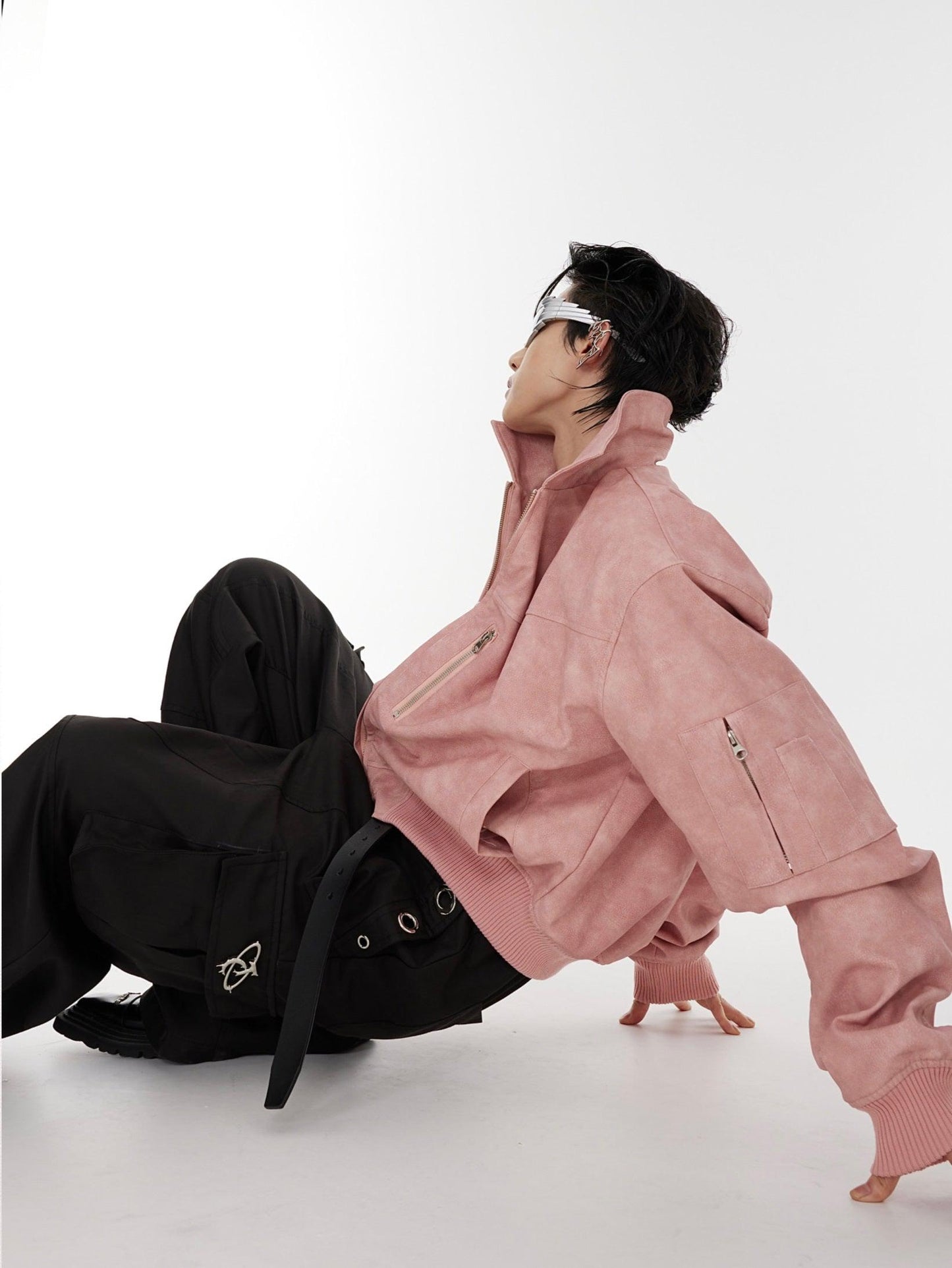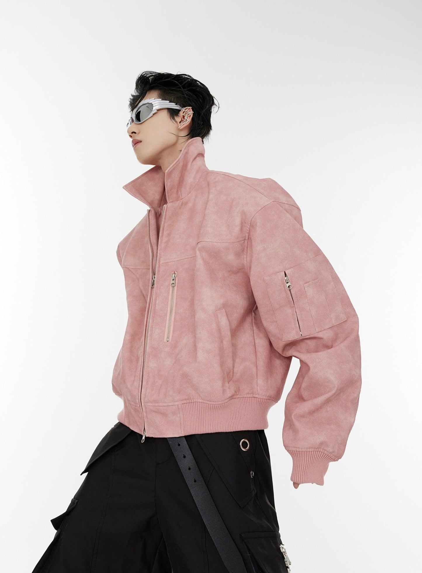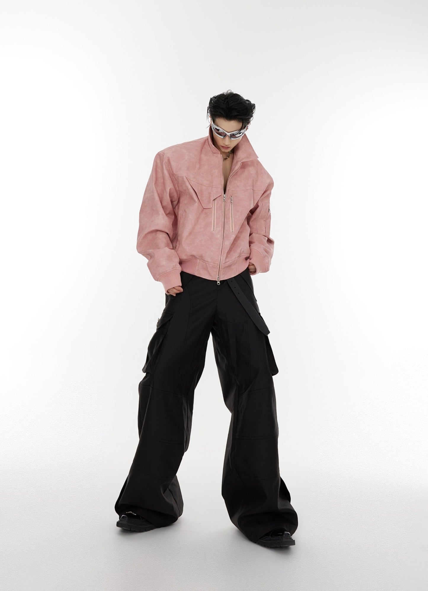Oversize Shoulder-pad PU Leather Jacket WN2005