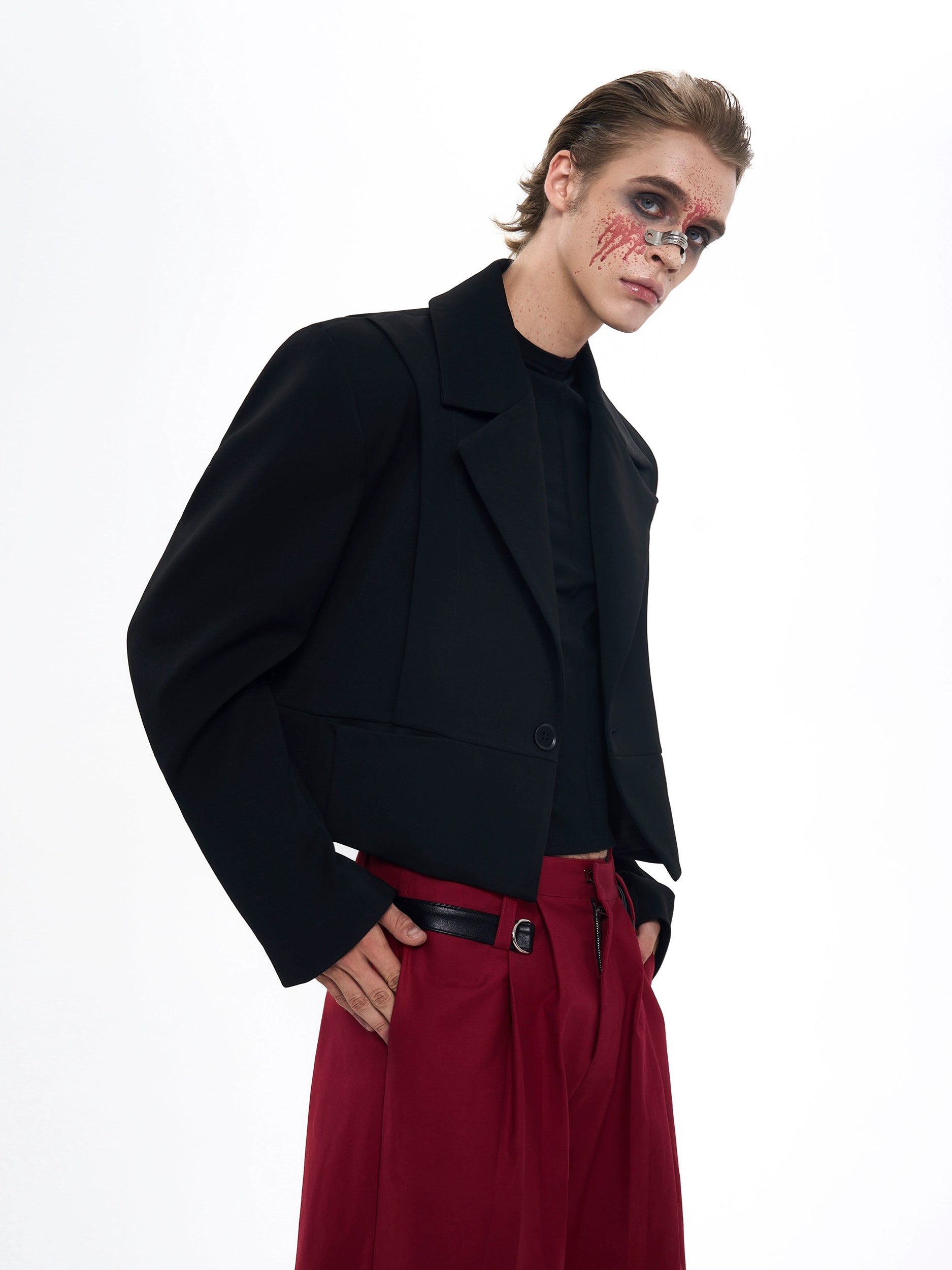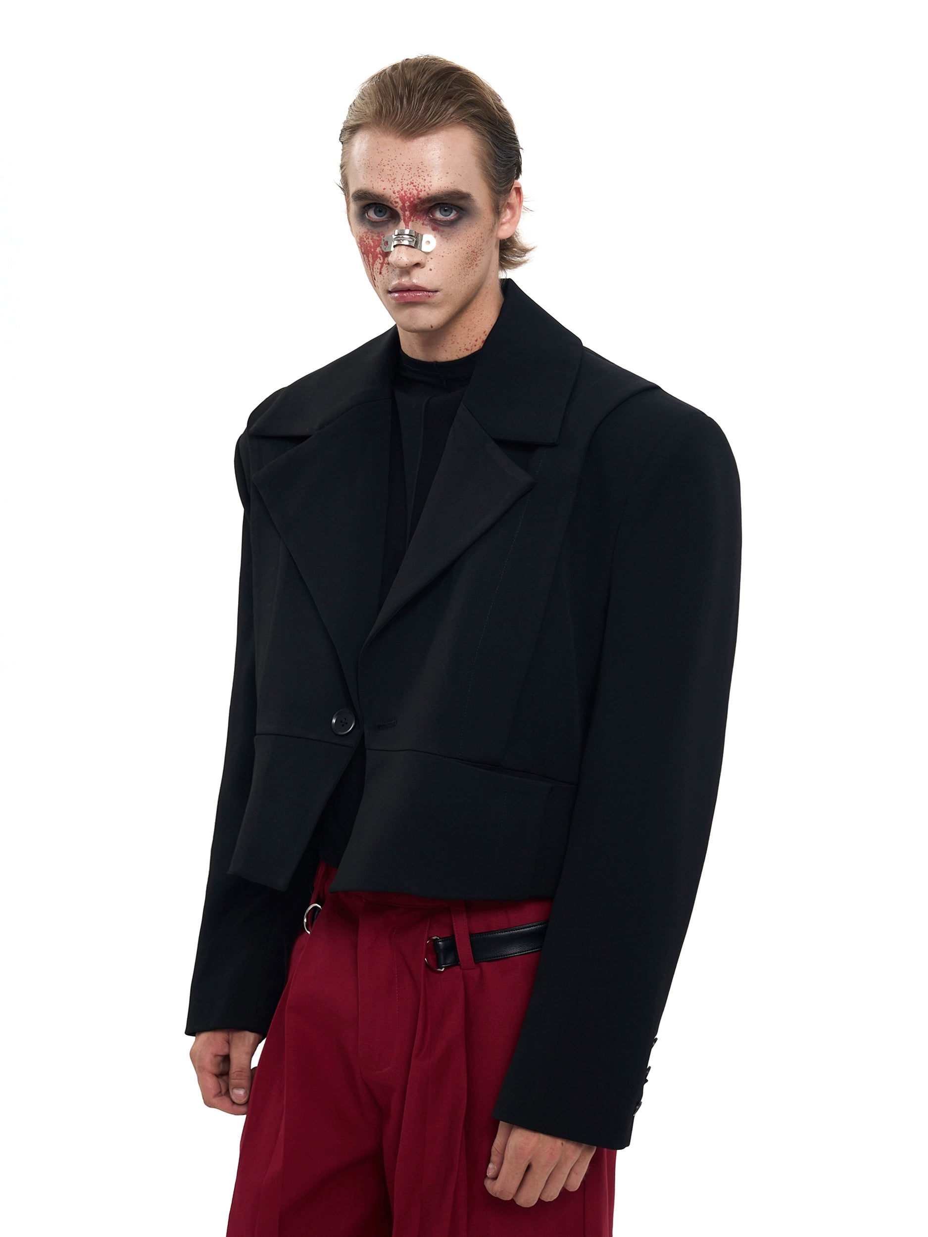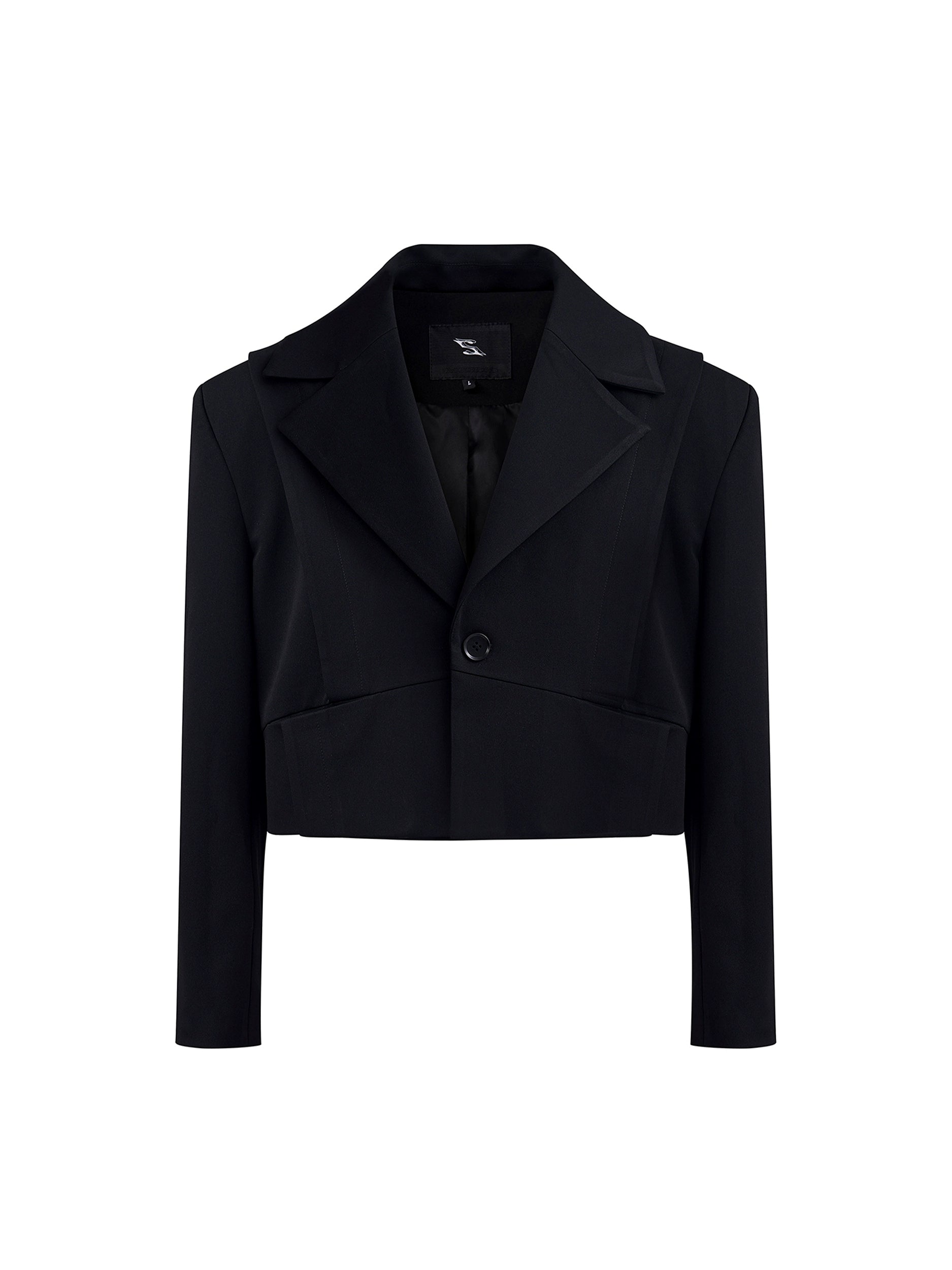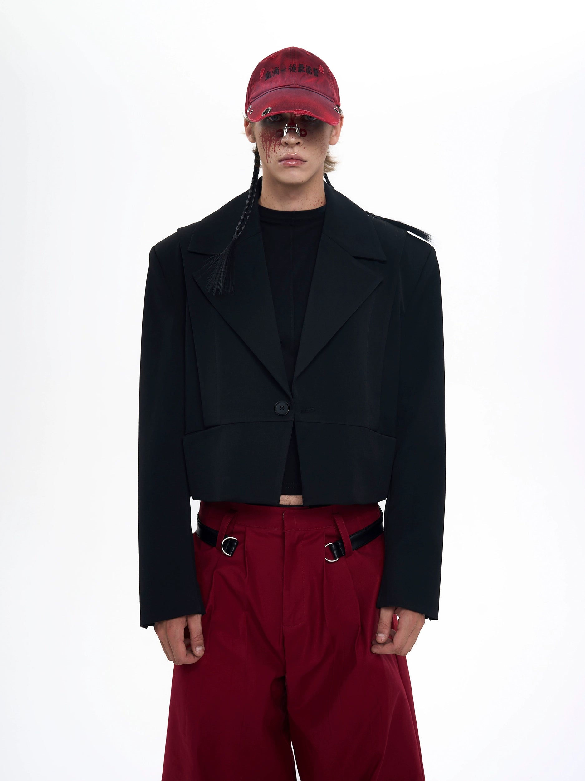 Mix PU Leather Embroidery Shoulder-Pad Tailored Jacket WN20384