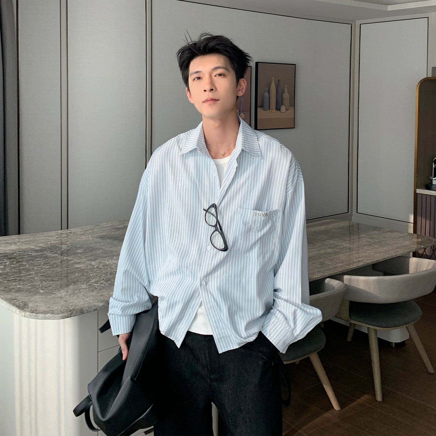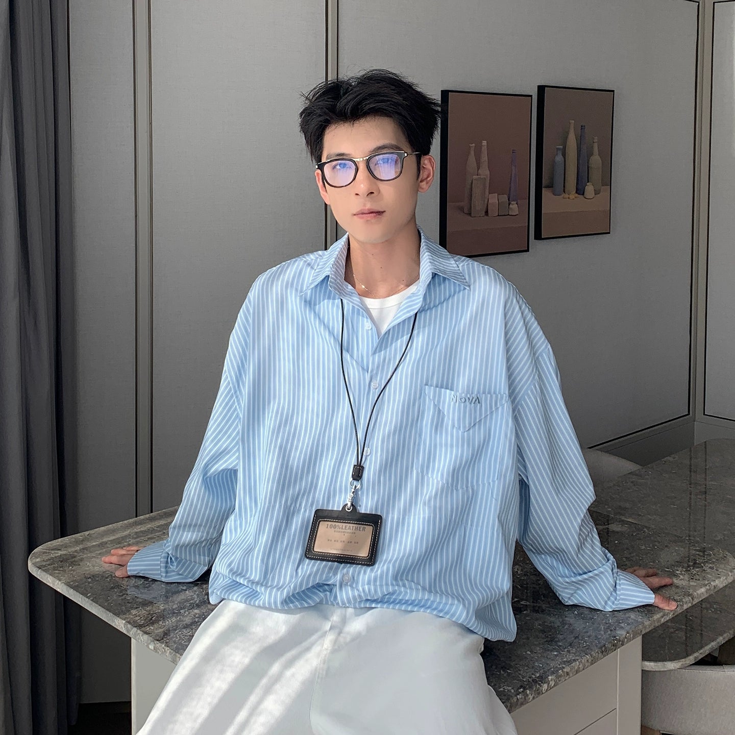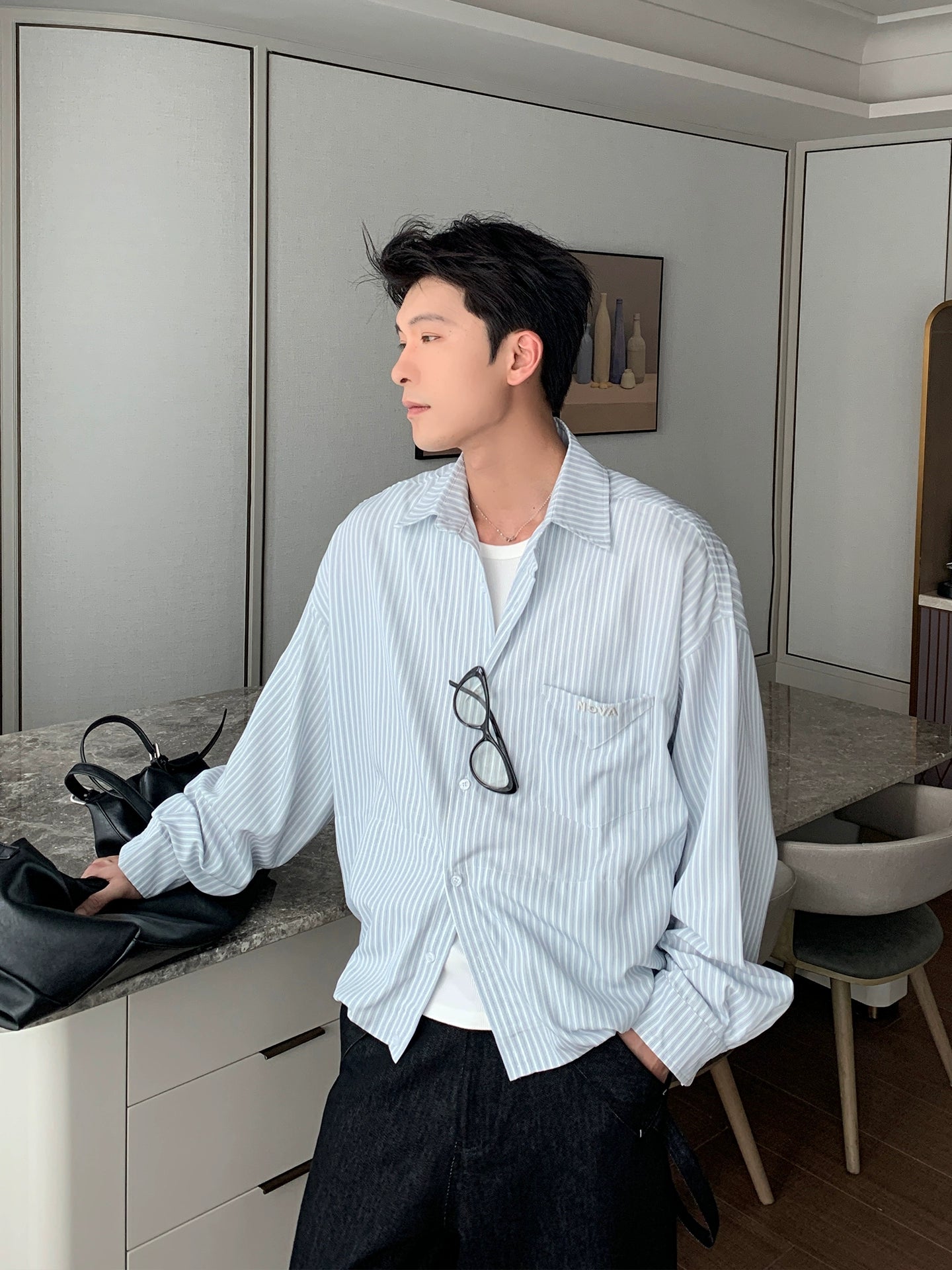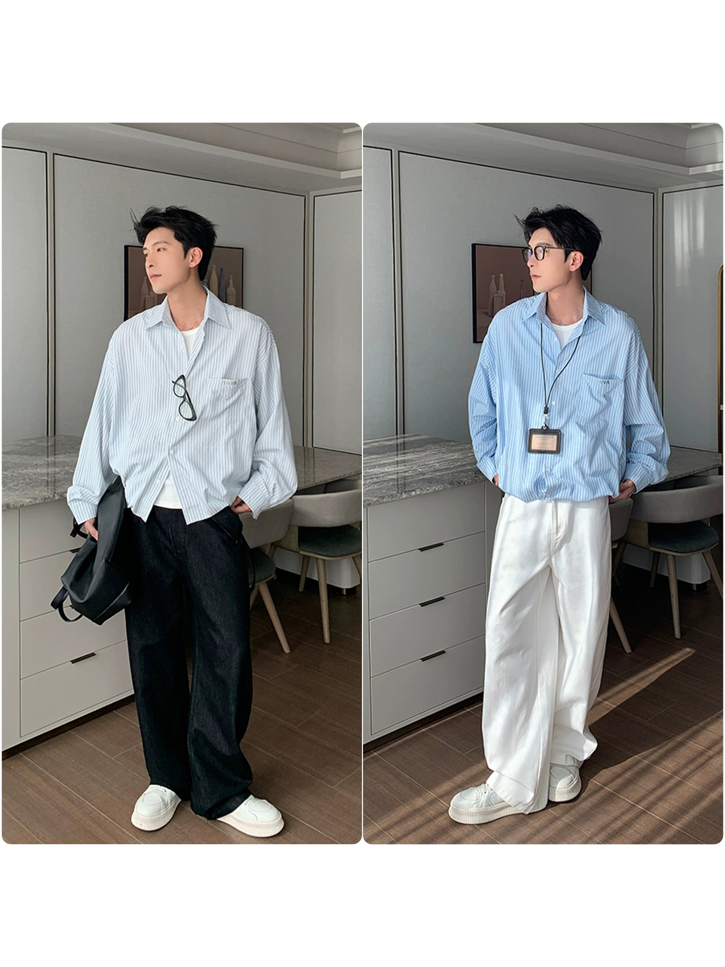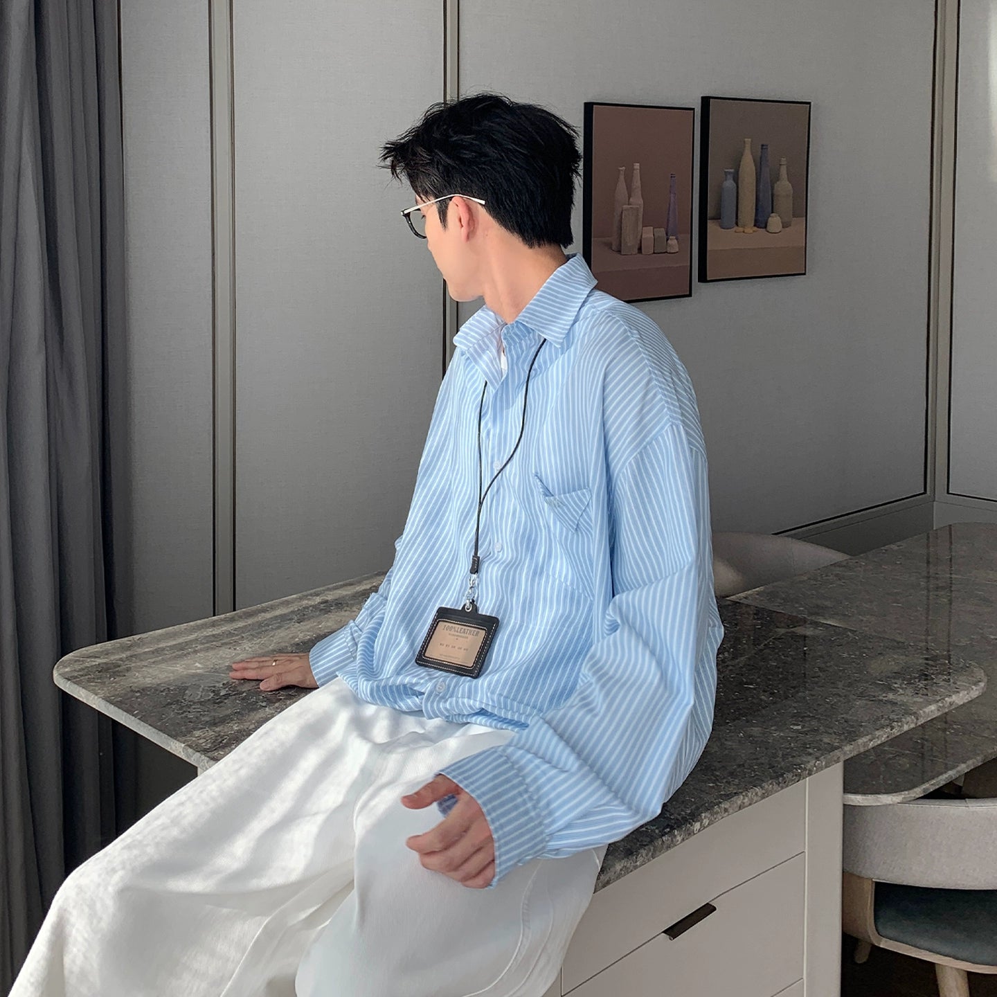 Vertical Stripe Waist-Fit Cotton Long Sleeve Shirt WN20474