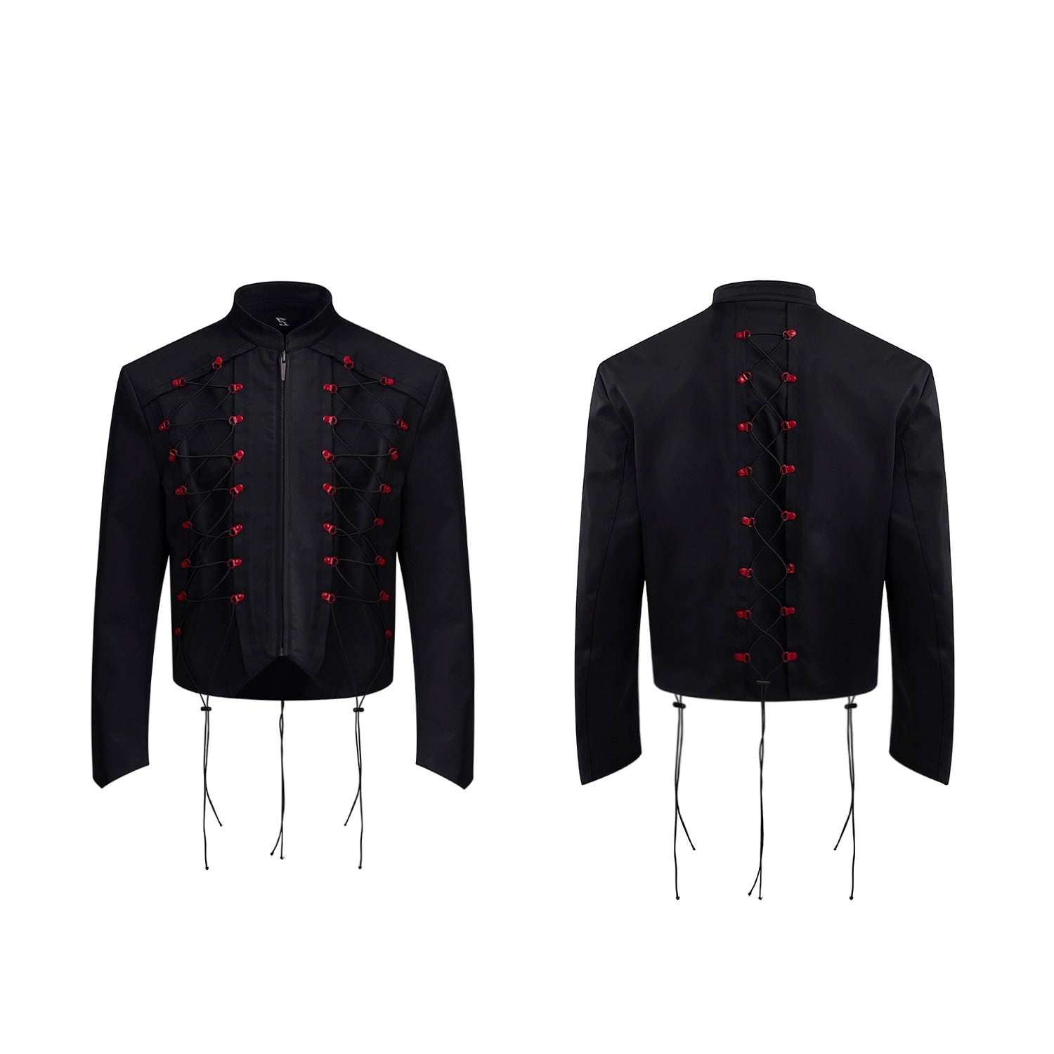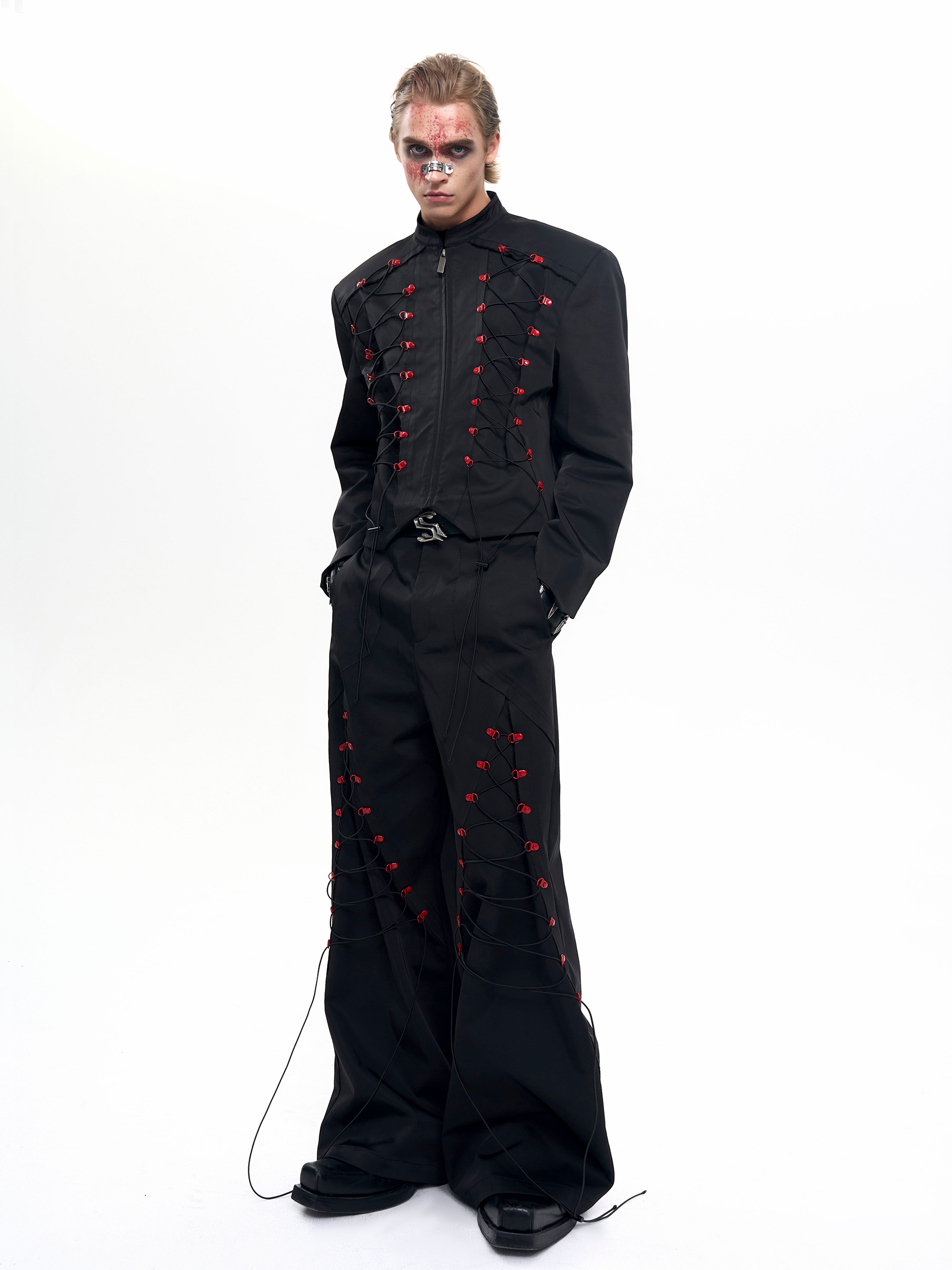 Drawstring Design Stand Neck Short Jacket & Wide Leg Trousers Setup WN20508