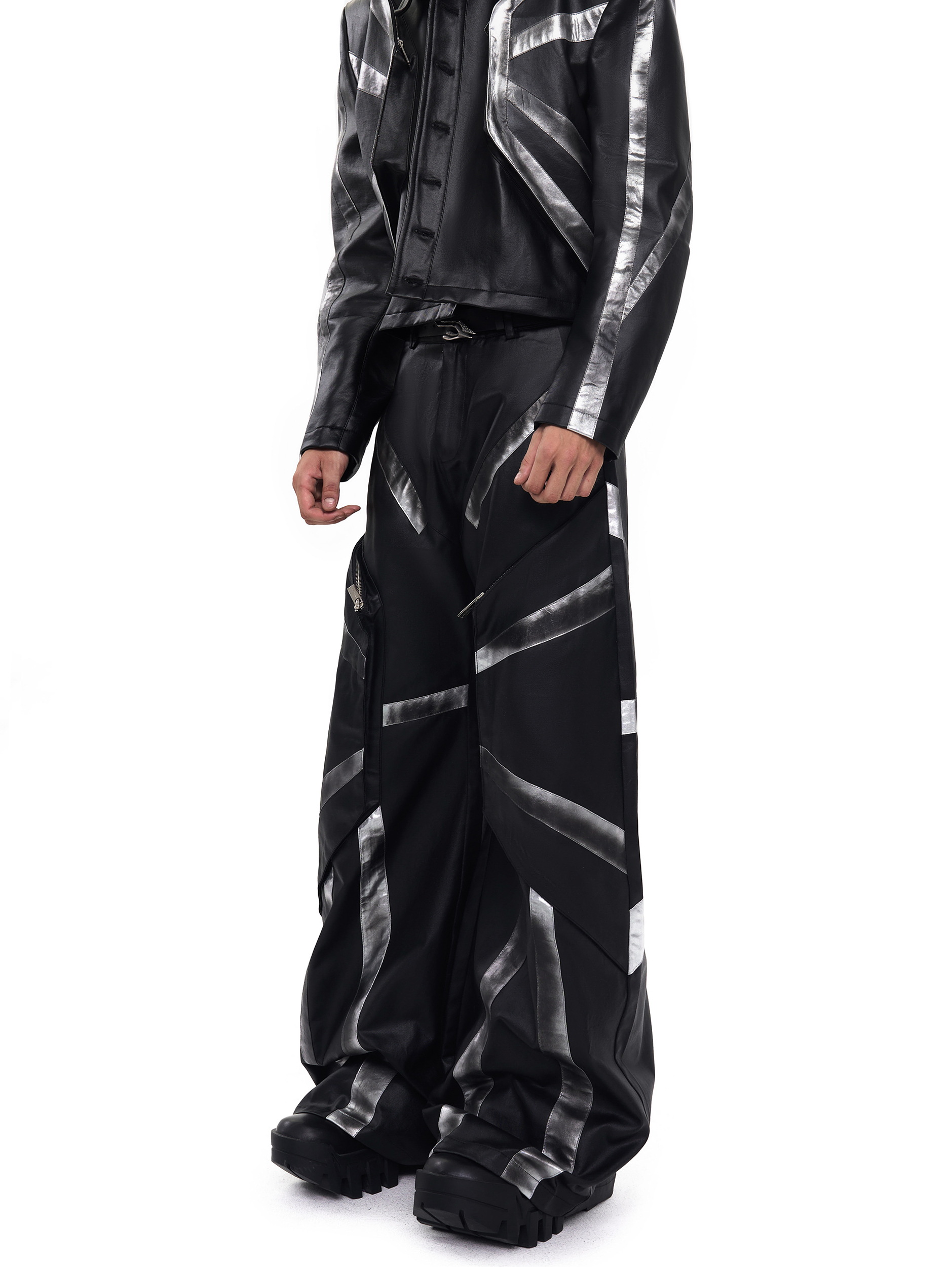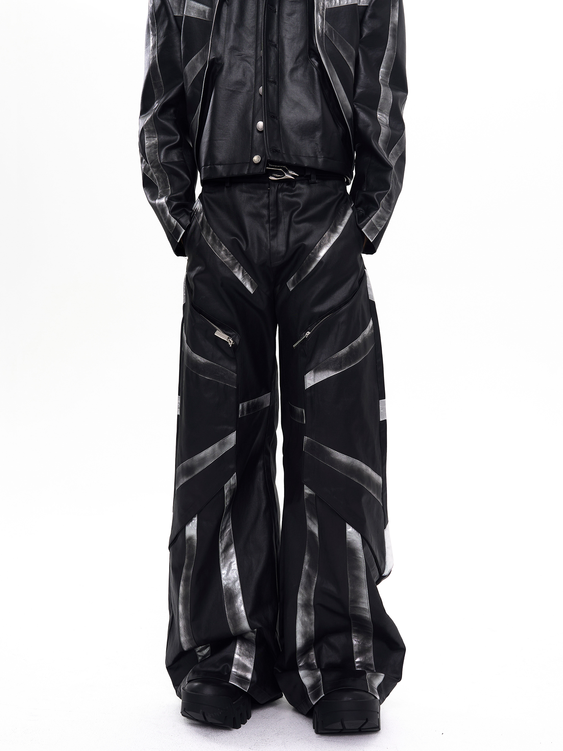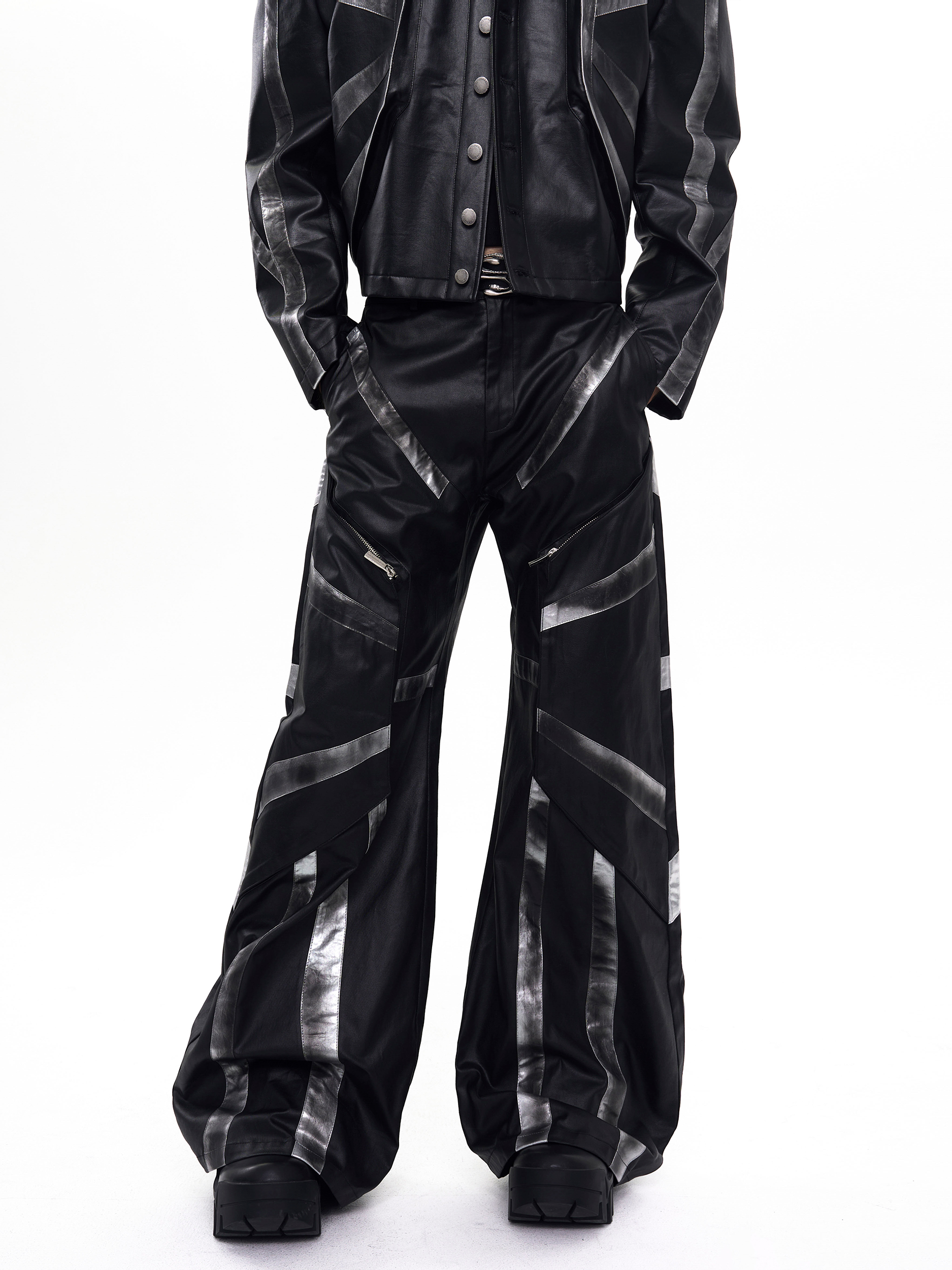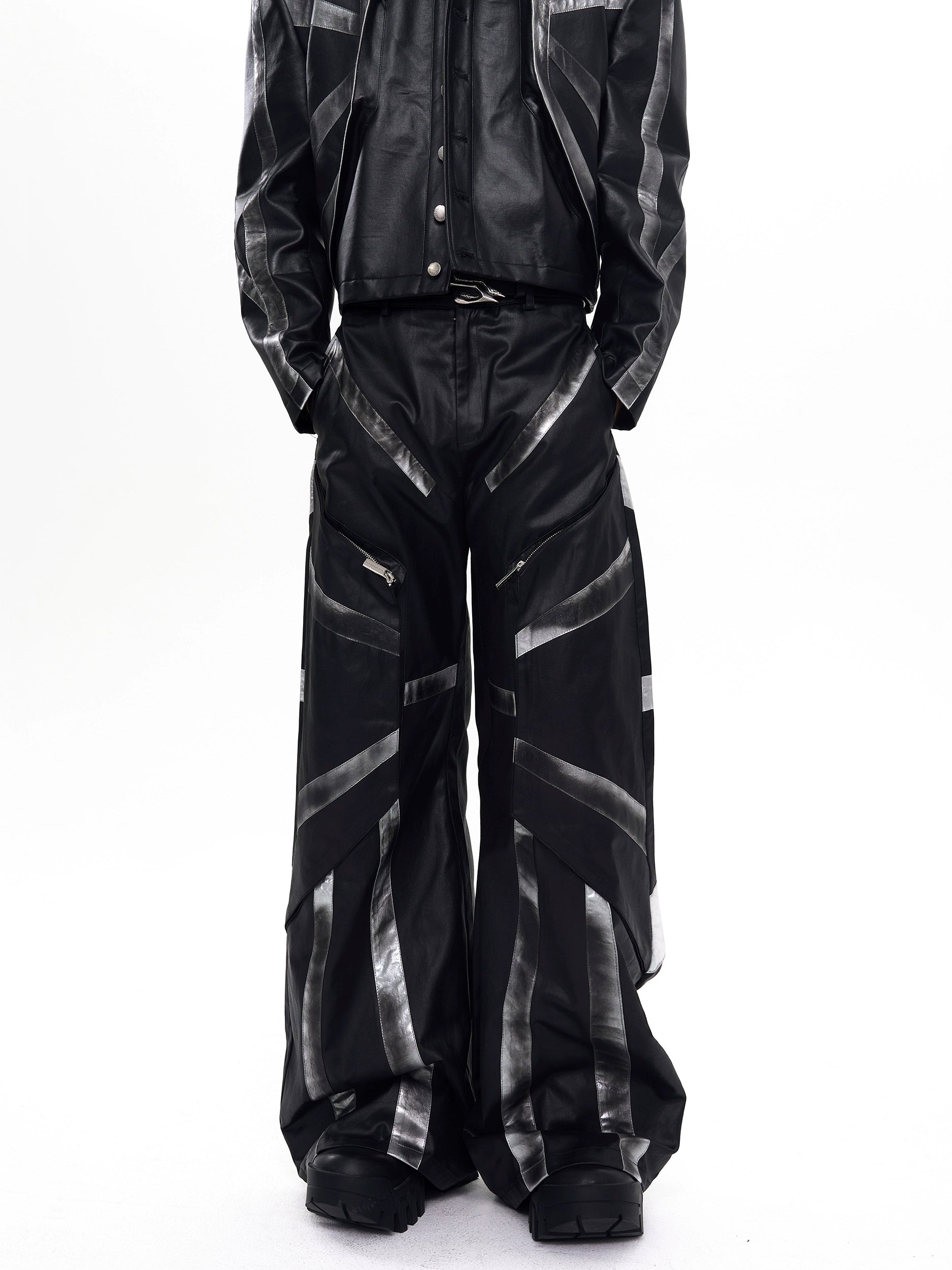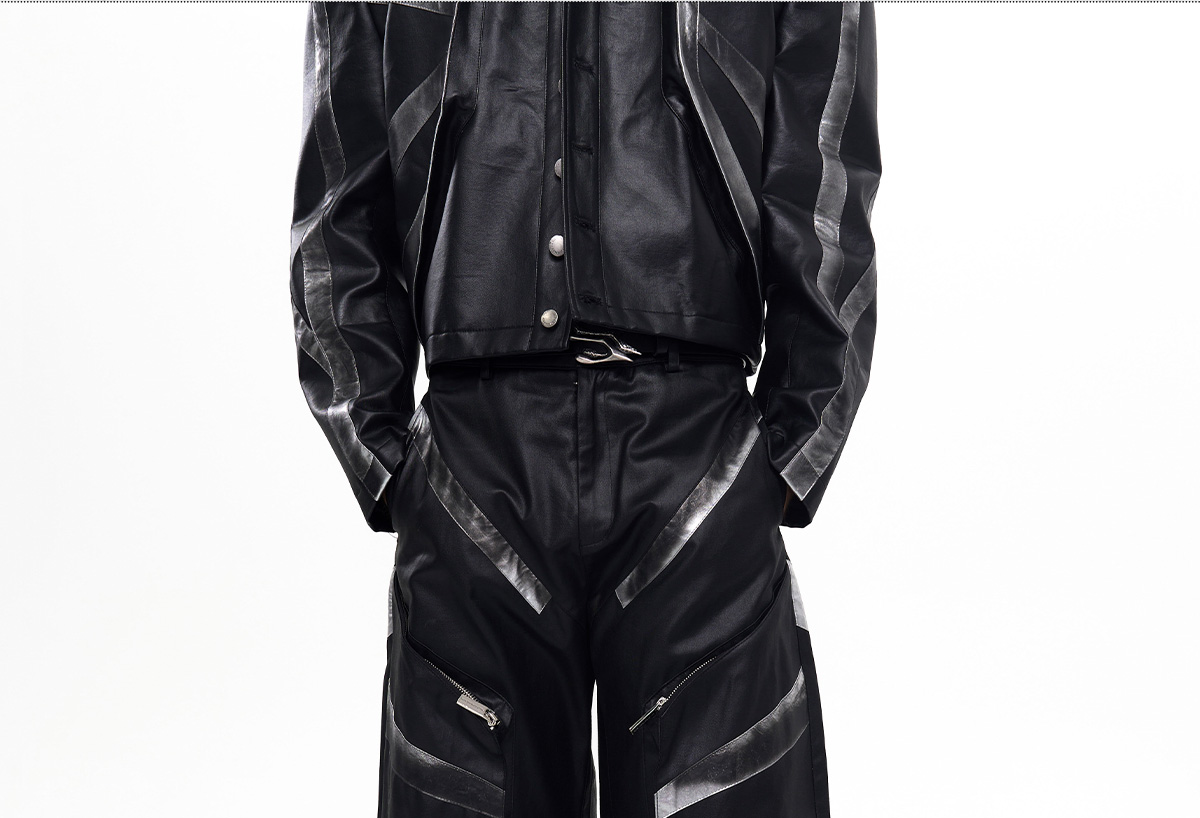 Patchwork Oversize PU Leather Jacket & PU Leather Pants Setup WN20510