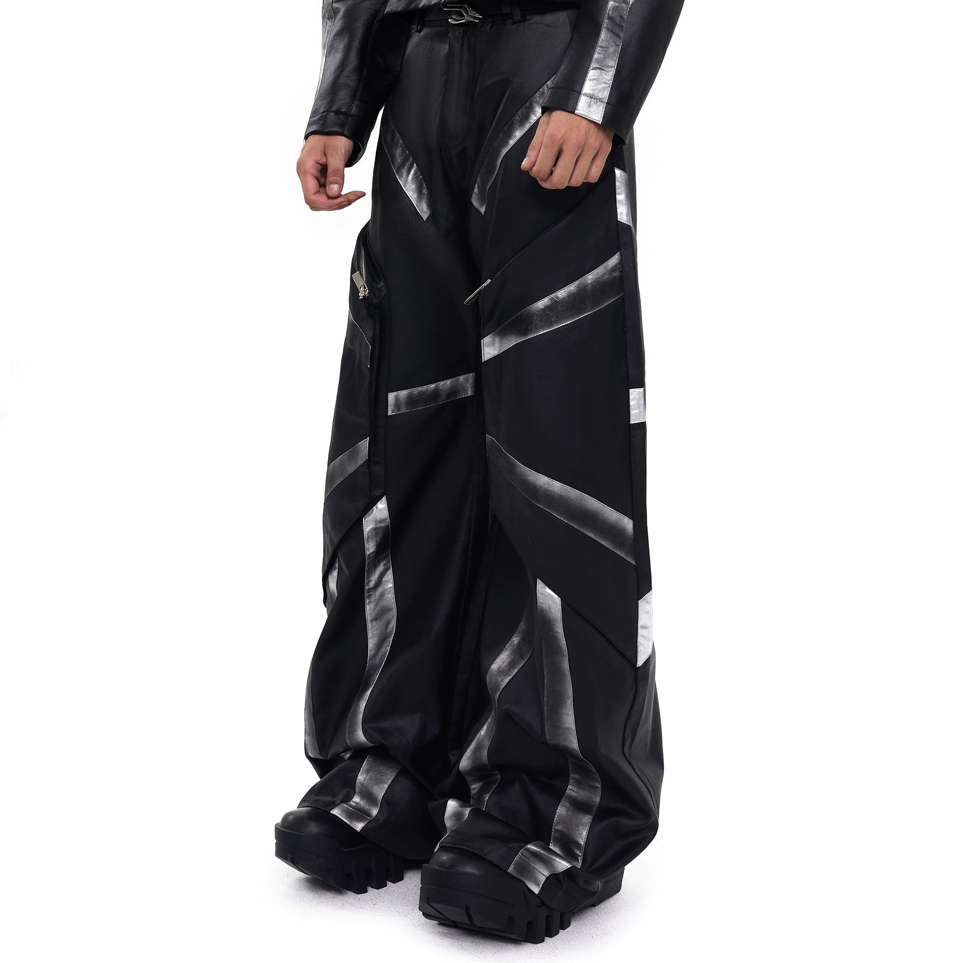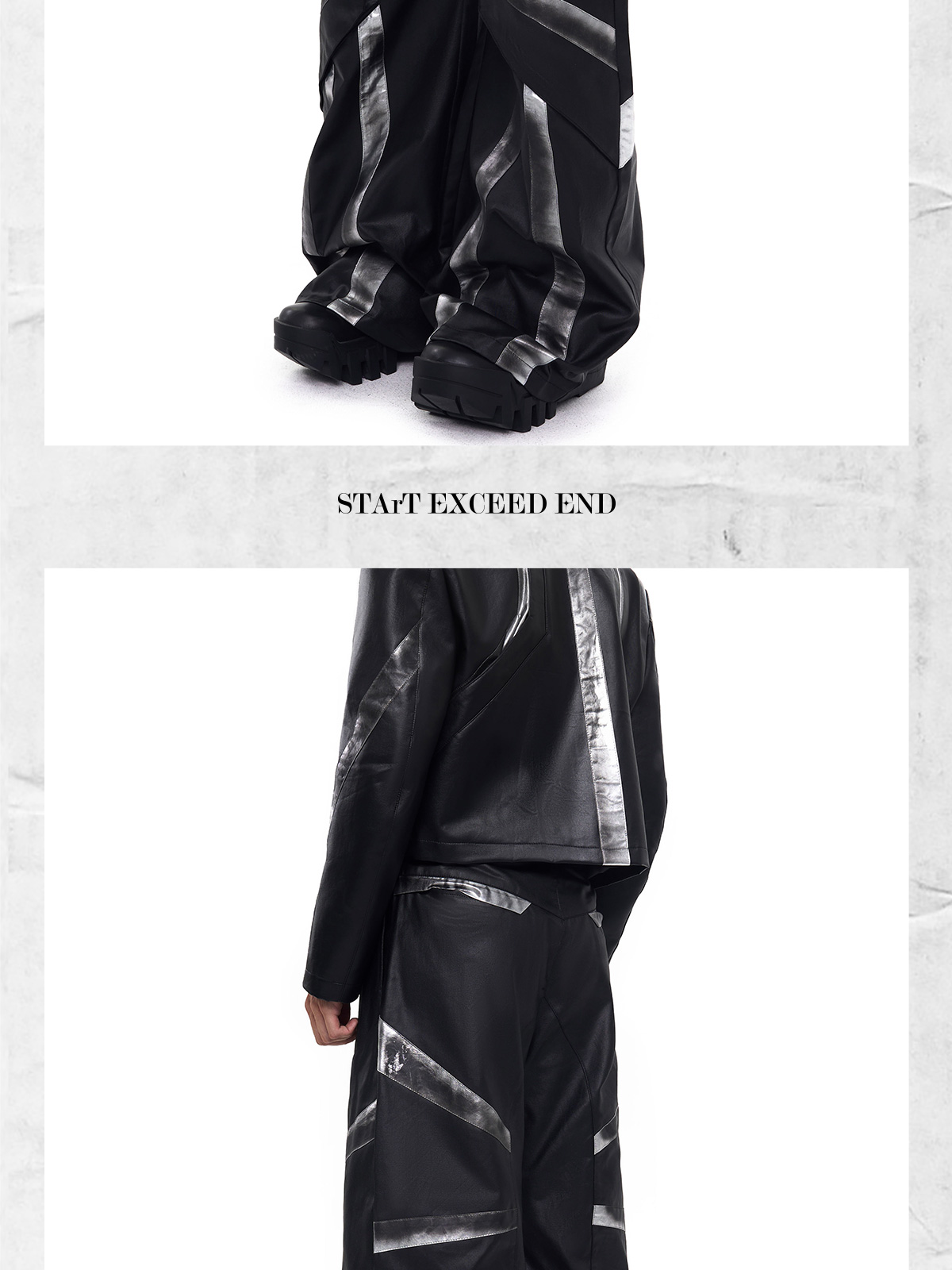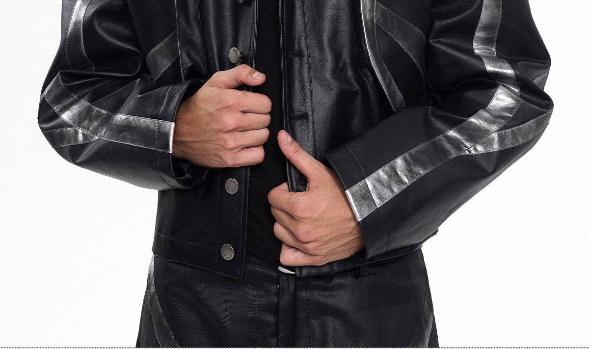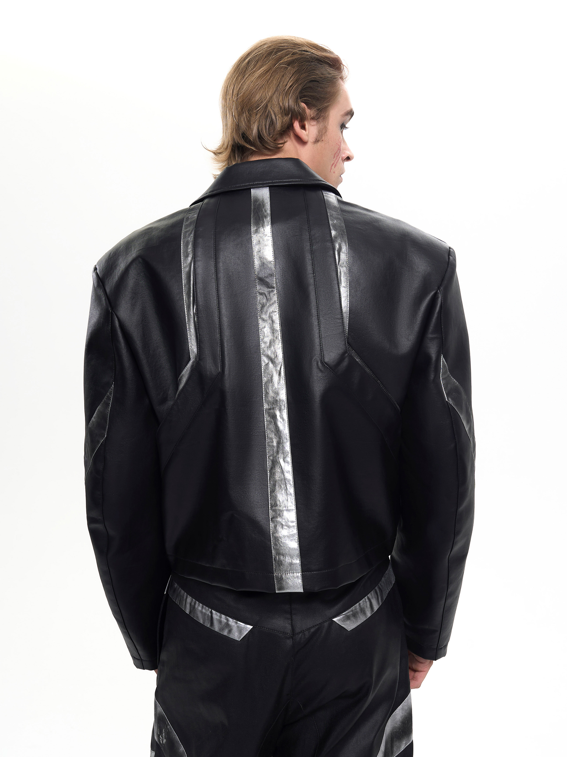 Patchwork Oversize PU Leather Jacket & PU Leather Pants Setup WN20510