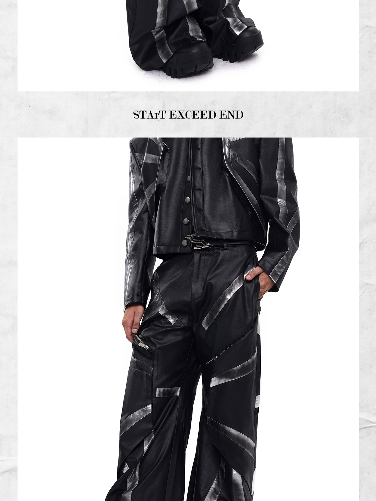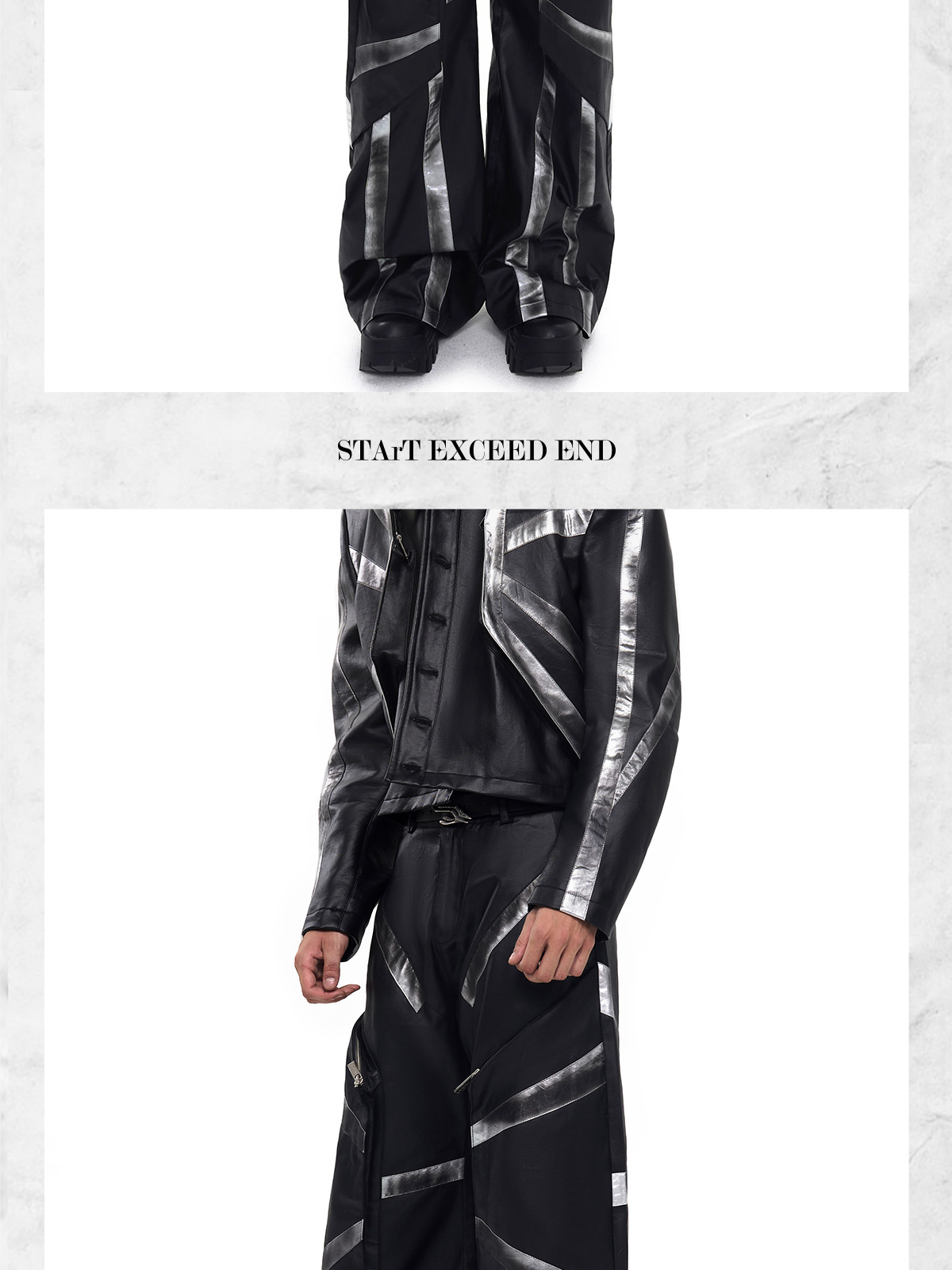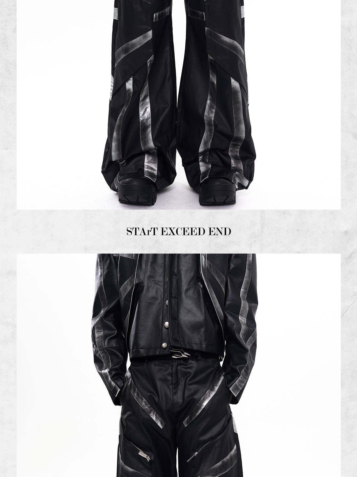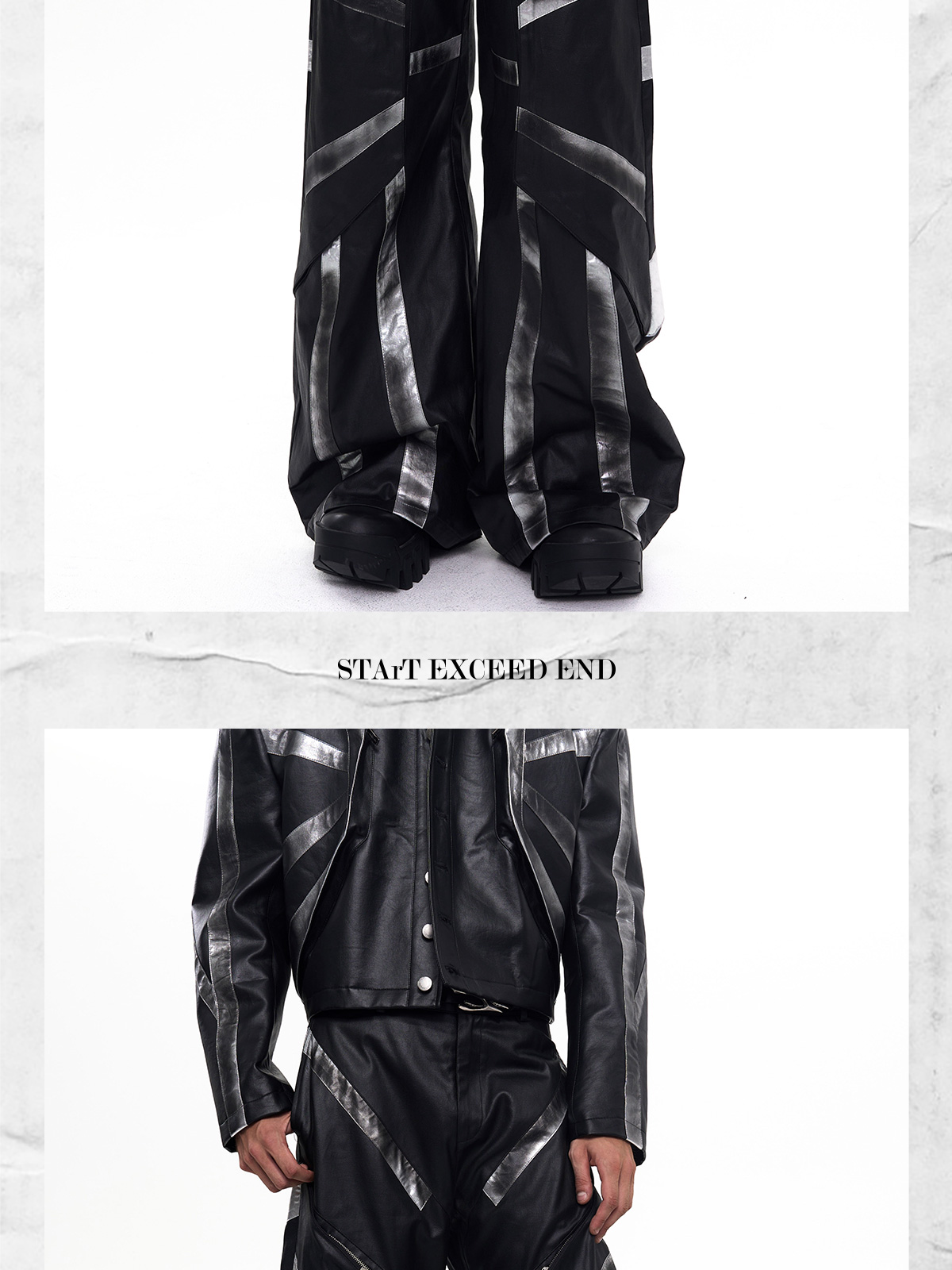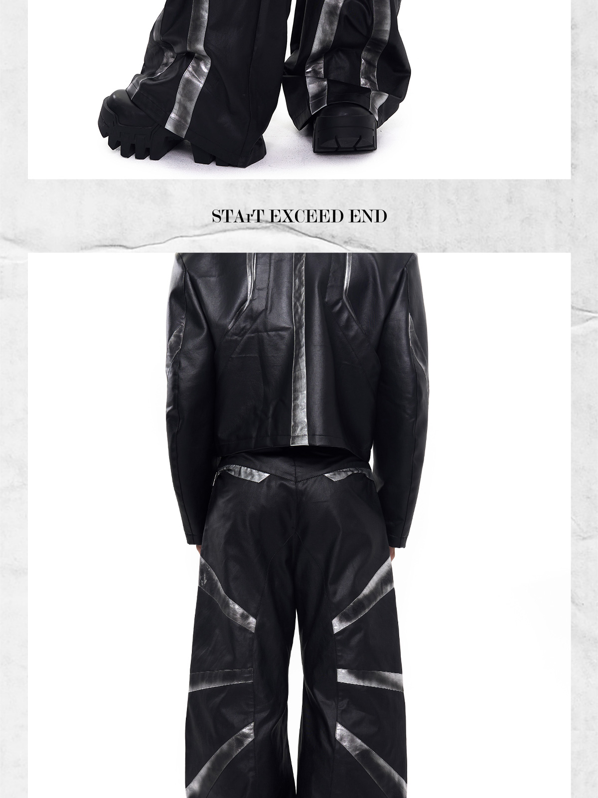 Patchwork Oversize PU Leather Jacket & PU Leather Pants Setup WN20510
