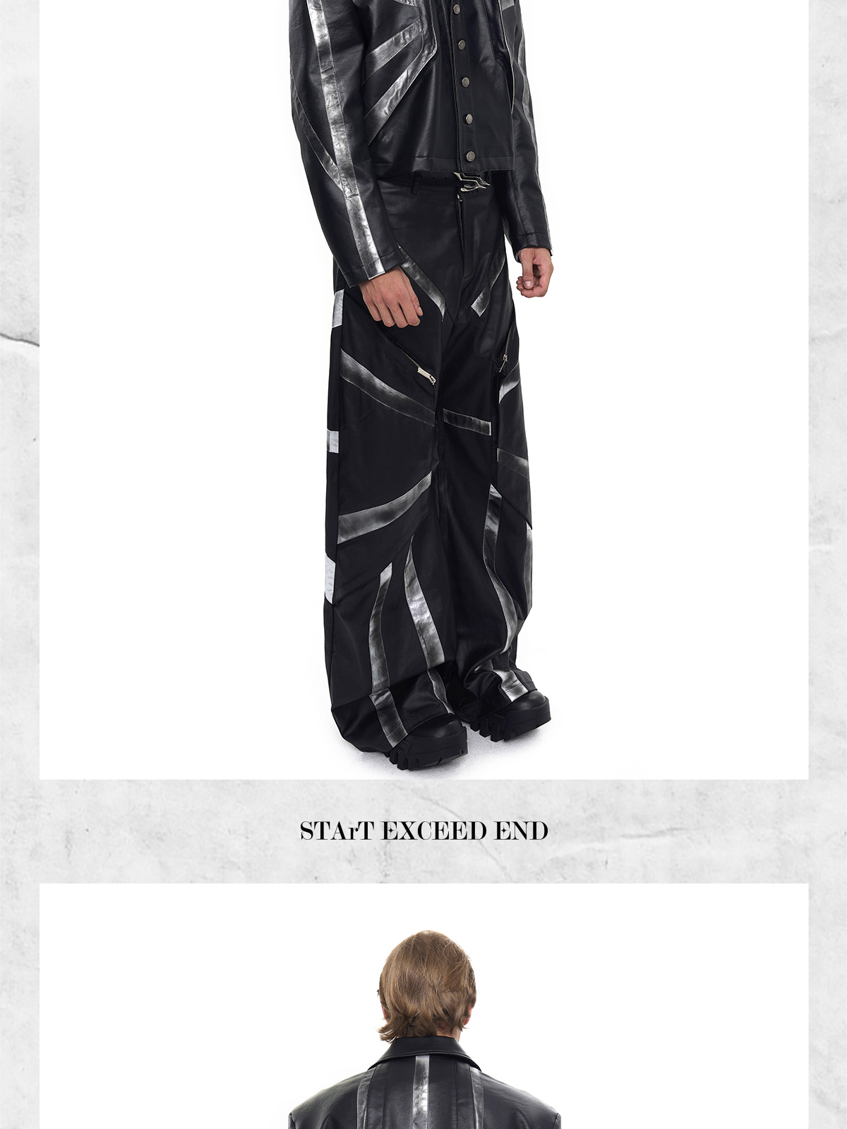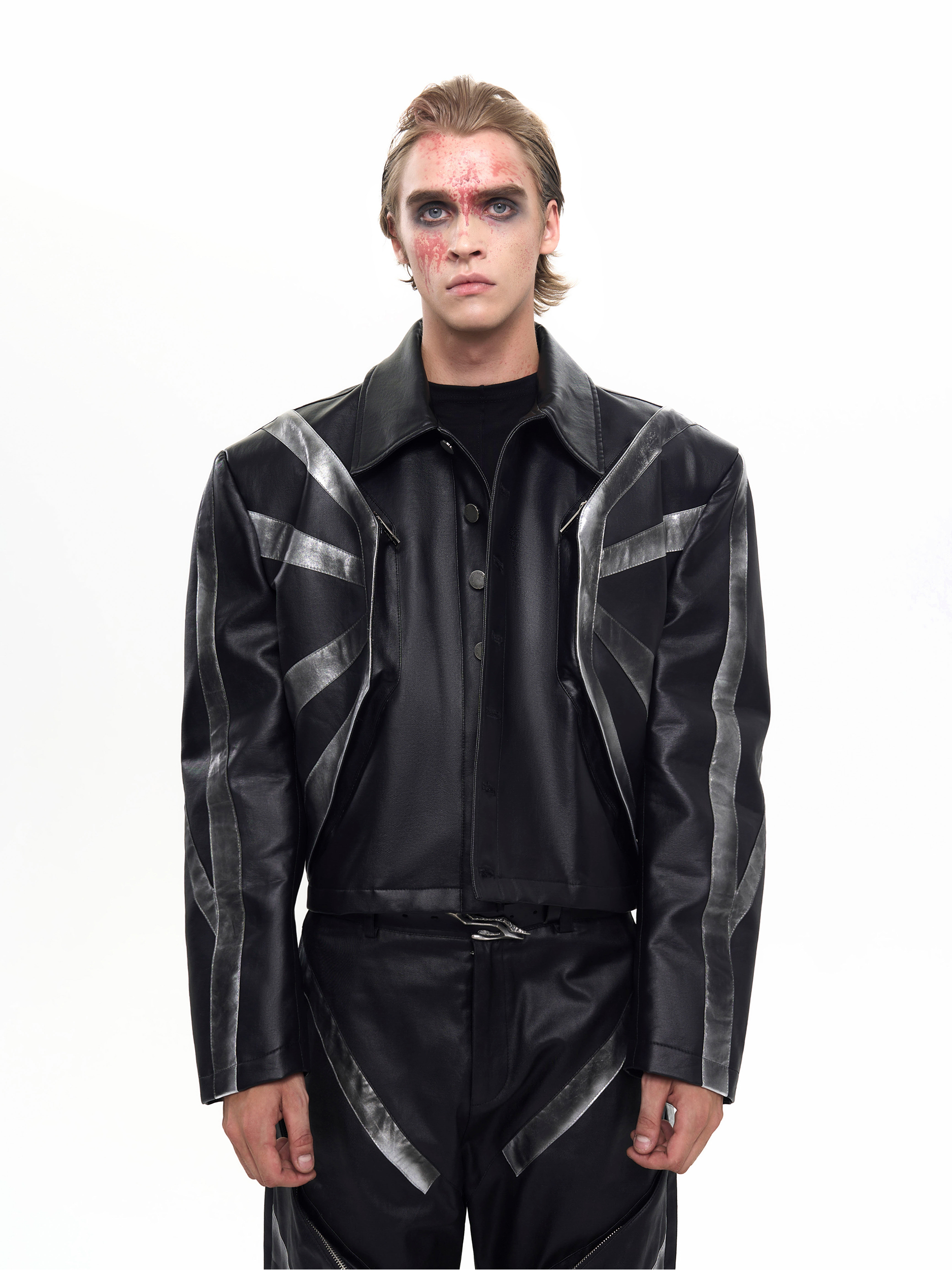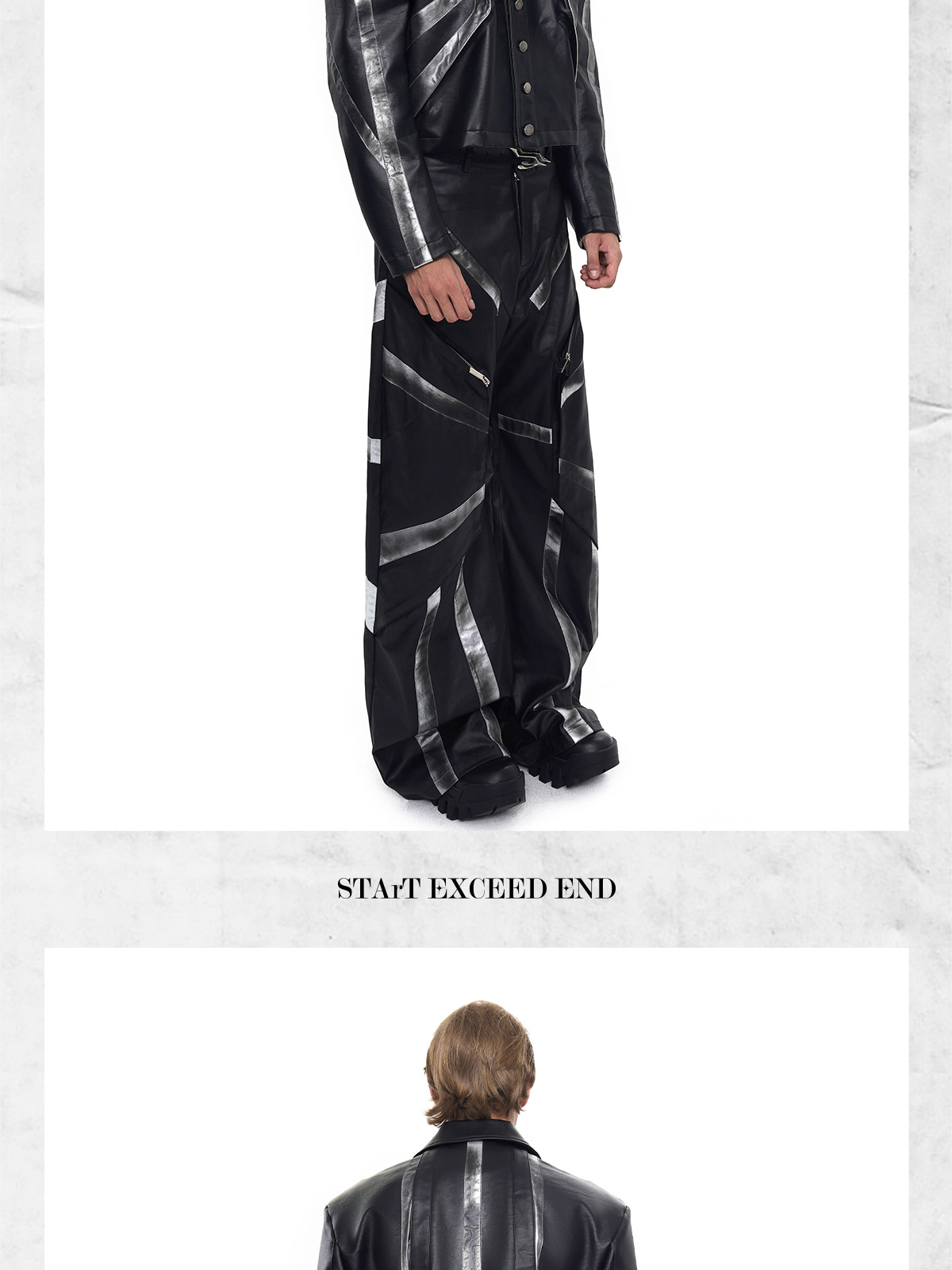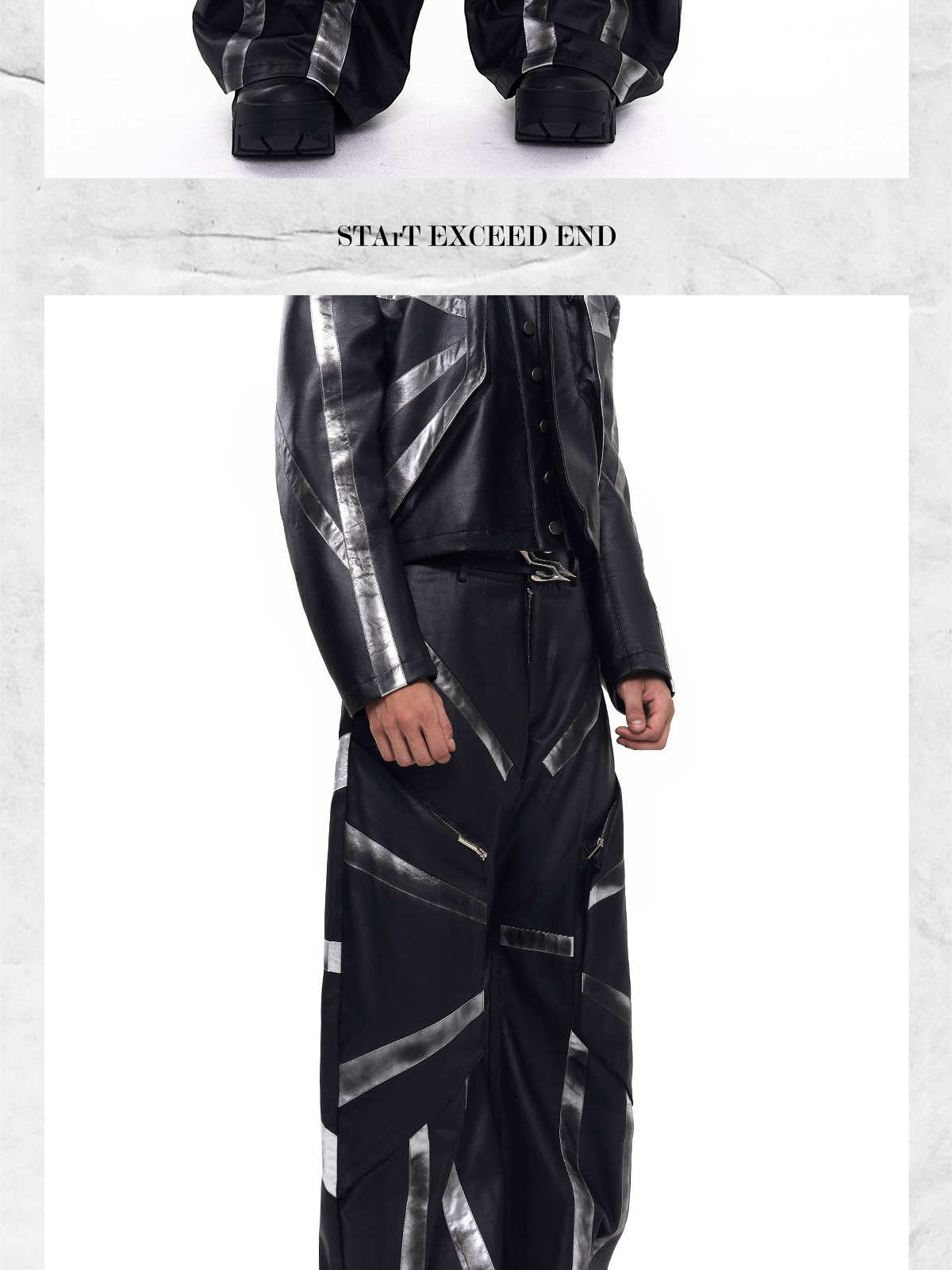 Patchwork Oversize PU Leather Jacket & PU Leather Pants Setup WN20510