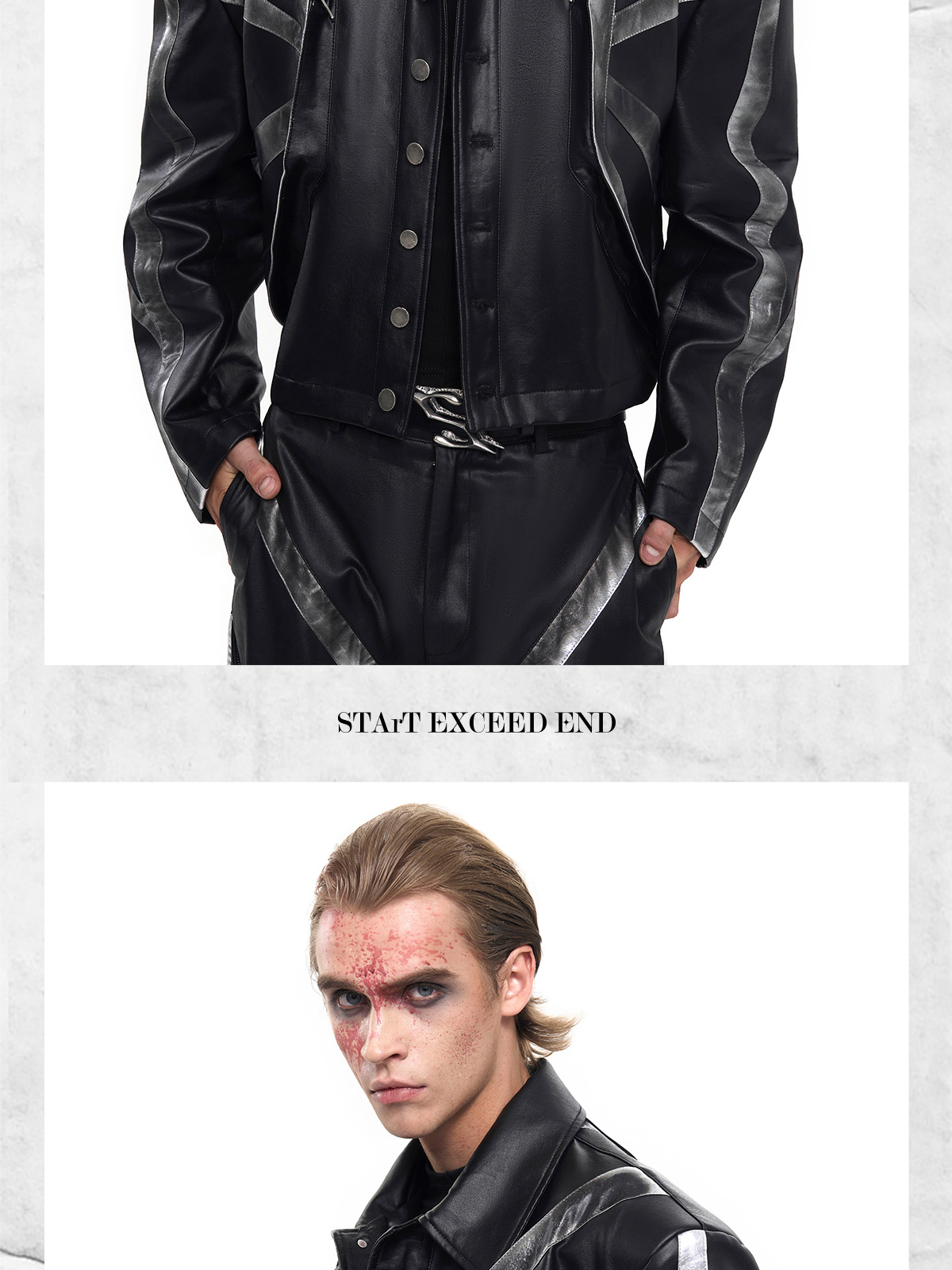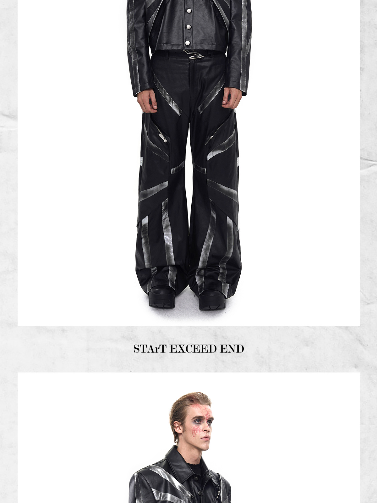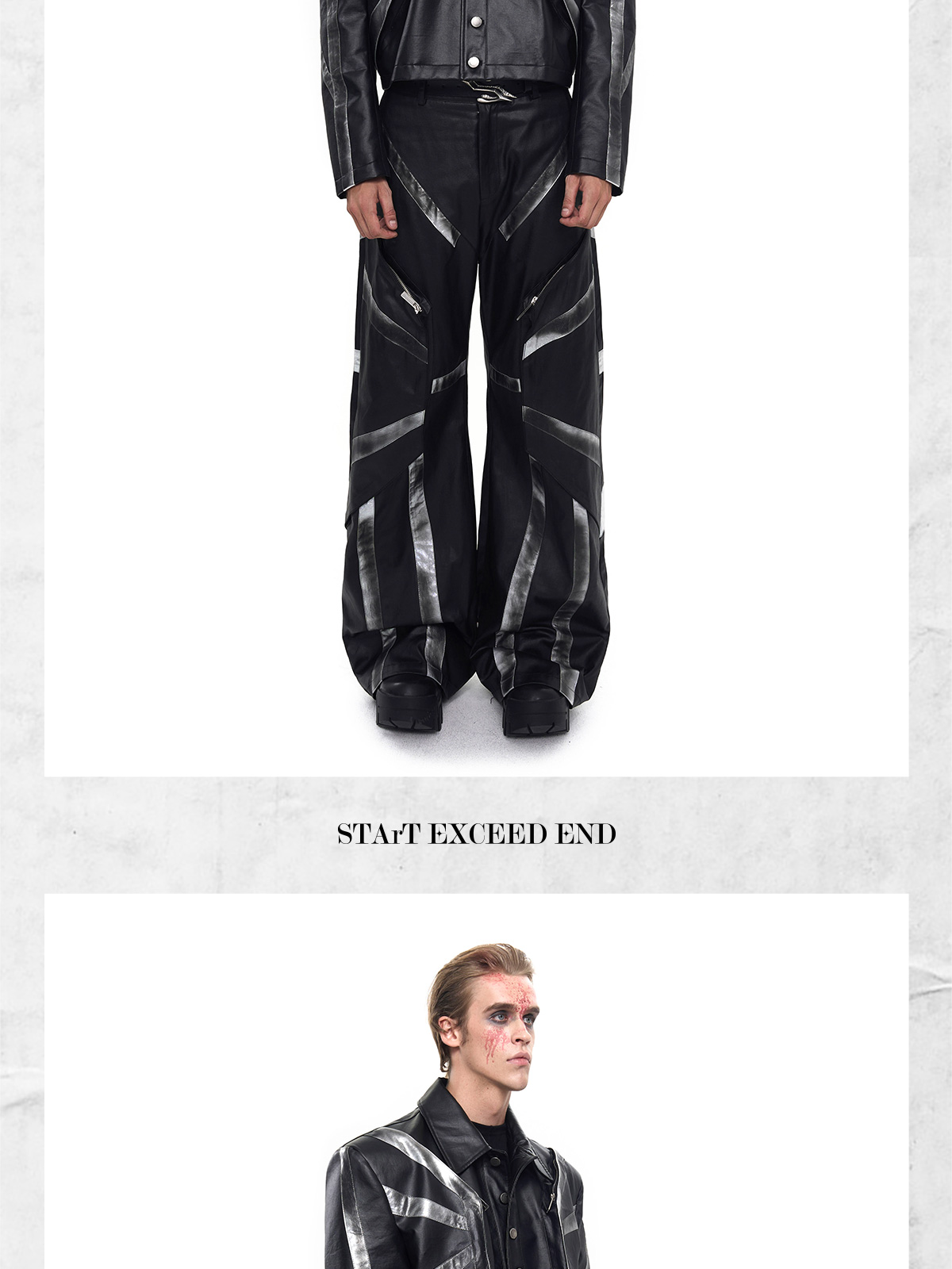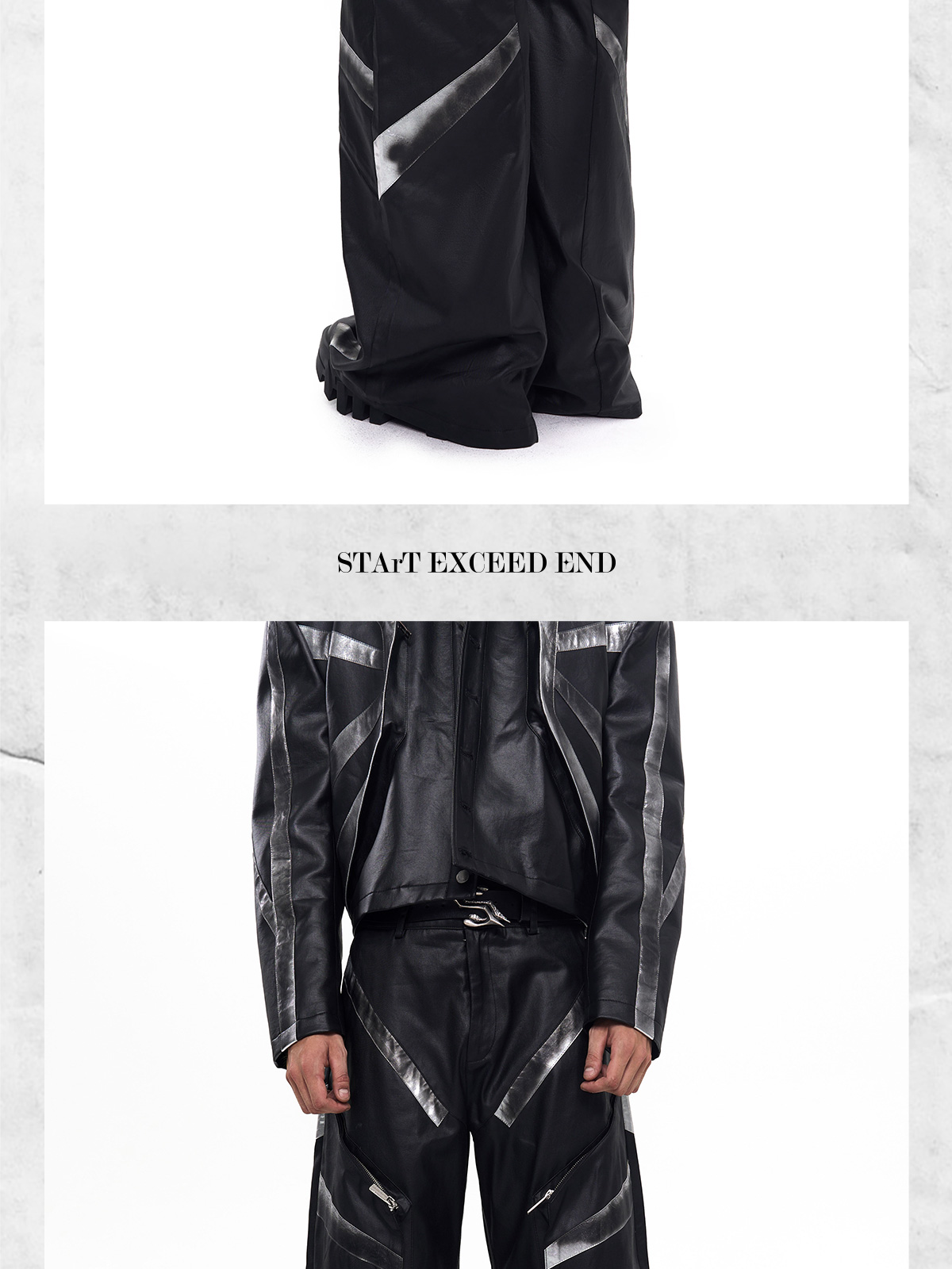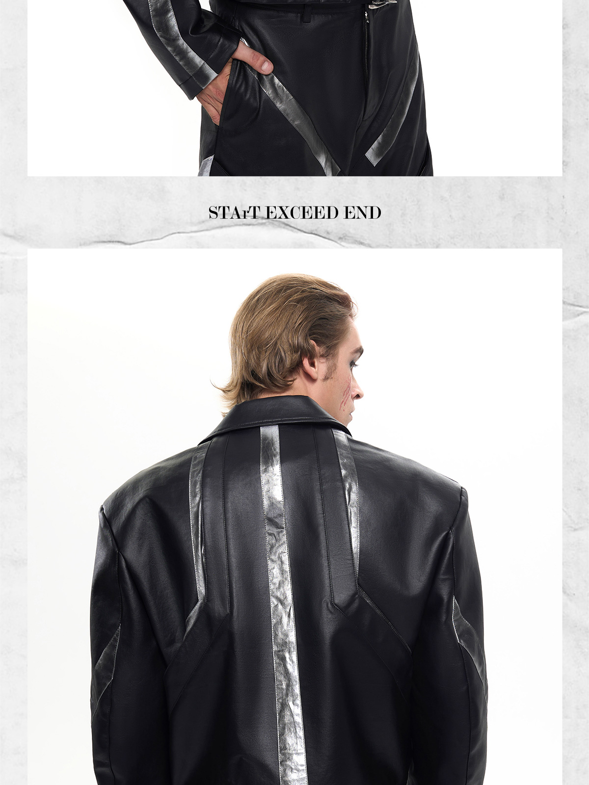 Patchwork Oversize PU Leather Jacket & PU Leather Pants Setup WN20510