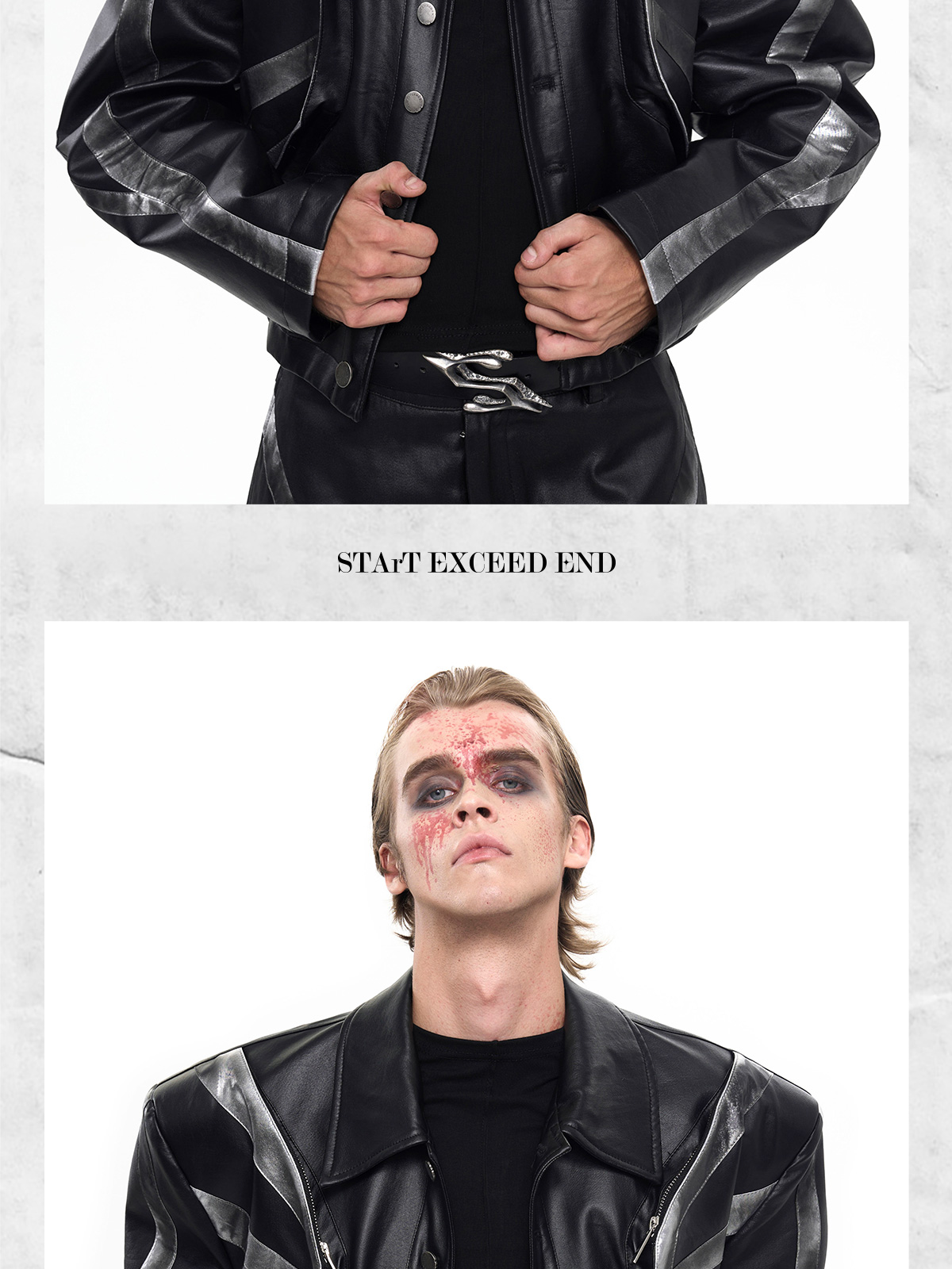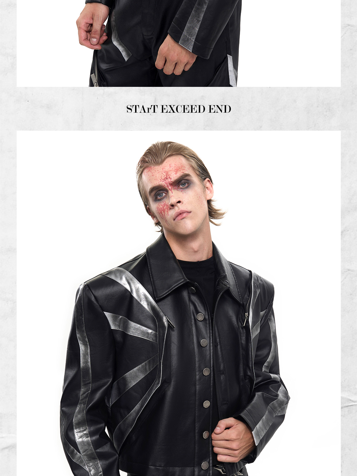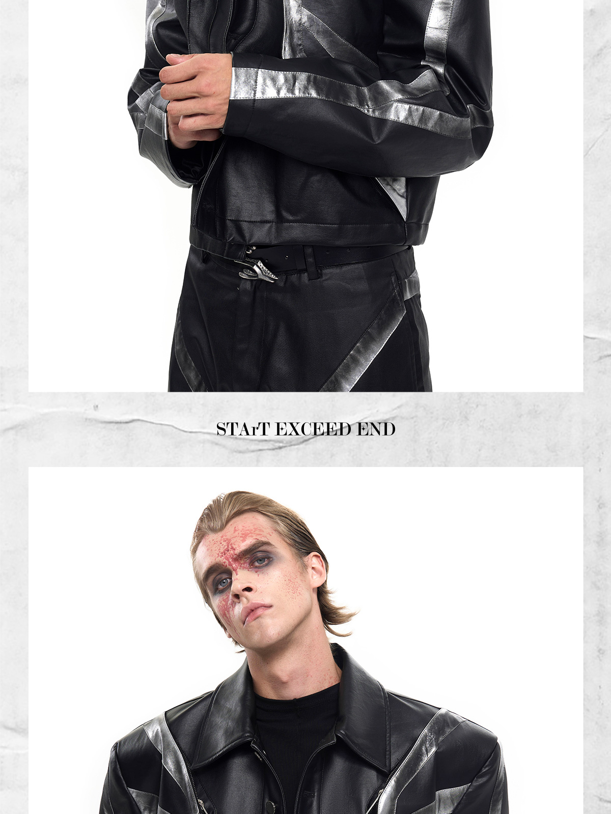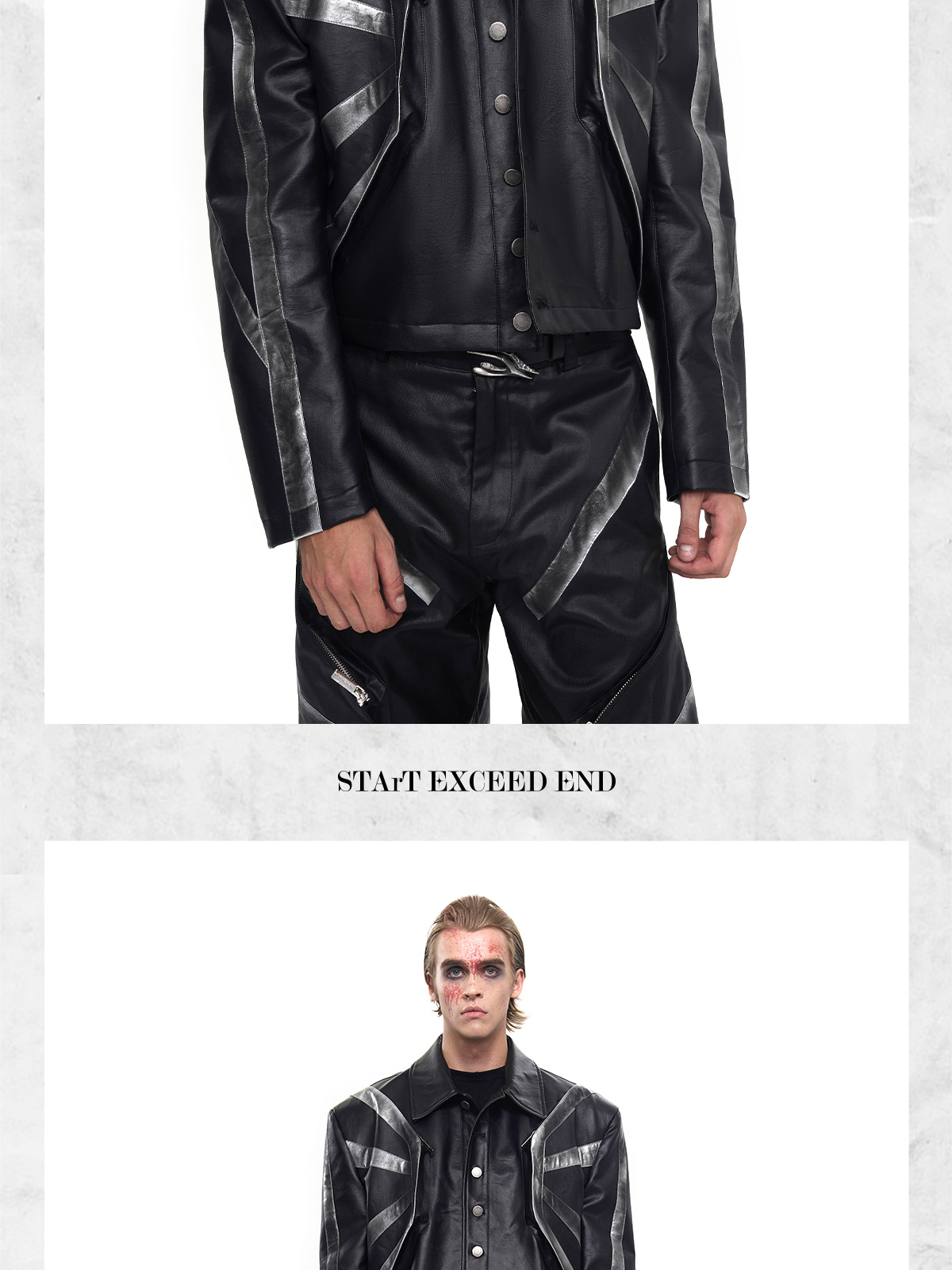 Patchwork Oversize PU Leather Jacket & PU Leather Pants Setup WN20510