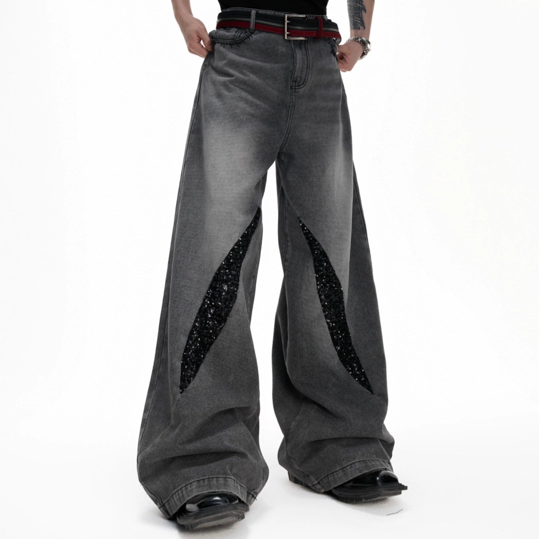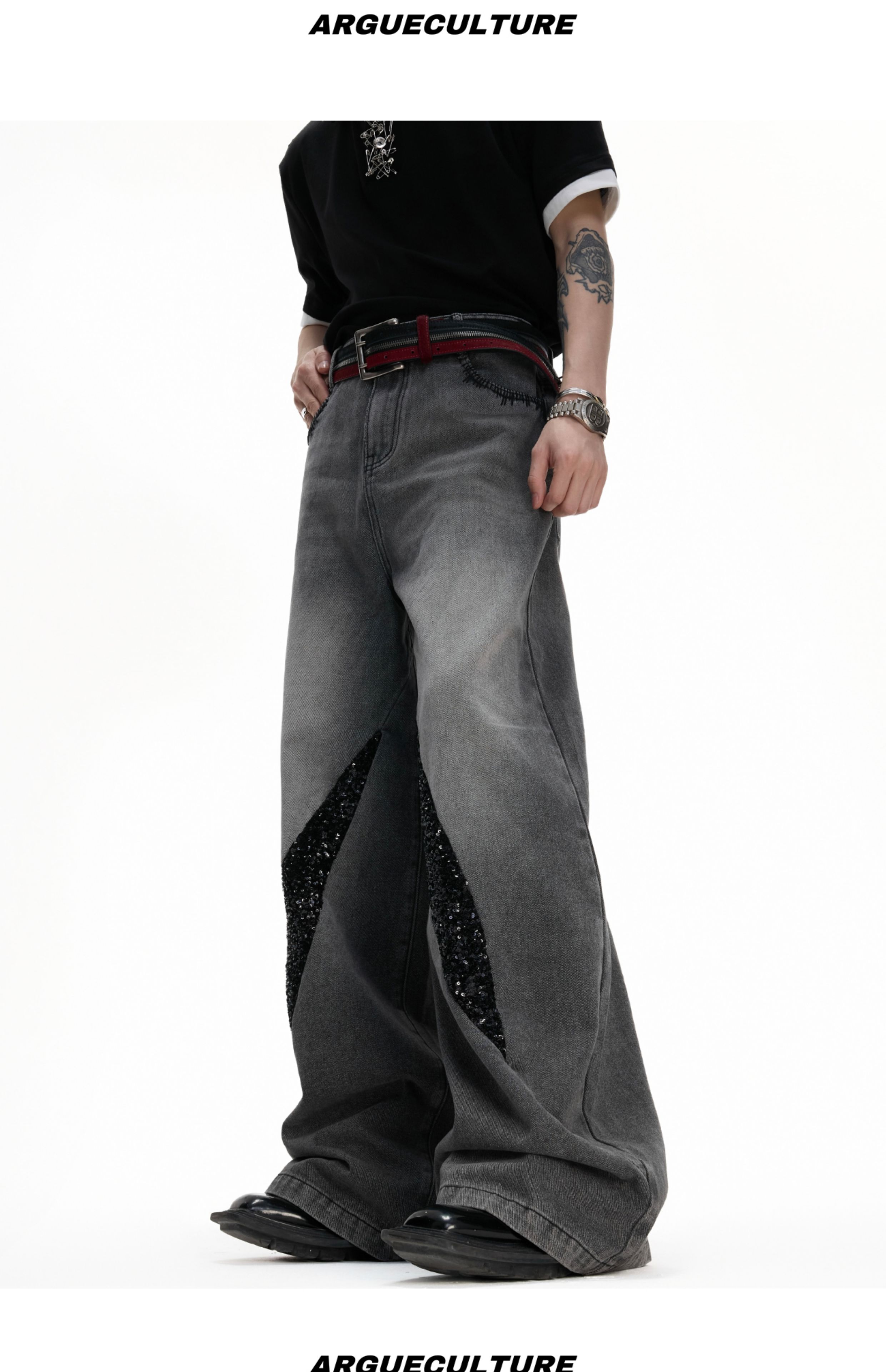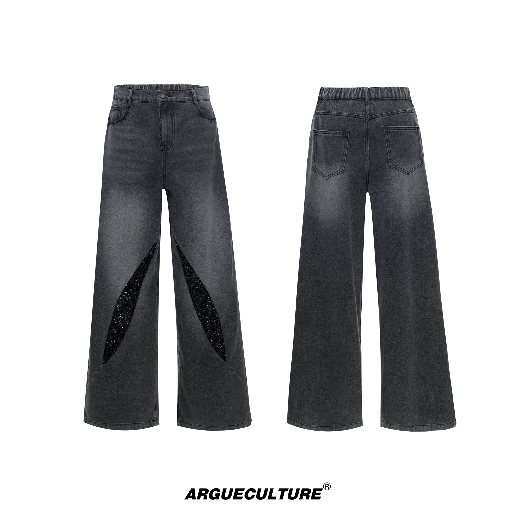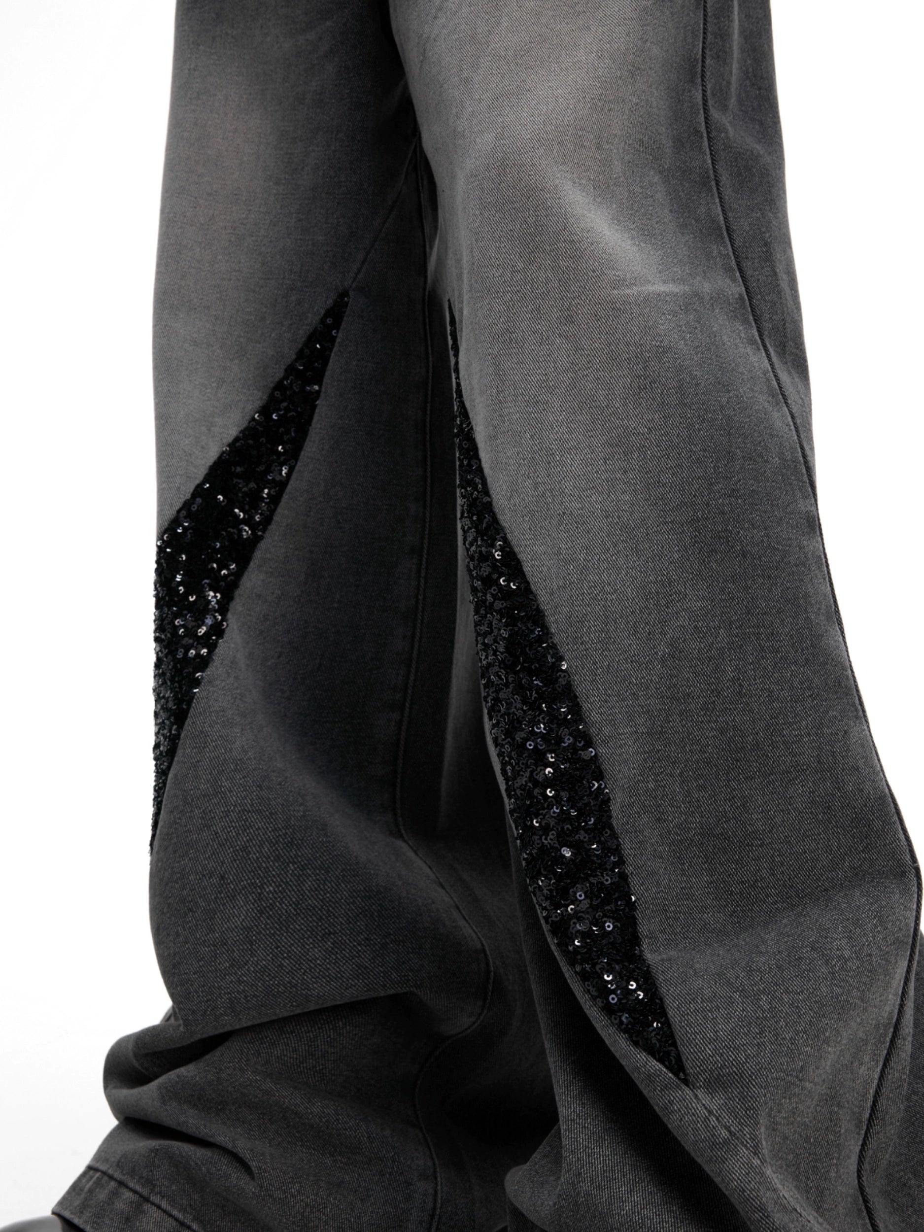 Washed Sequin Damage Straight Denim Jeans WN20670