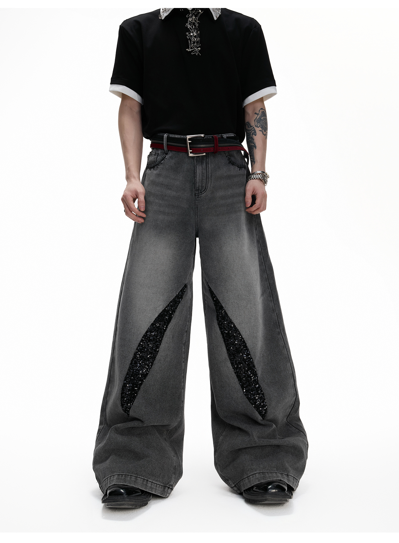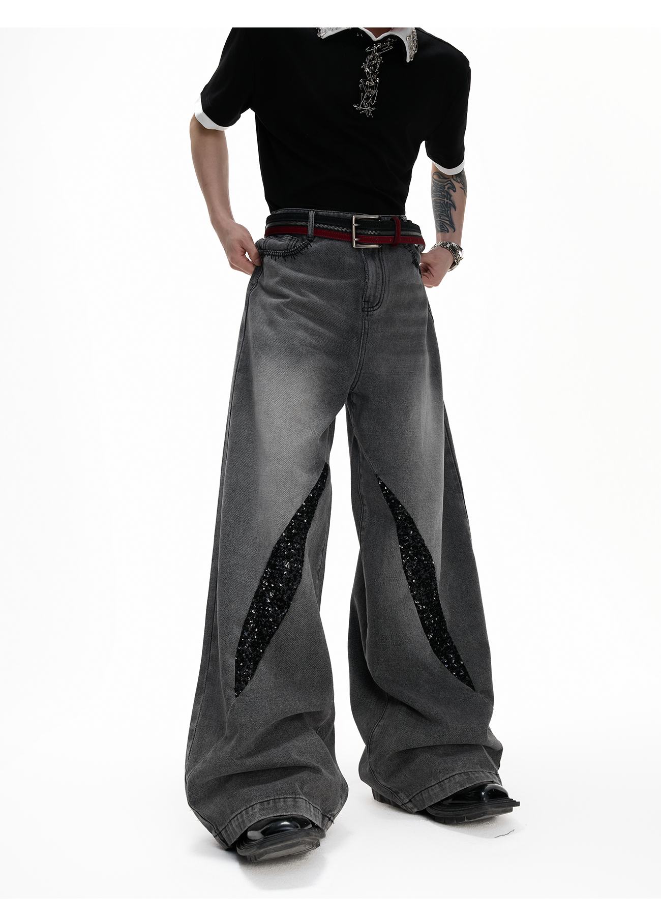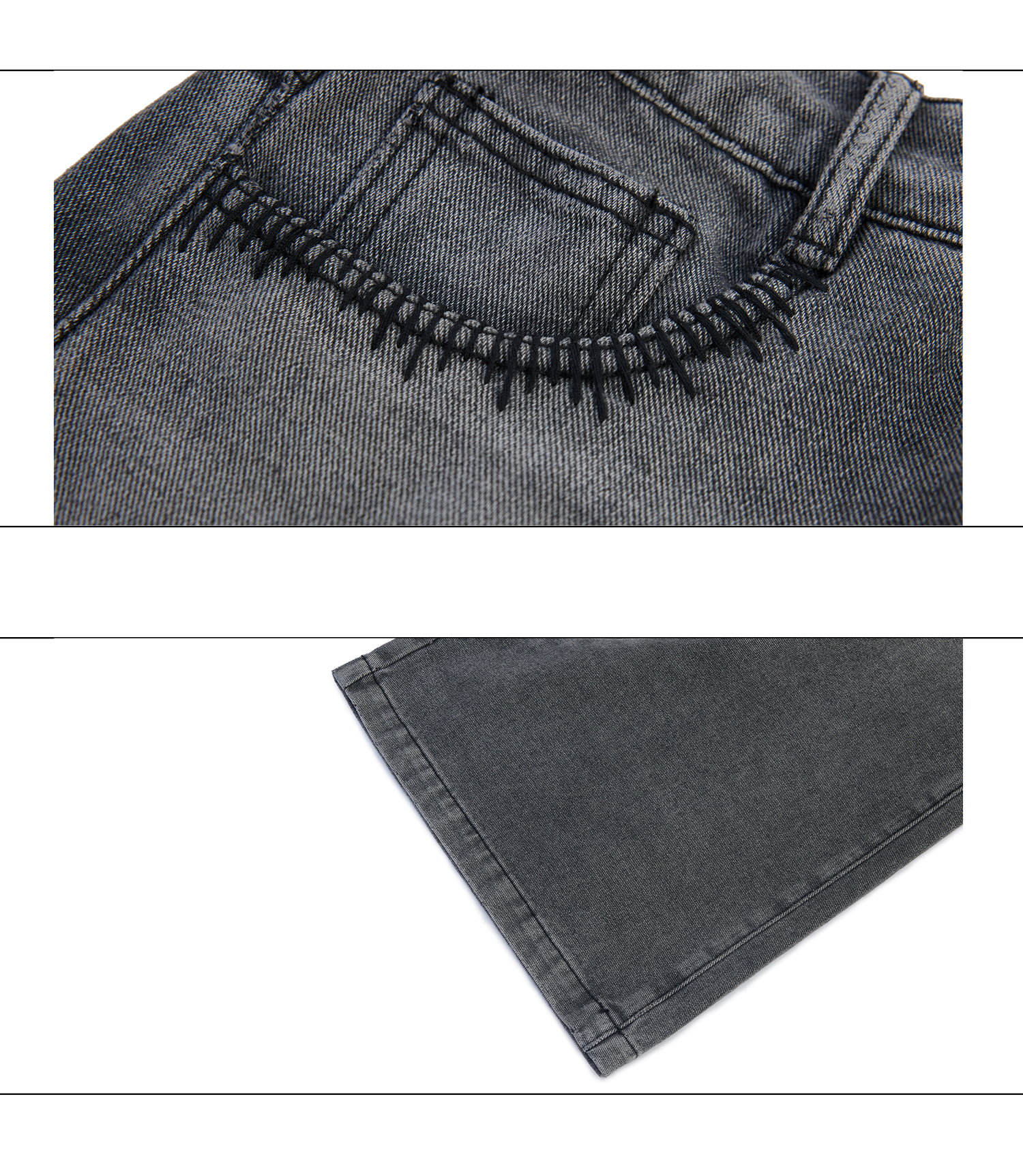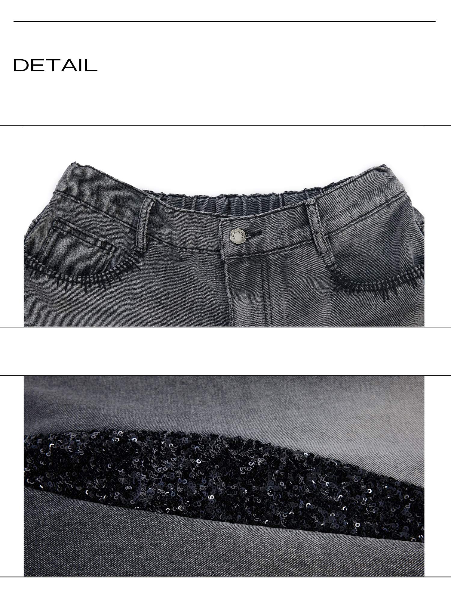 Washed Sequin Damage Straight Denim Jeans WN20670