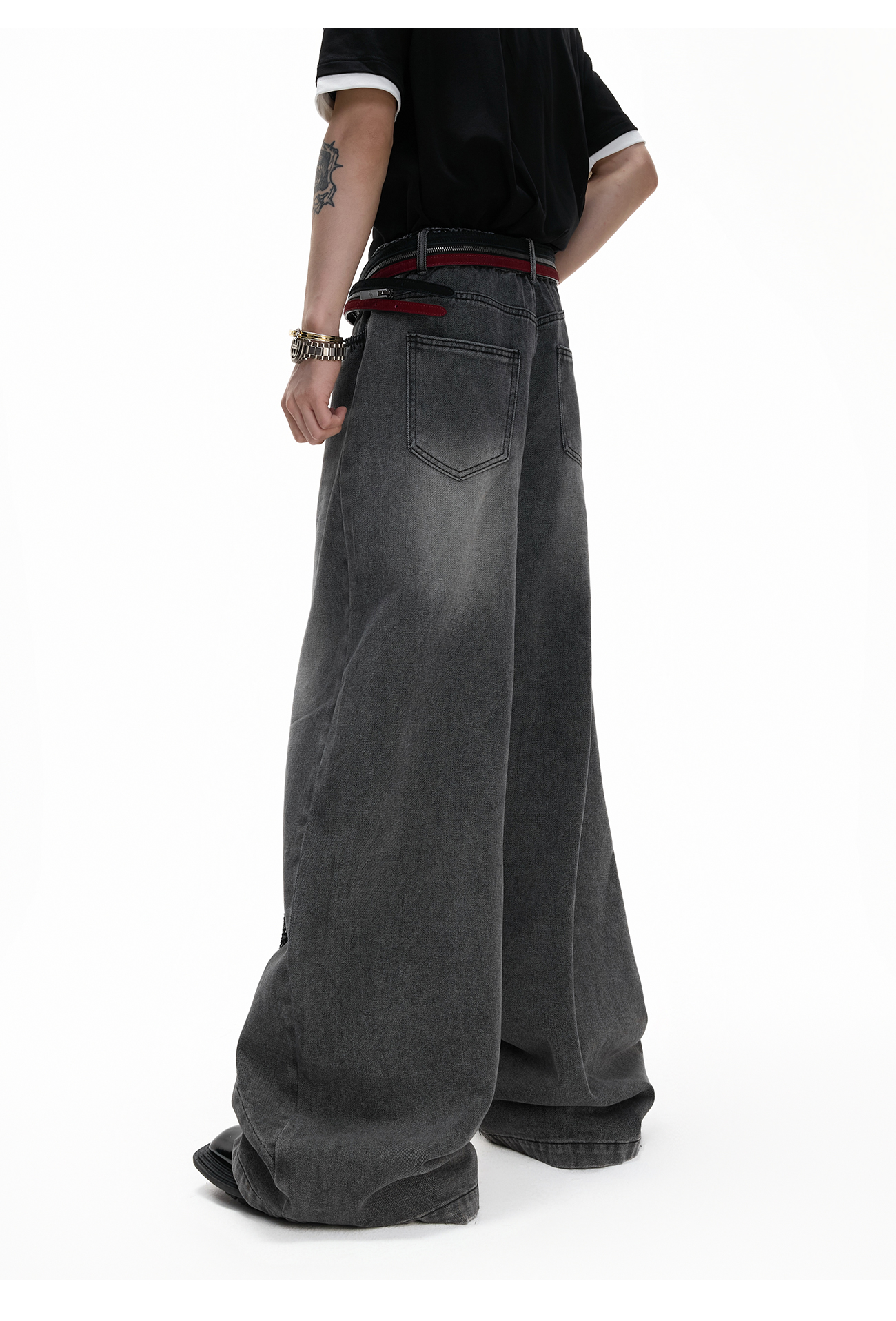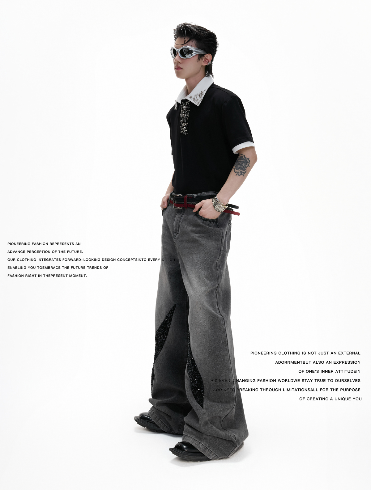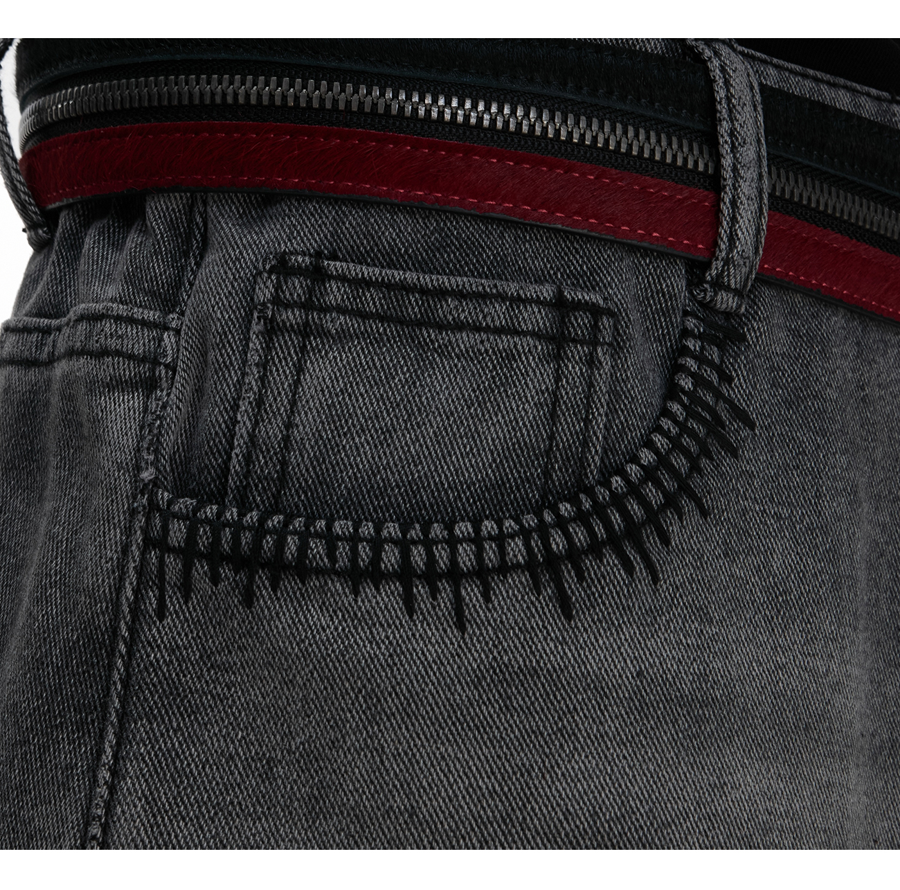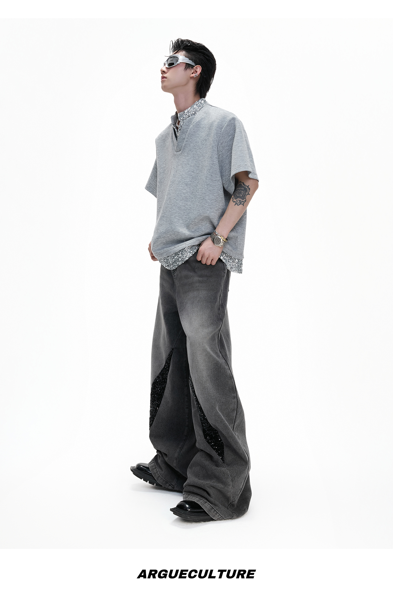 Washed Sequin Damage Straight Denim Jeans WN20670