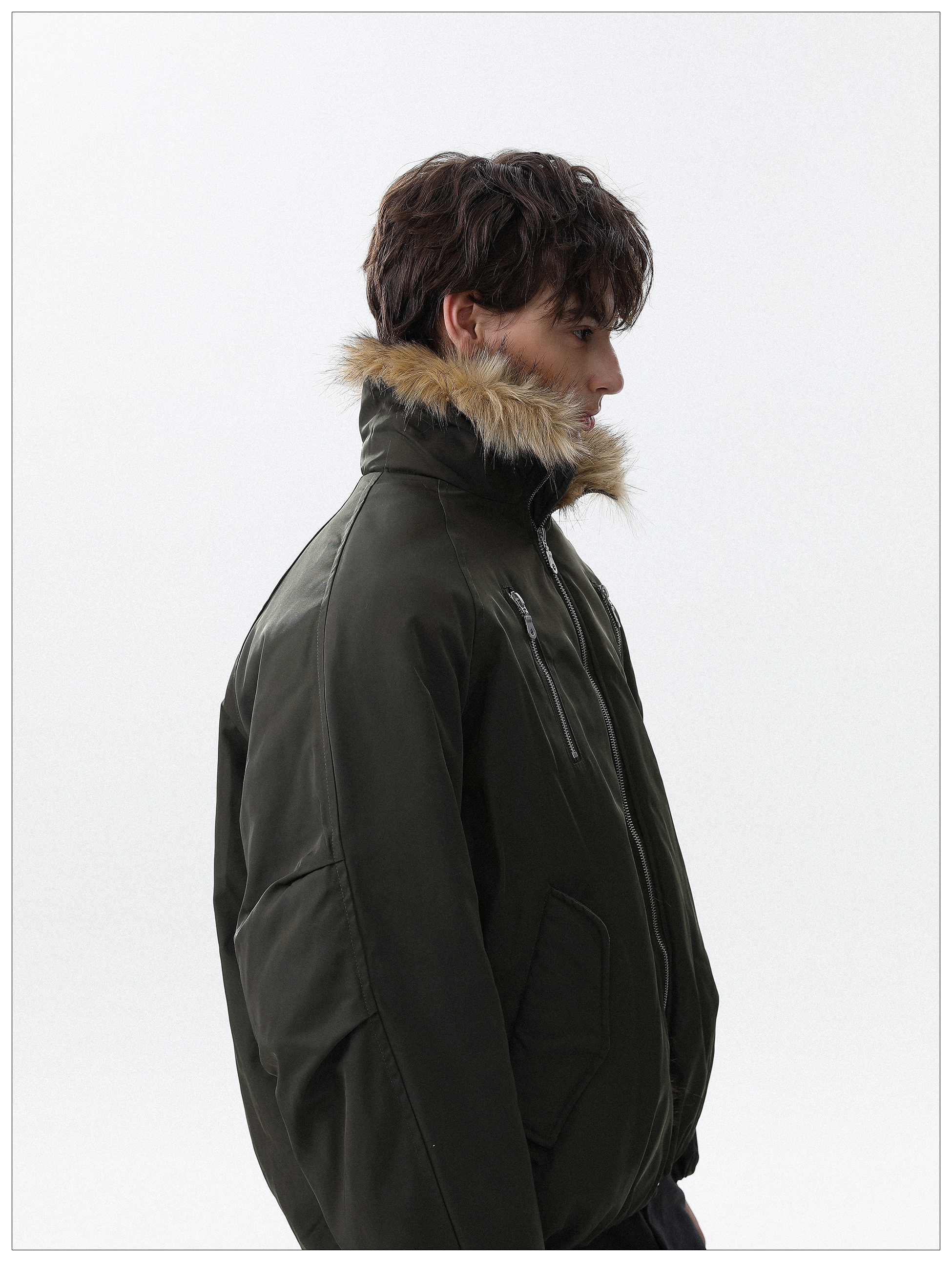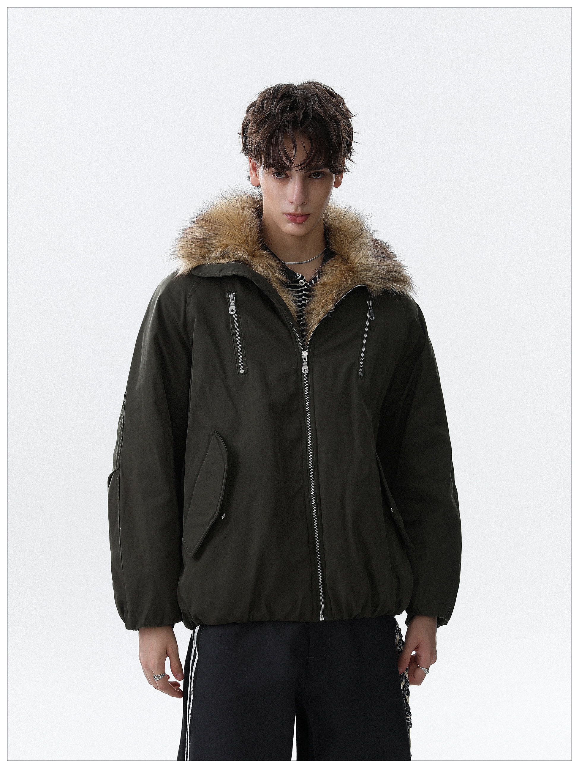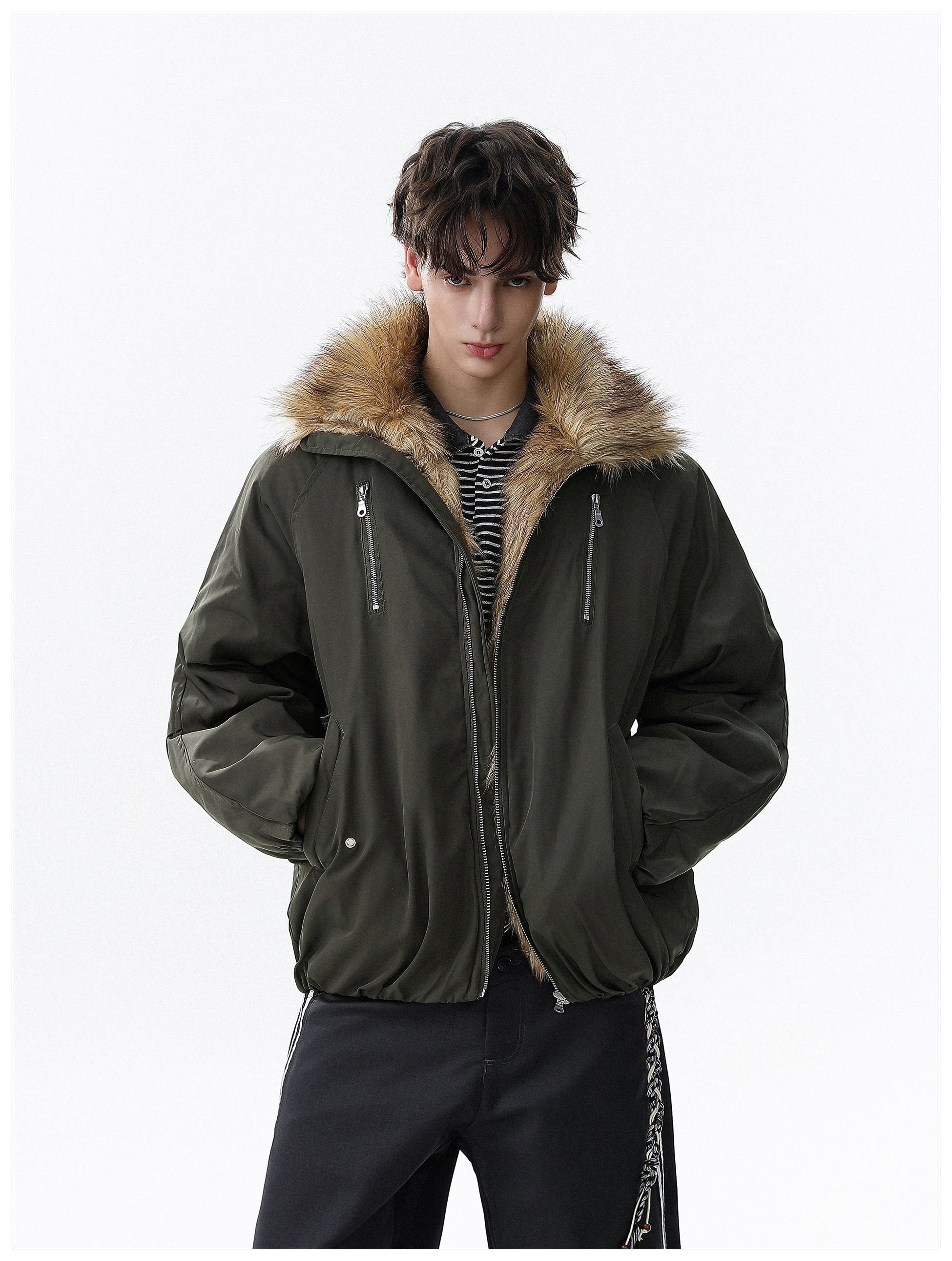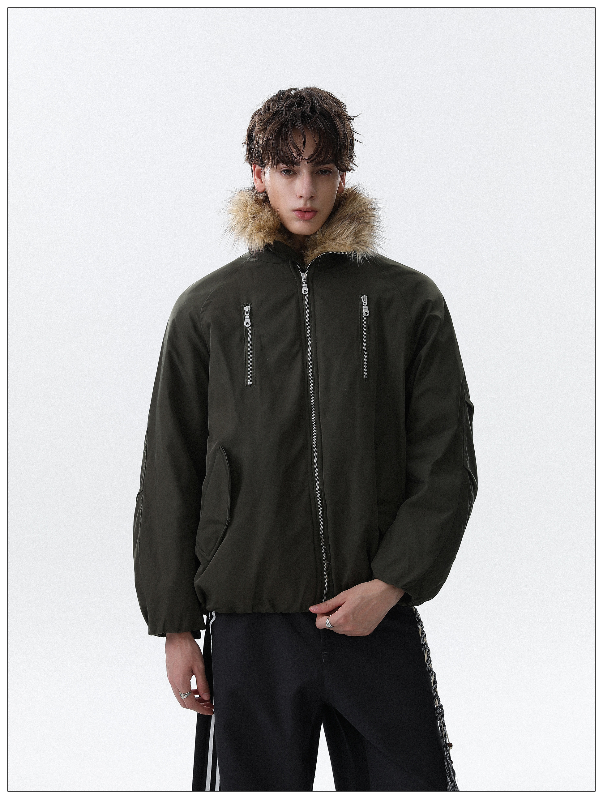 Fake Fur-Collar Pockets Design Thick Zipper Jacket WN22091