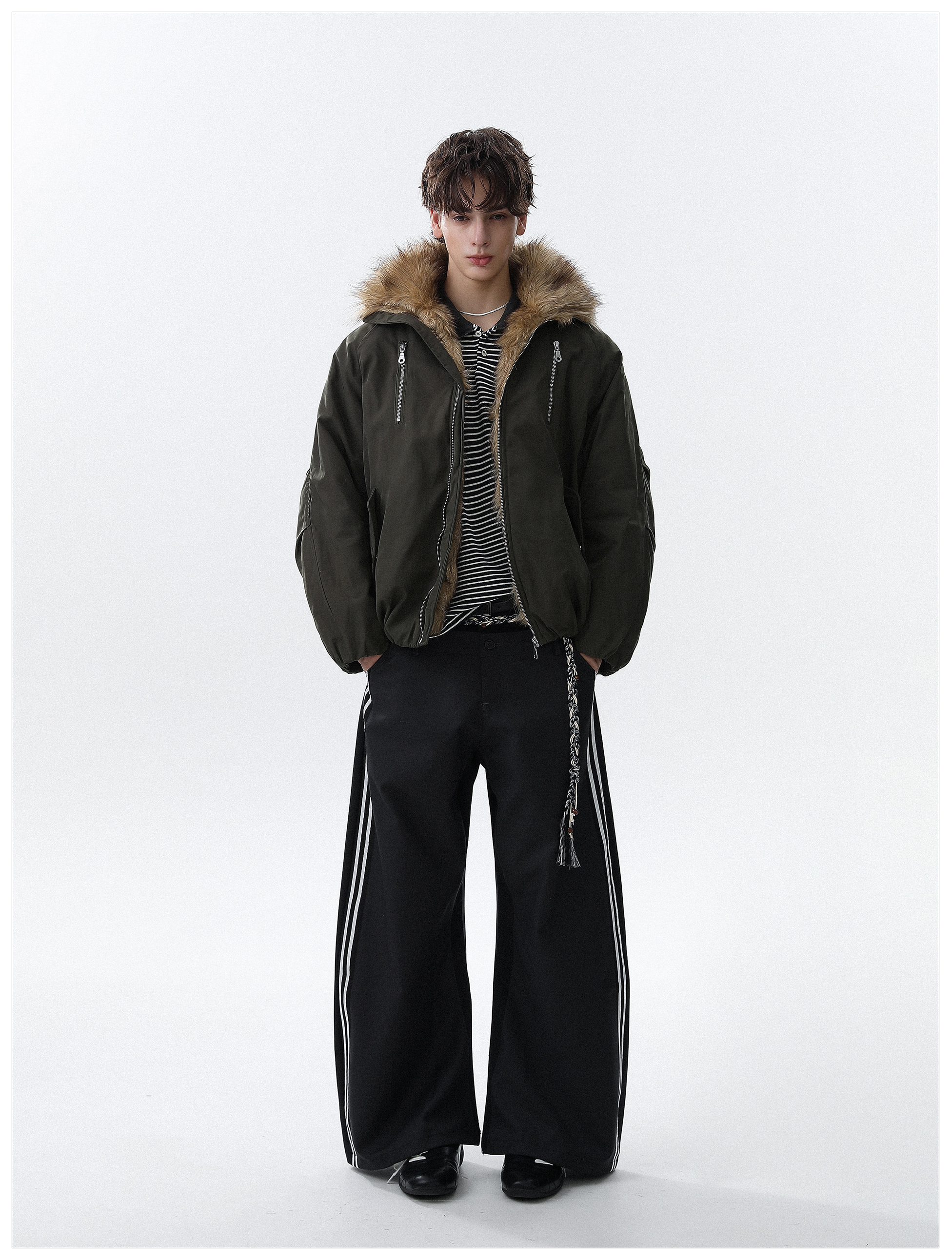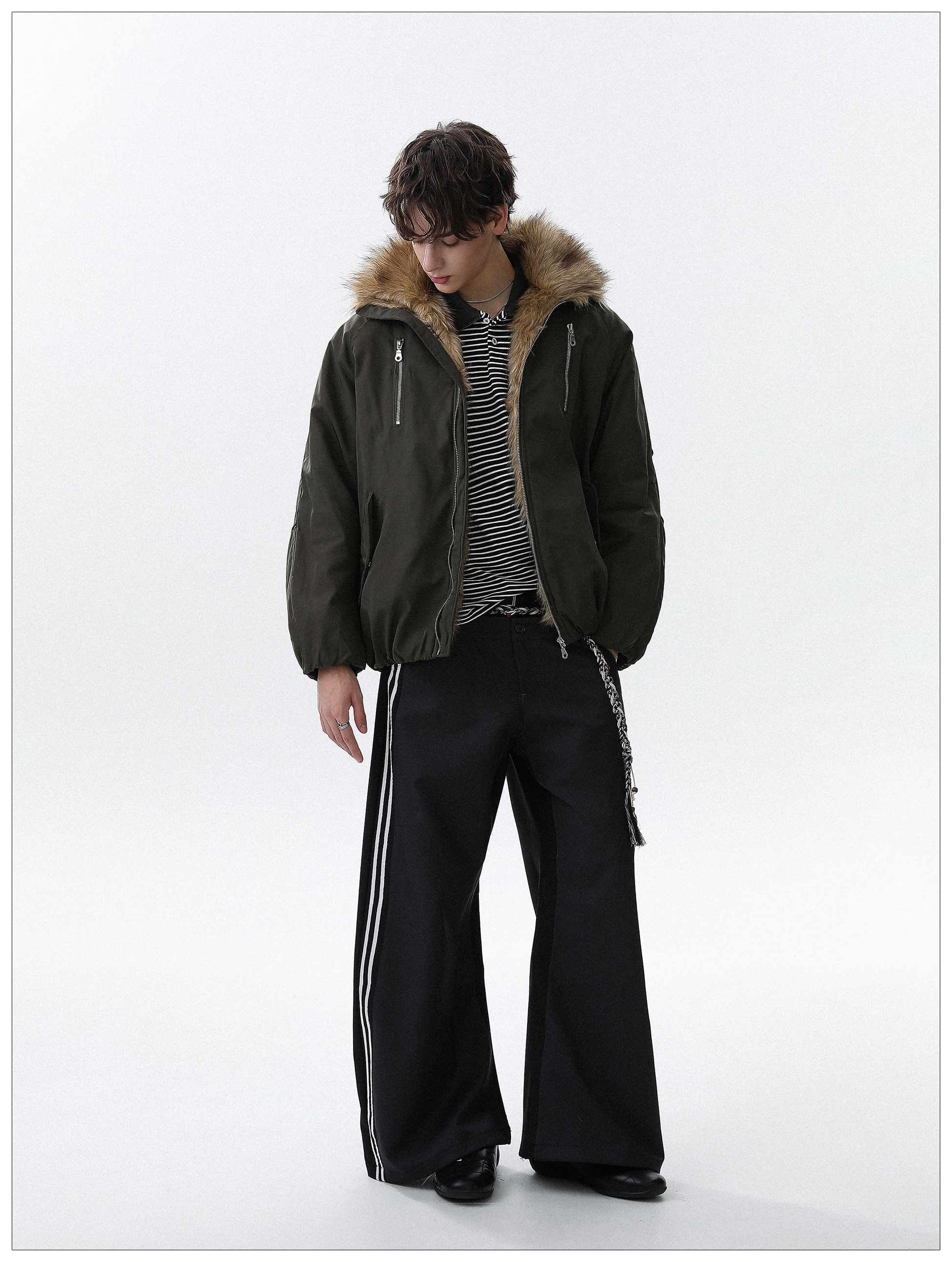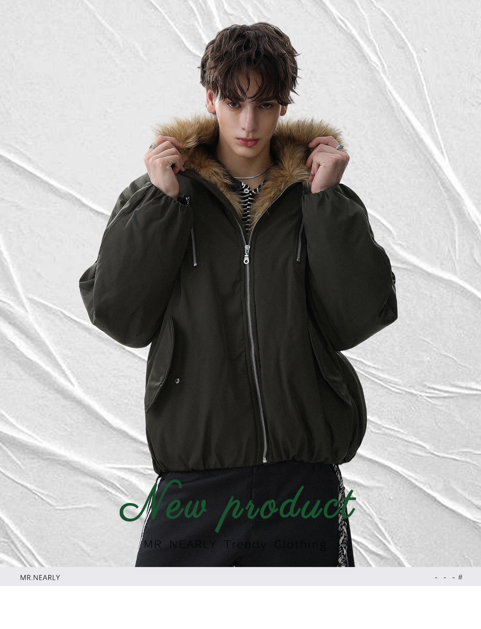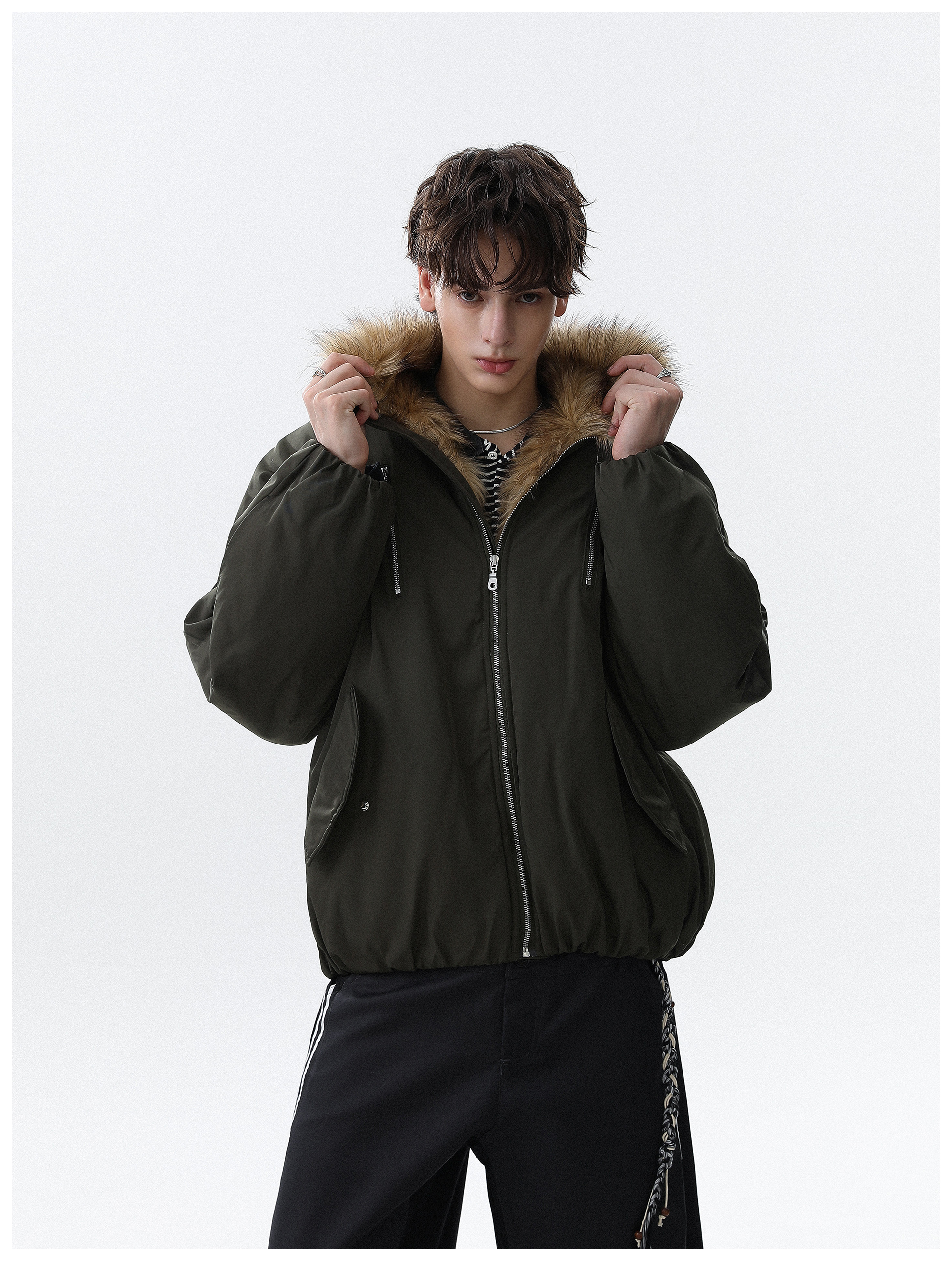 Fake Fur-Collar Pockets Design Thick Zipper Jacket WN22091