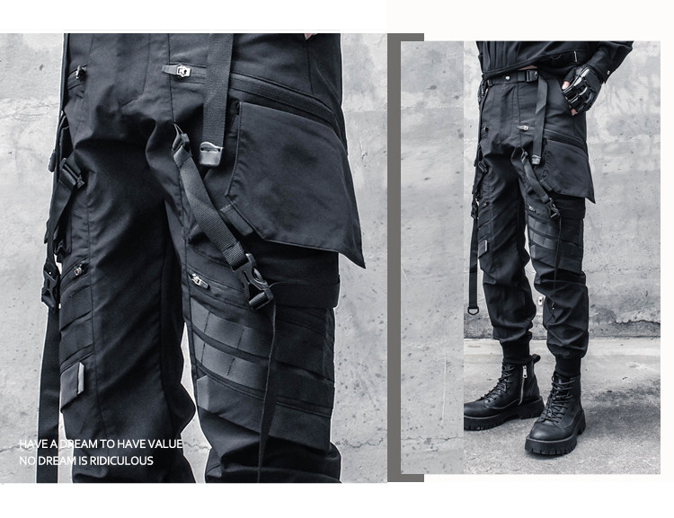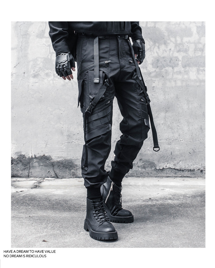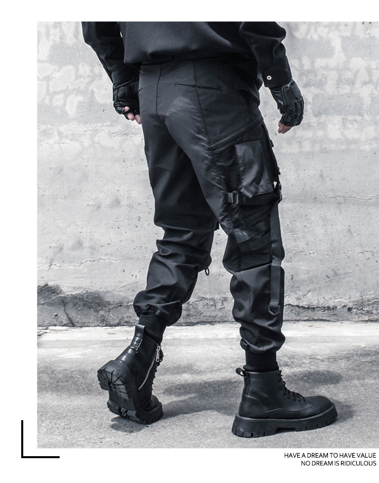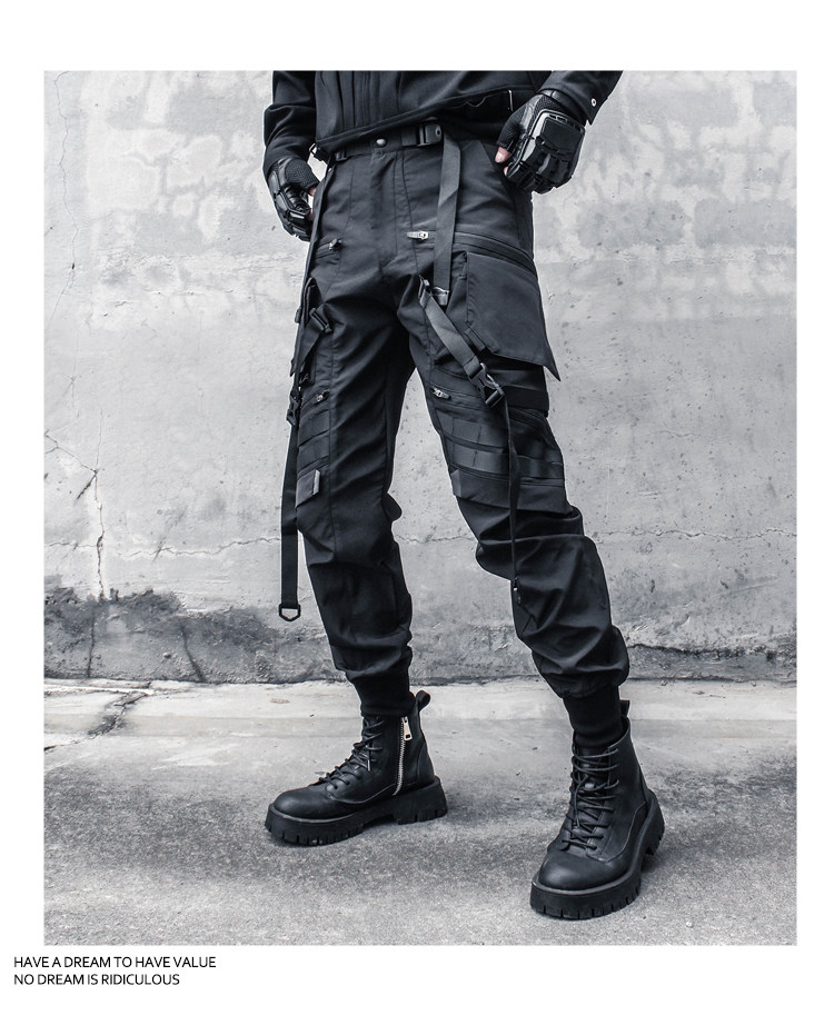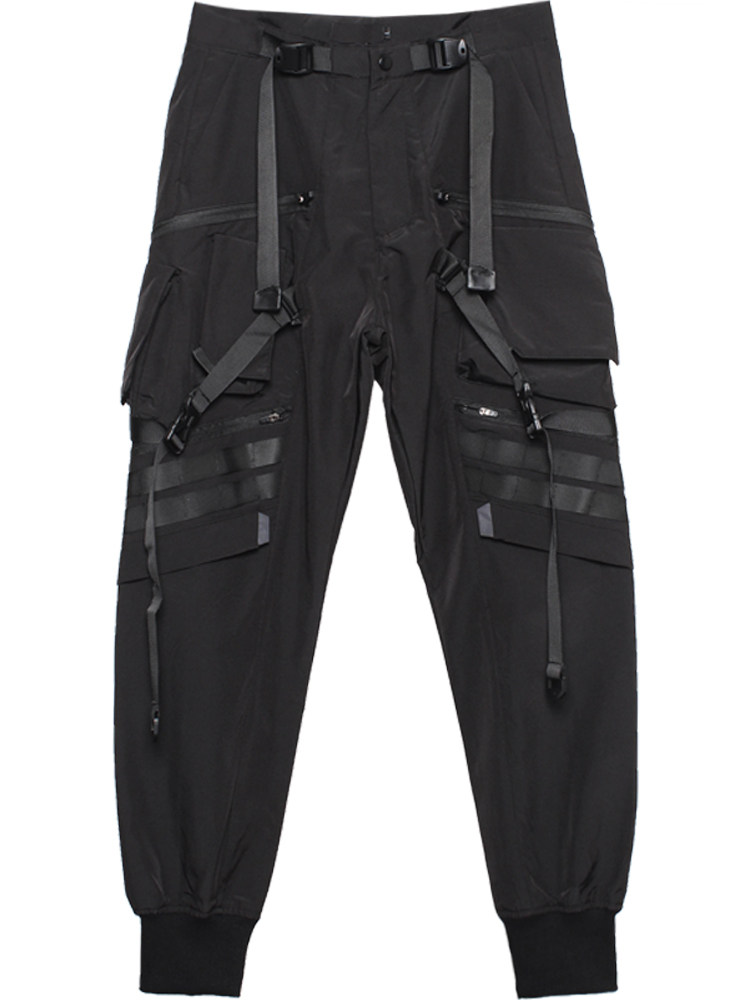 Functional Ribbon Strap Waist Belt Cuffed Cargo Pants WN22474