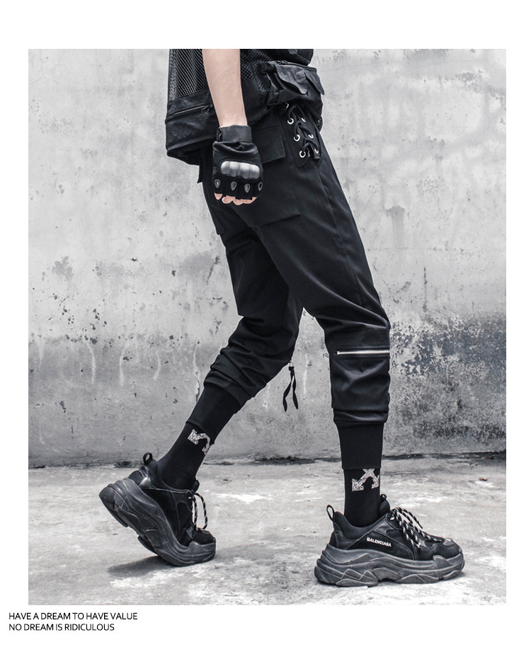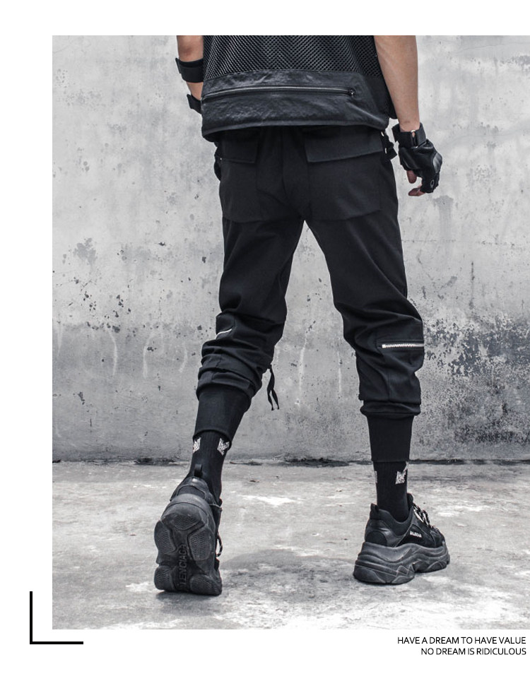 Drawstring Knee Zipper Functional Cuffed Cargo Pants WN22475