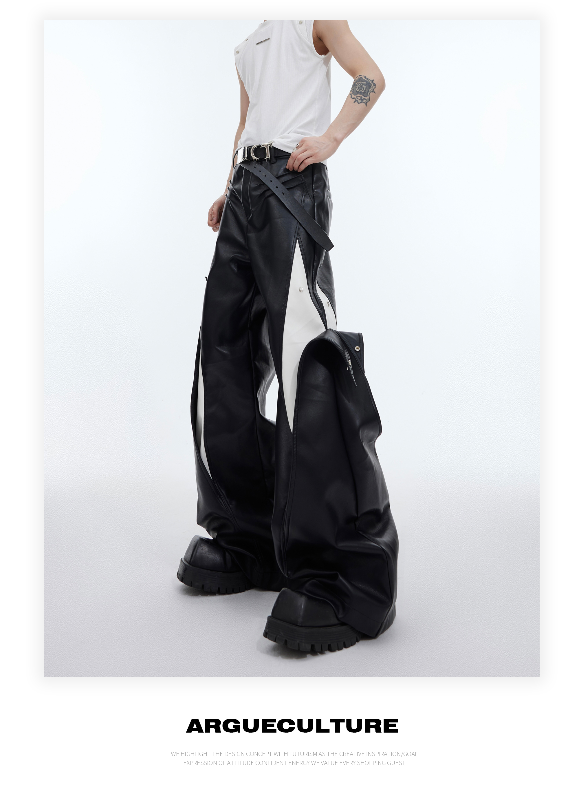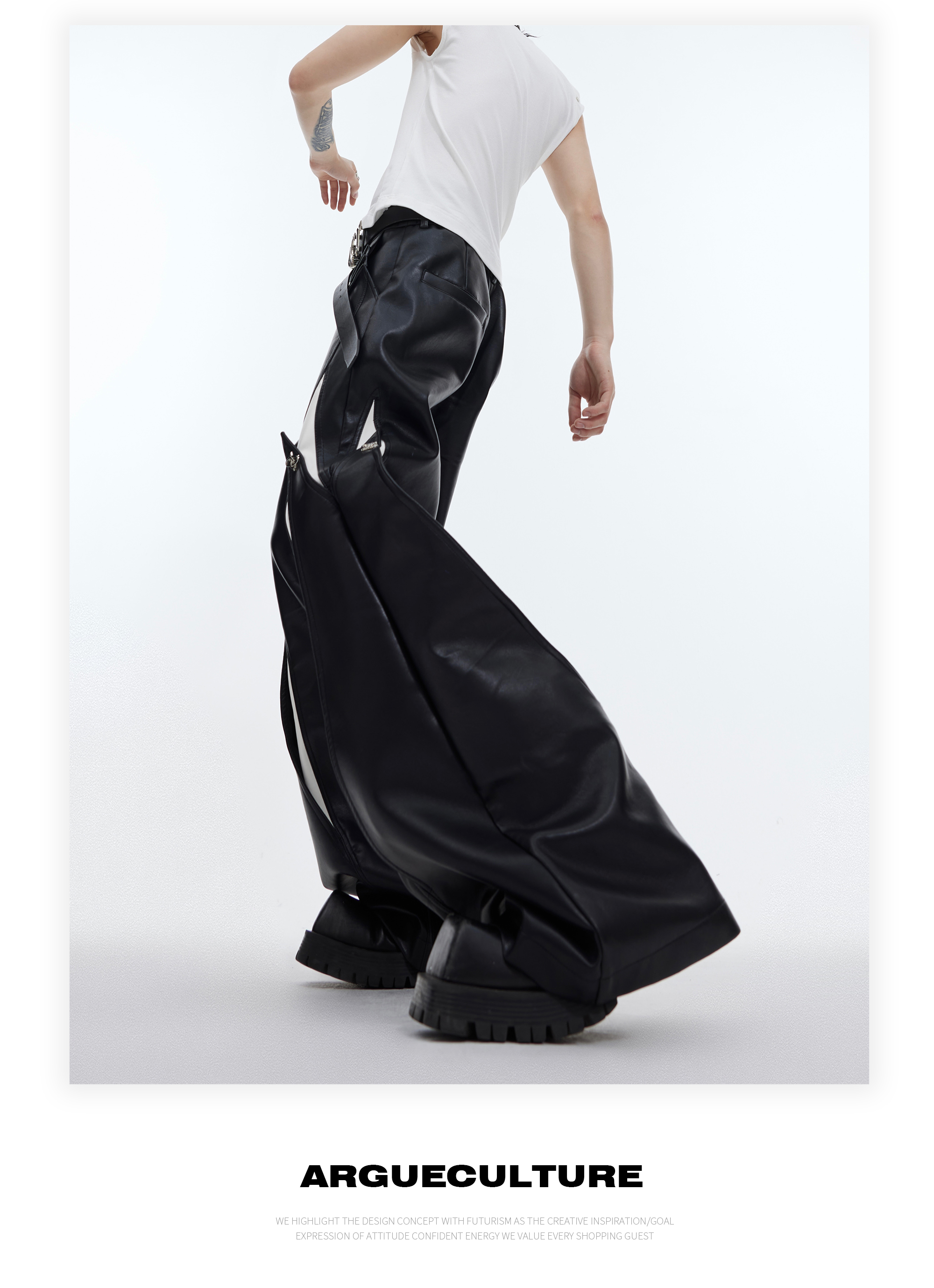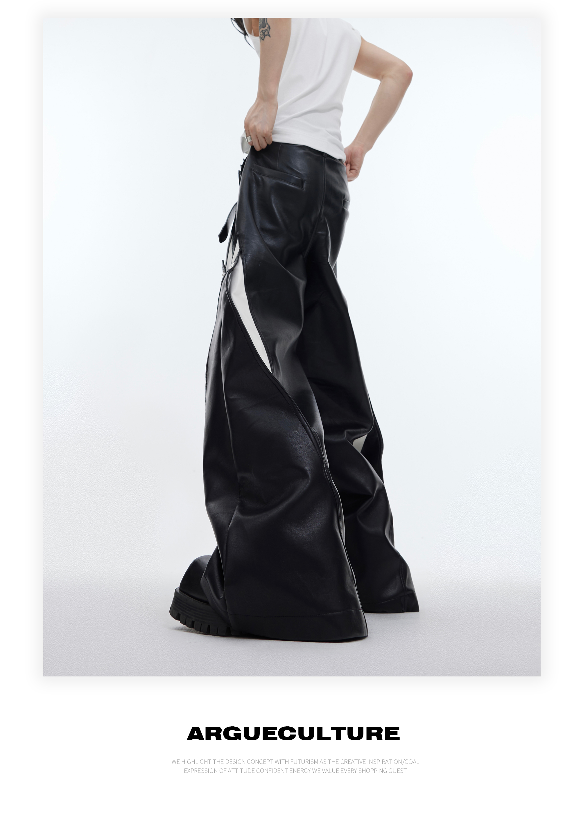 Metal Button Design Wide Leg PU Leather Pants WN4049