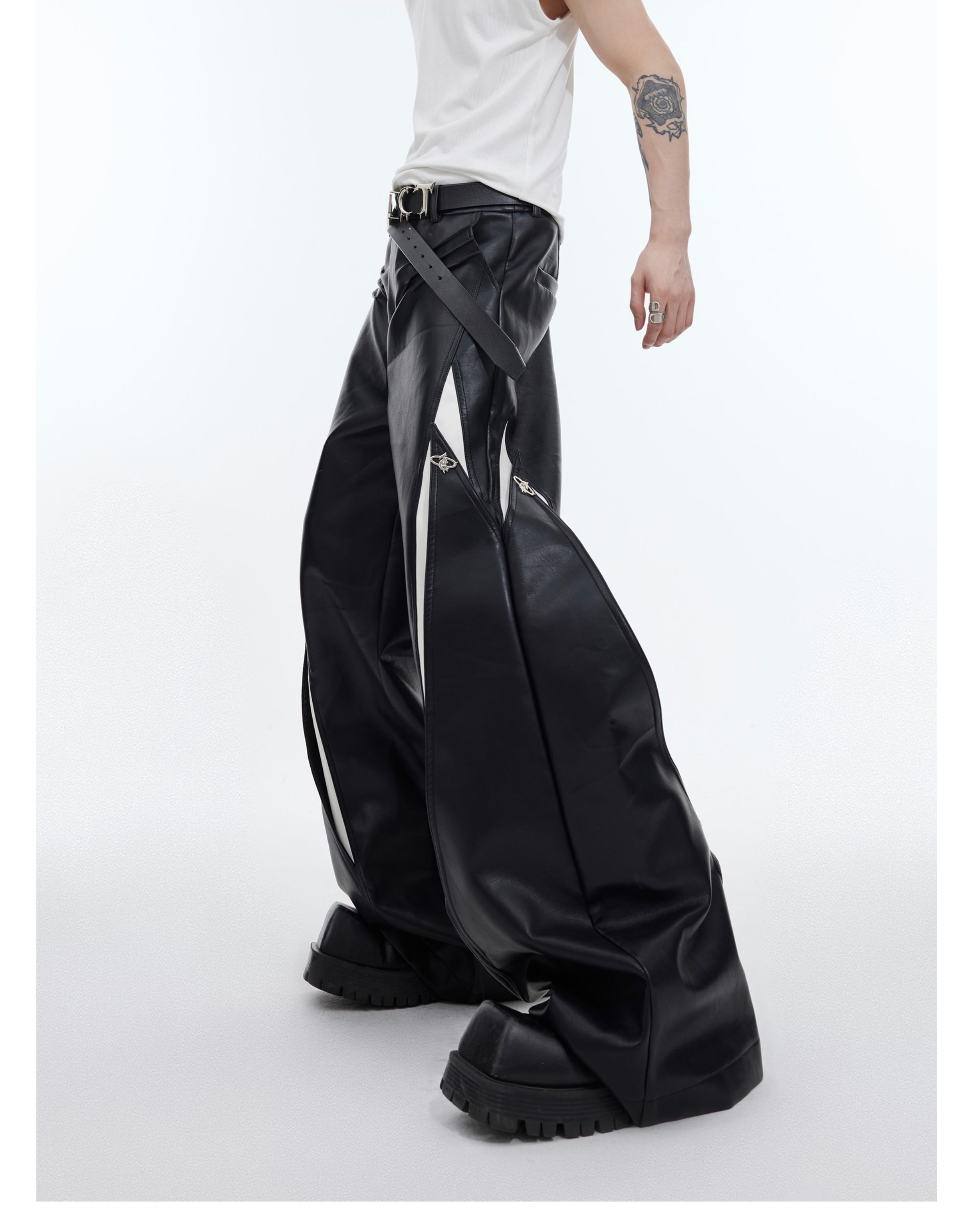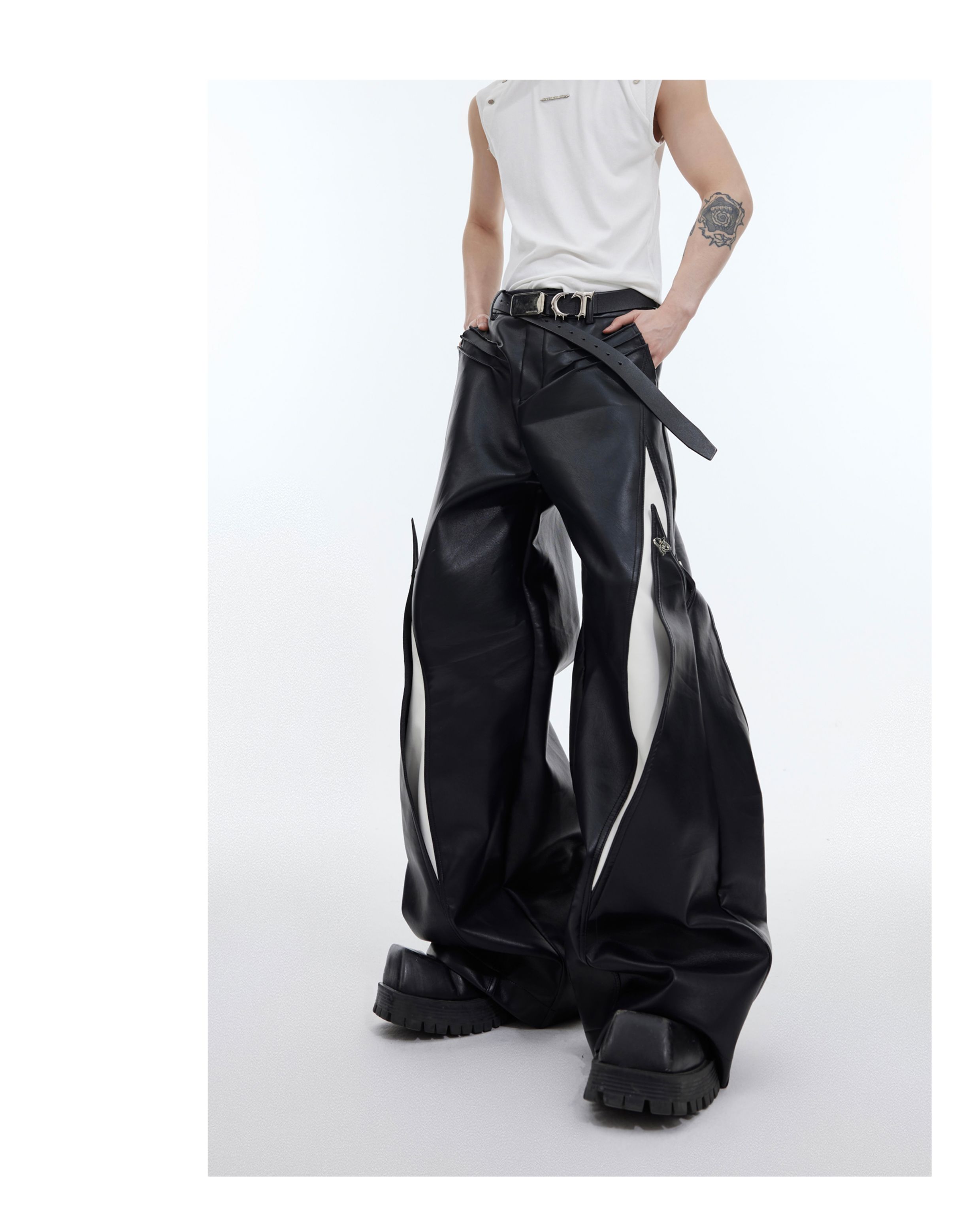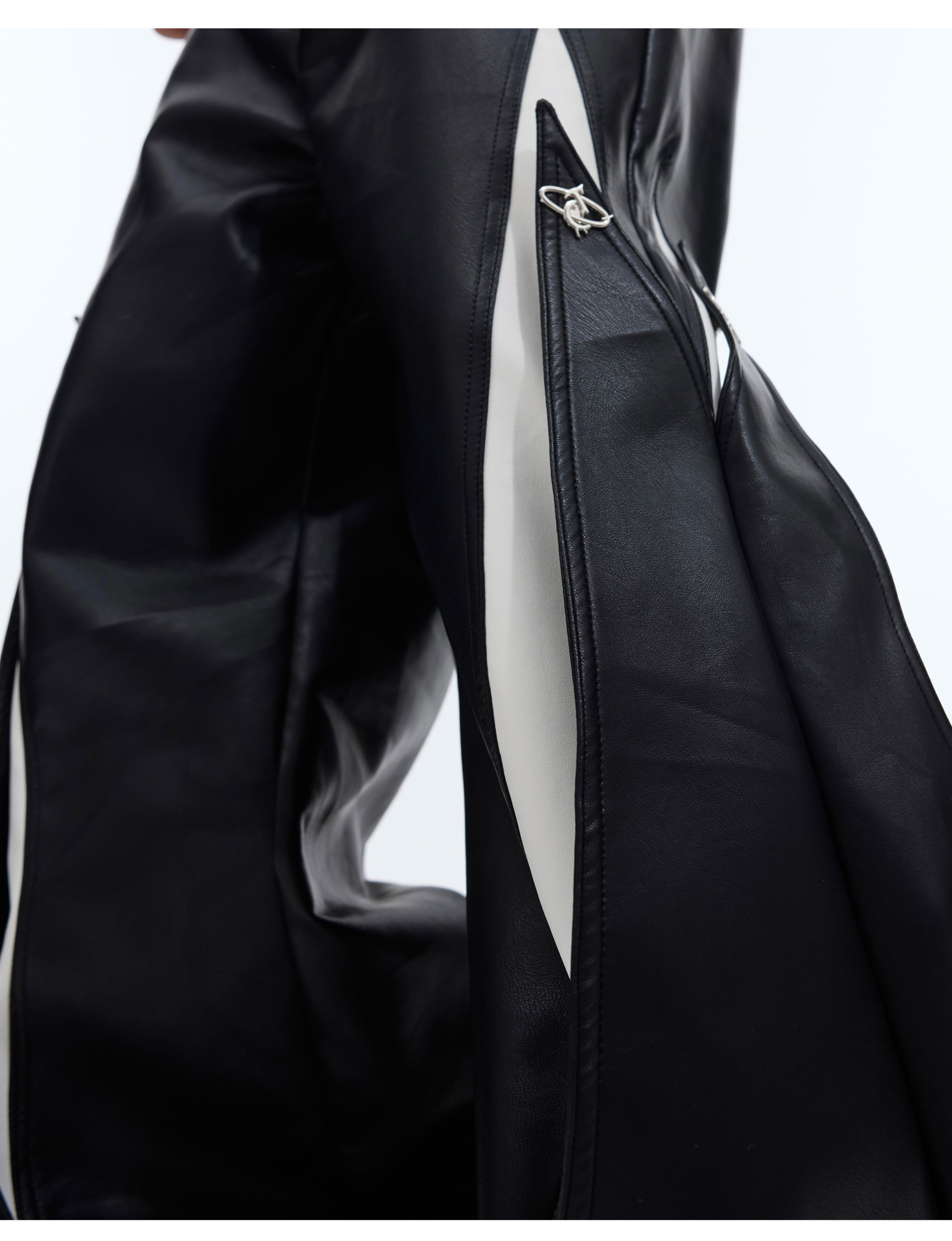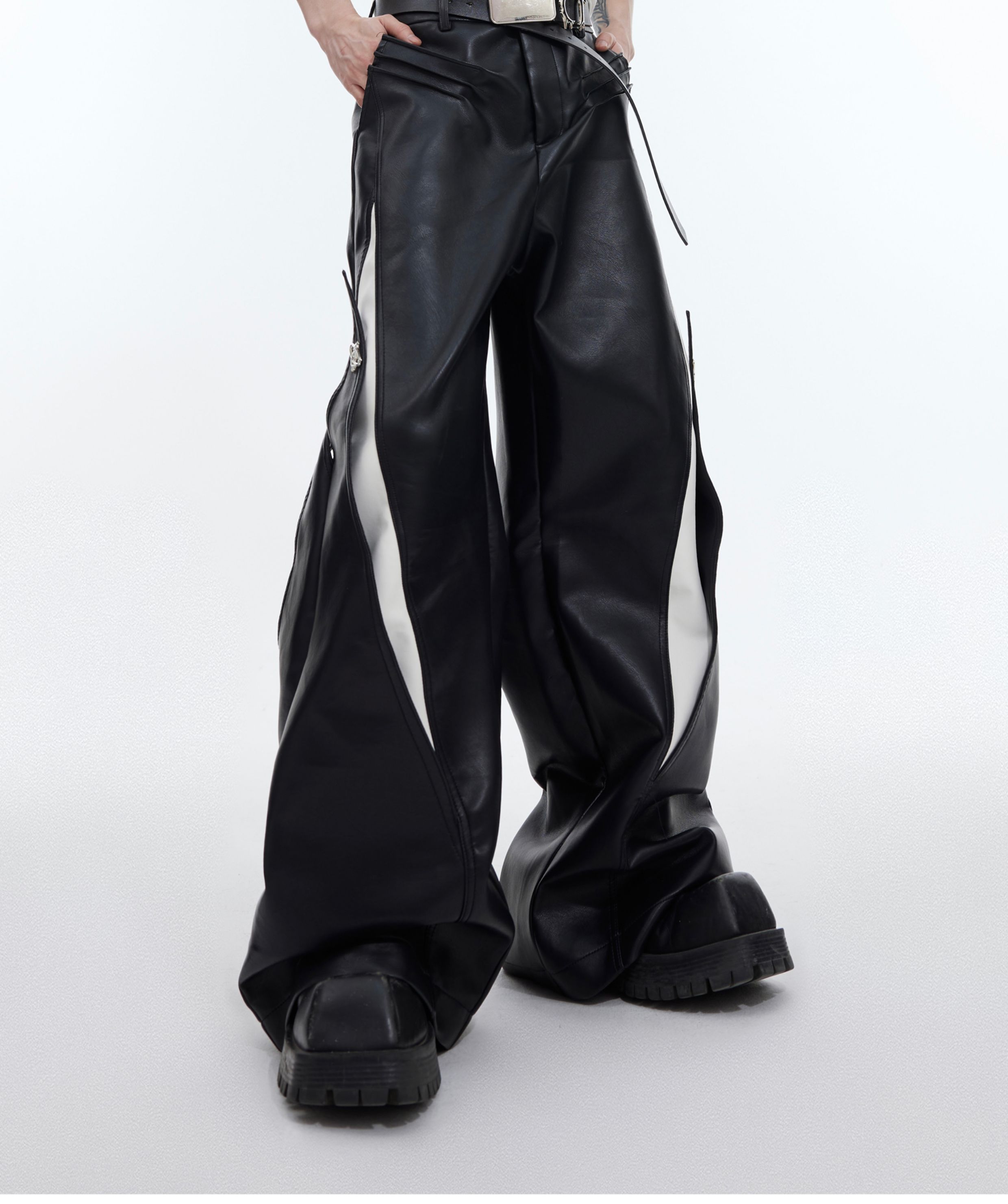 Metal Button Design Wide Leg PU Leather Pants WN4049