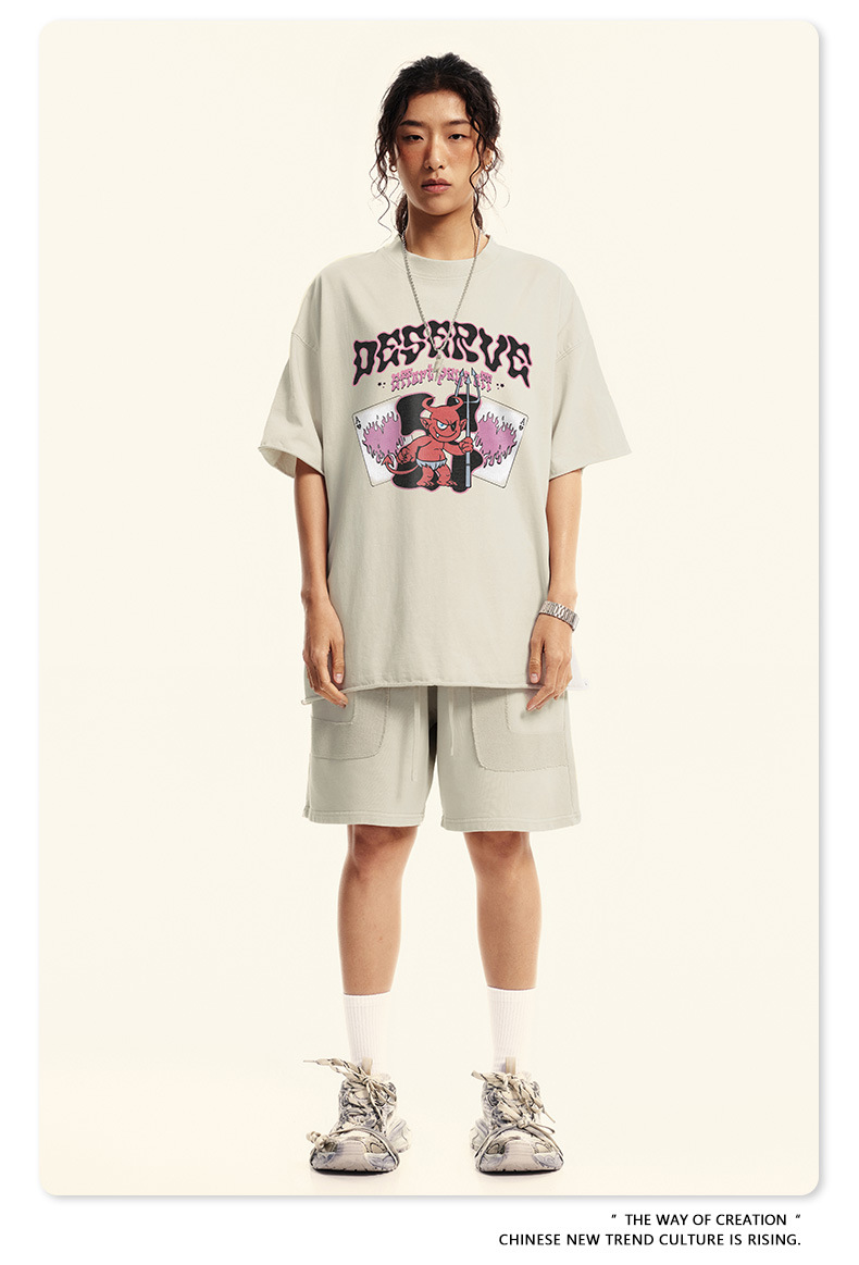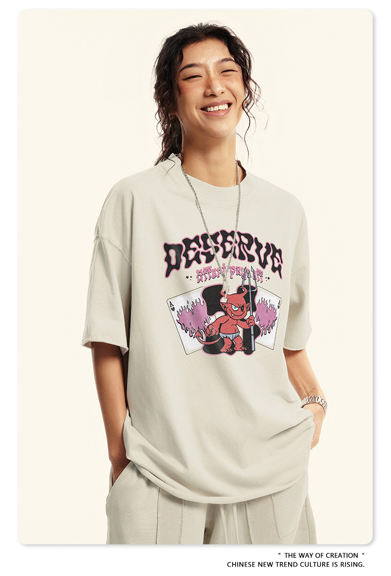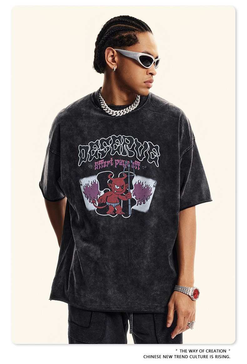 Washed Print Oversize Short-sleeve T-shirt WN6381