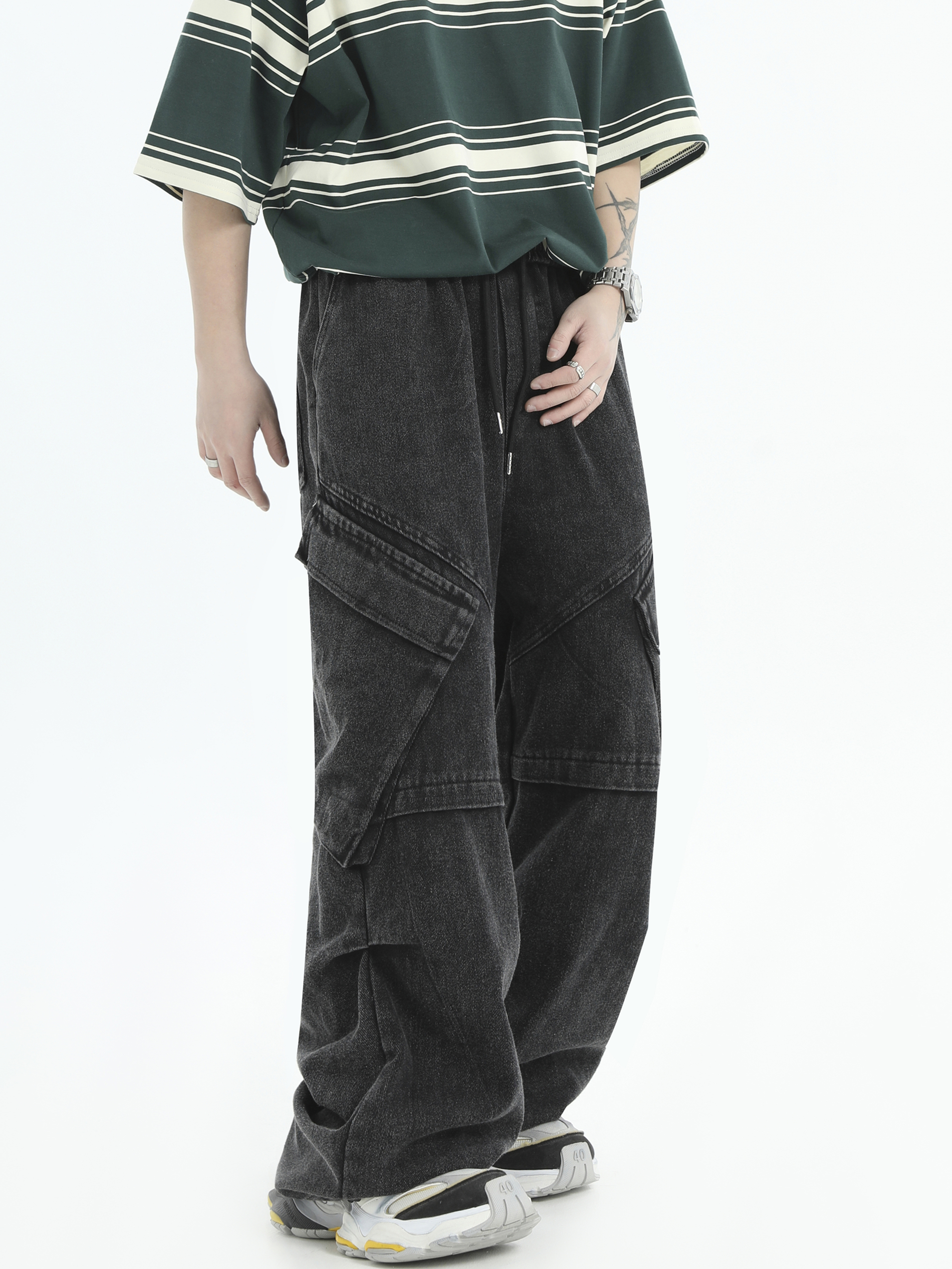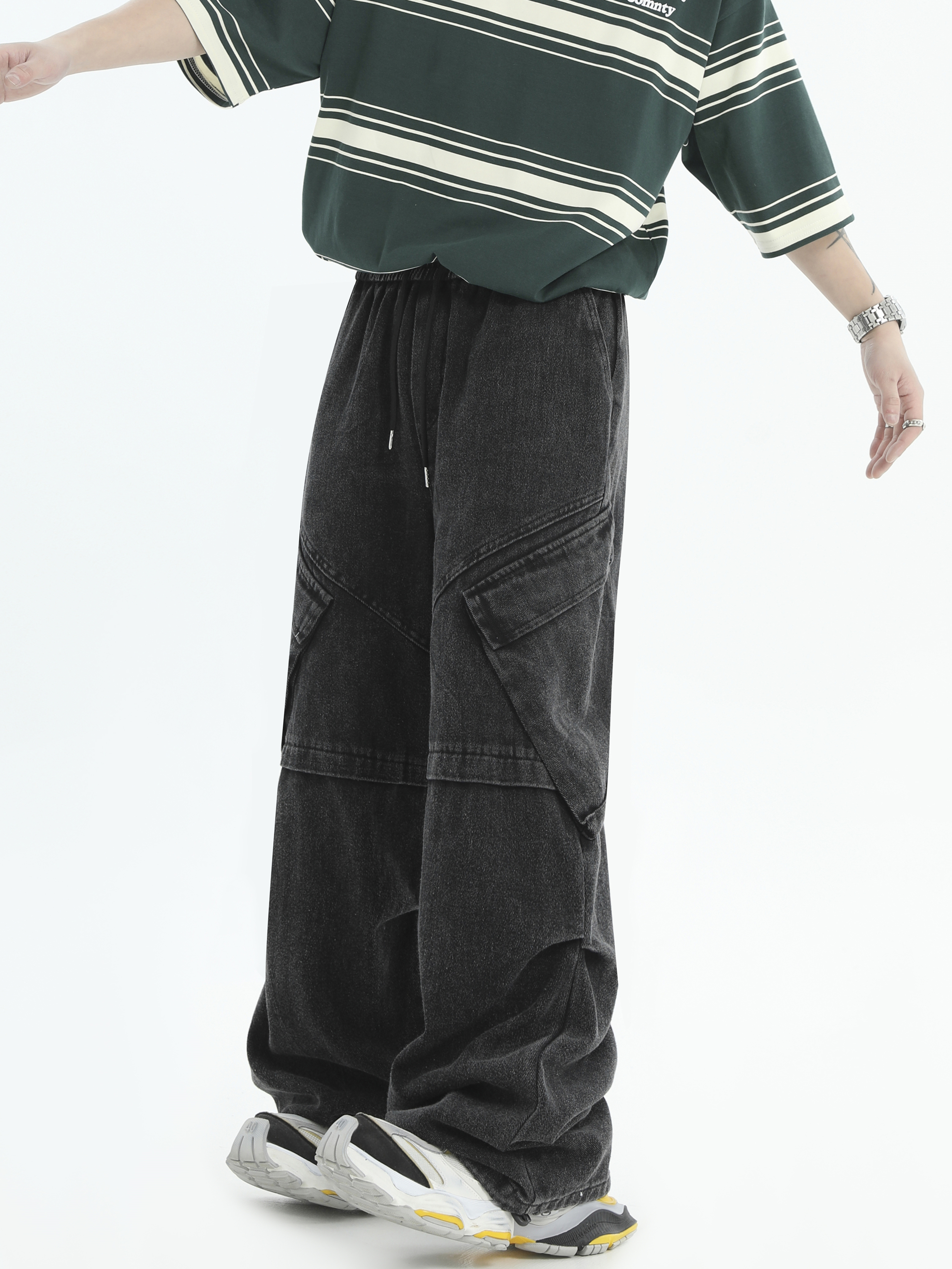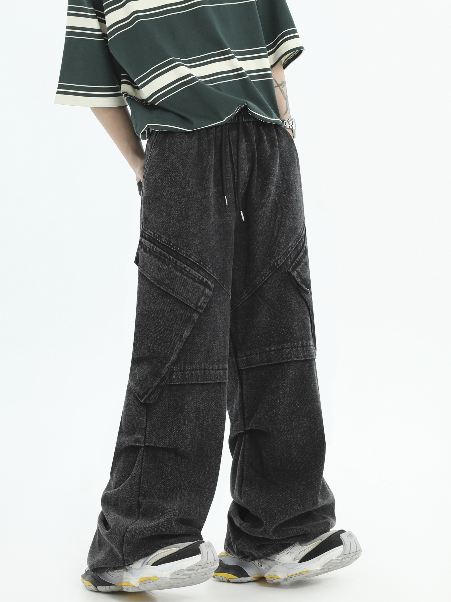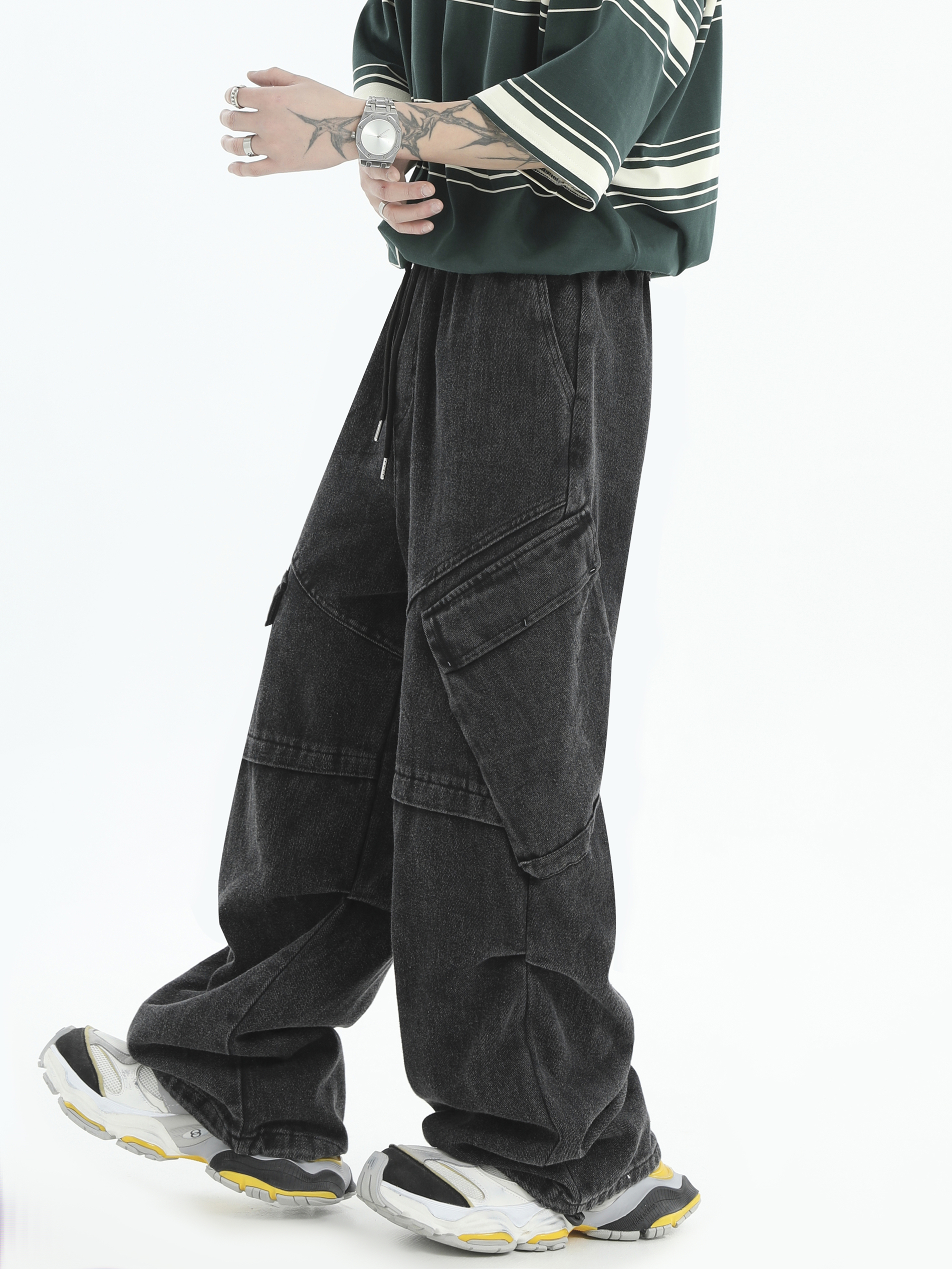 Wide-Leg Straight Cargo Denim Jeans WN7167