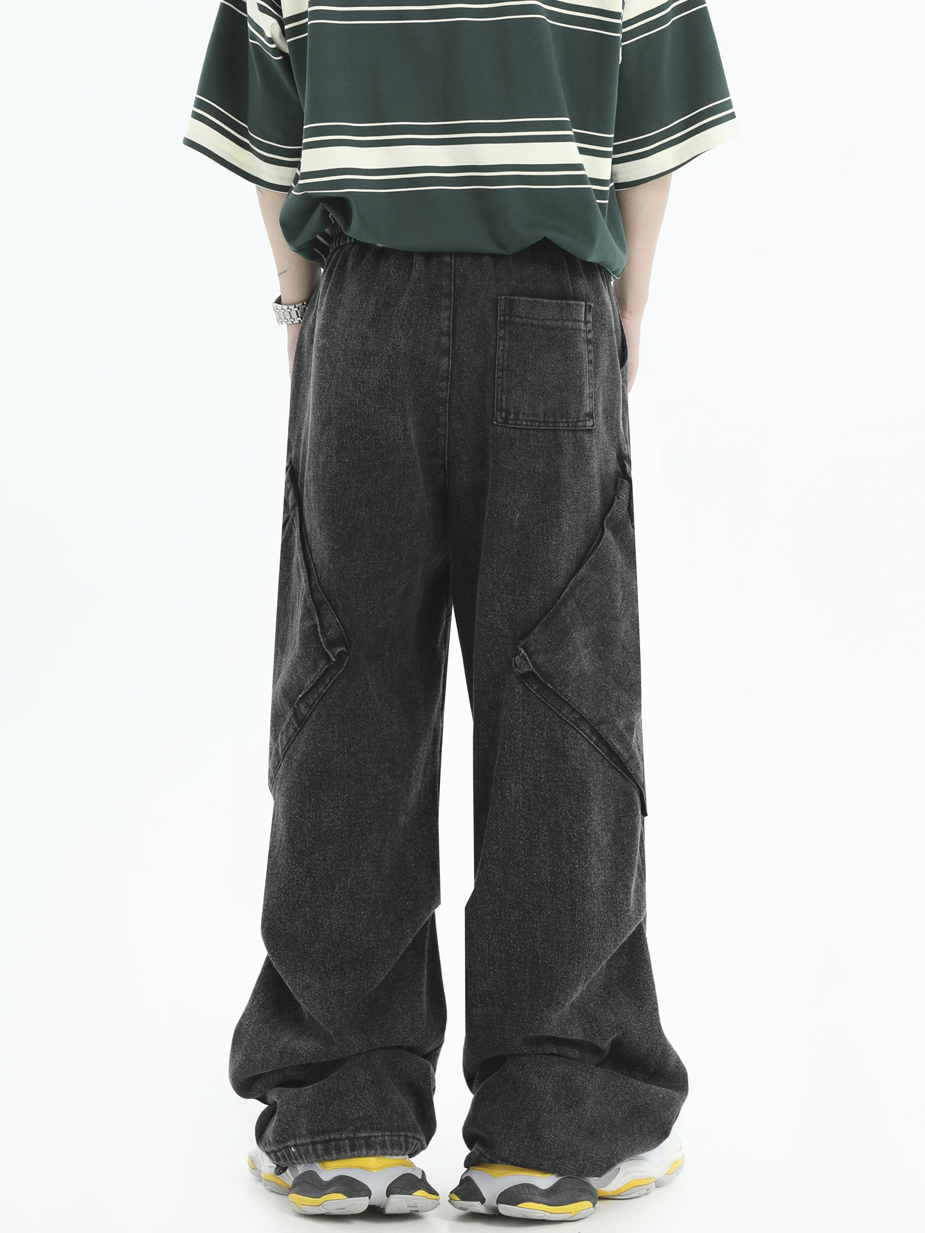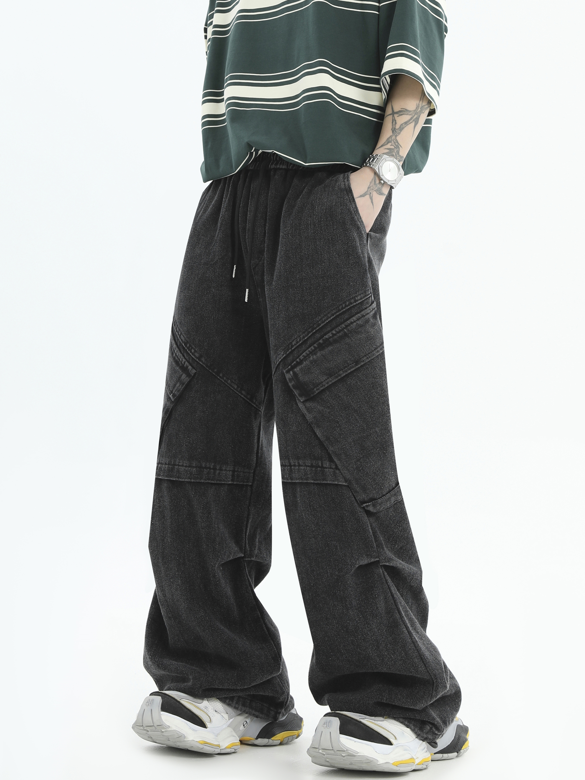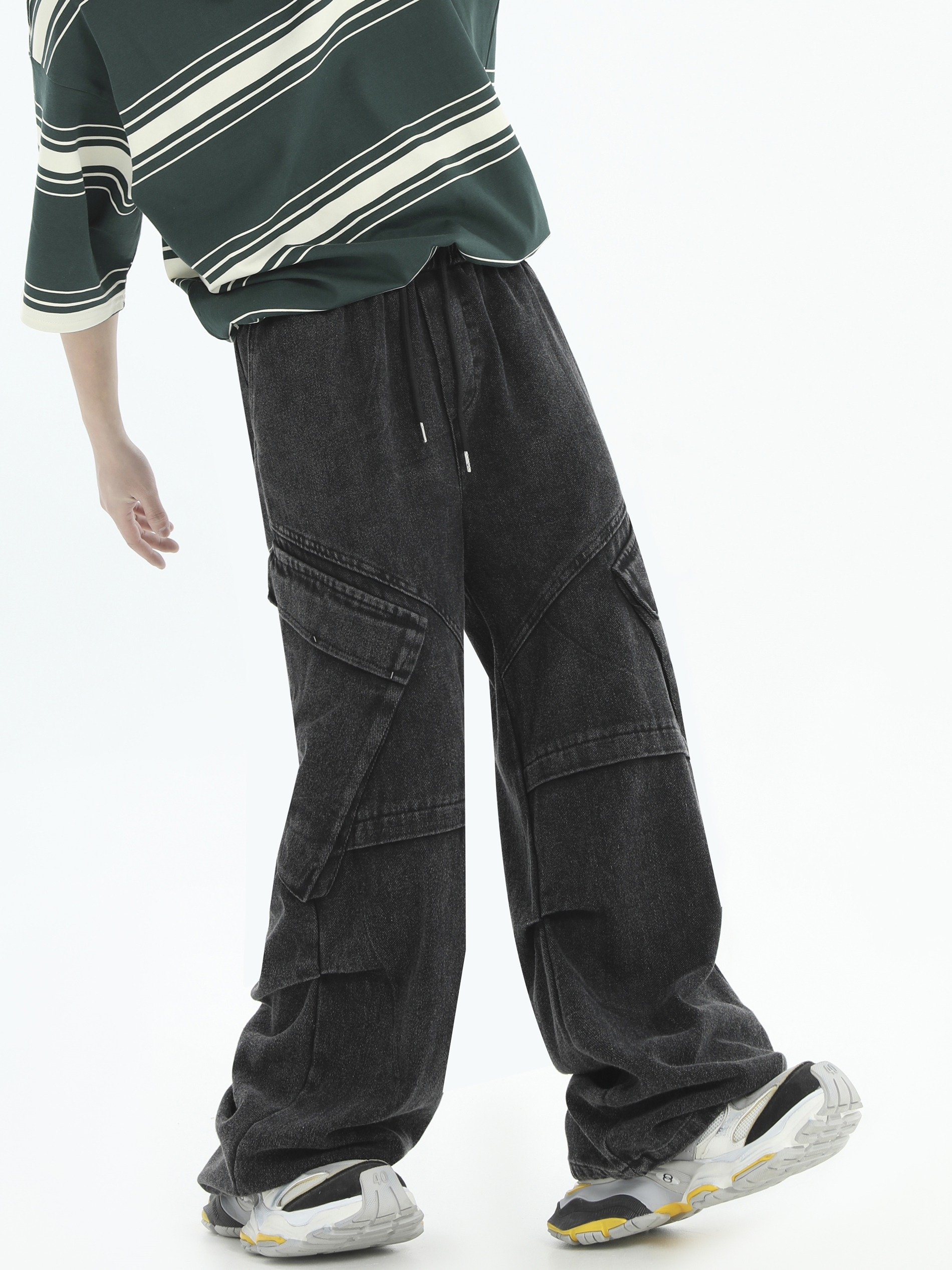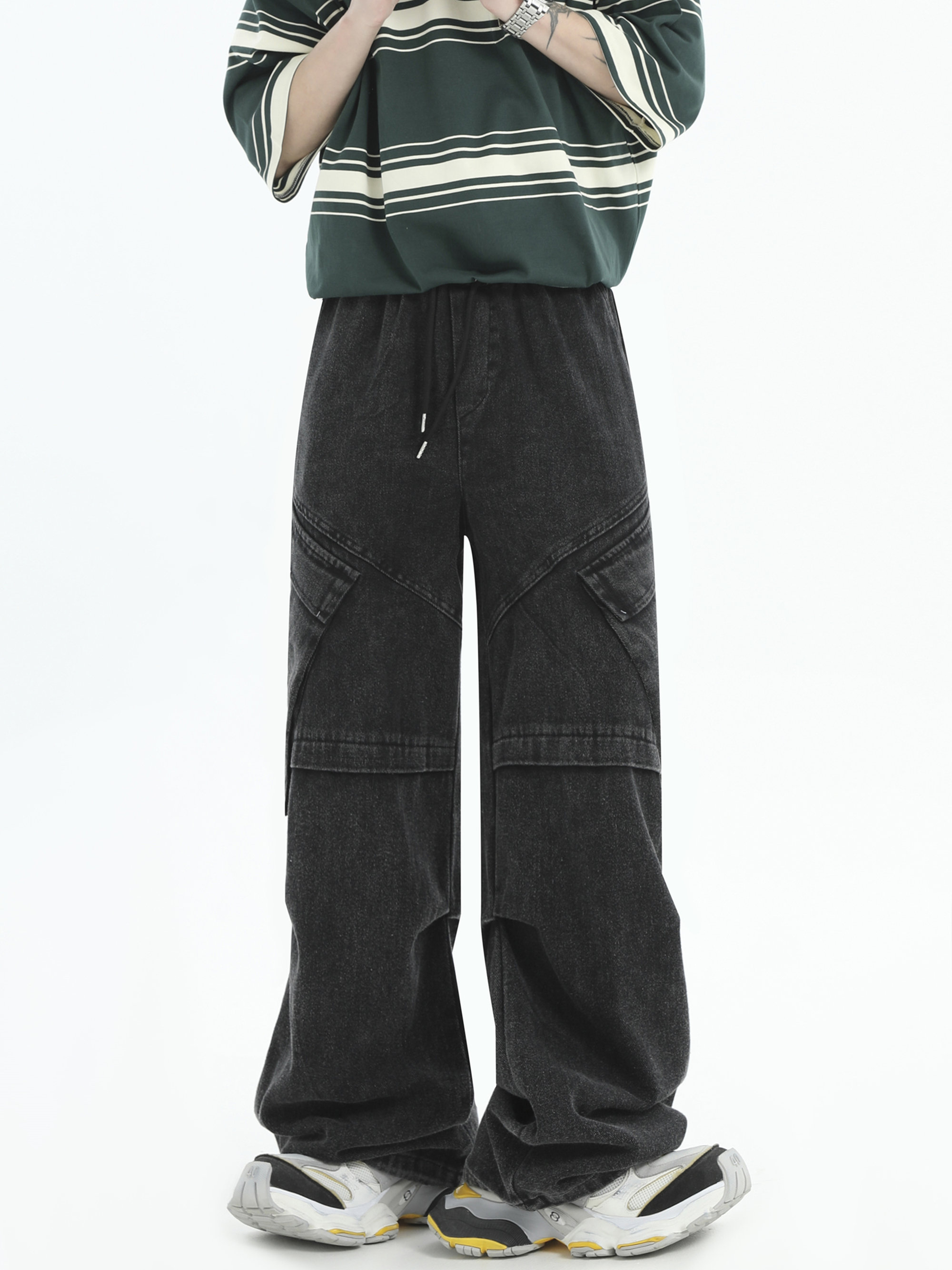 Wide-Leg Straight Cargo Denim Jeans WN7167
