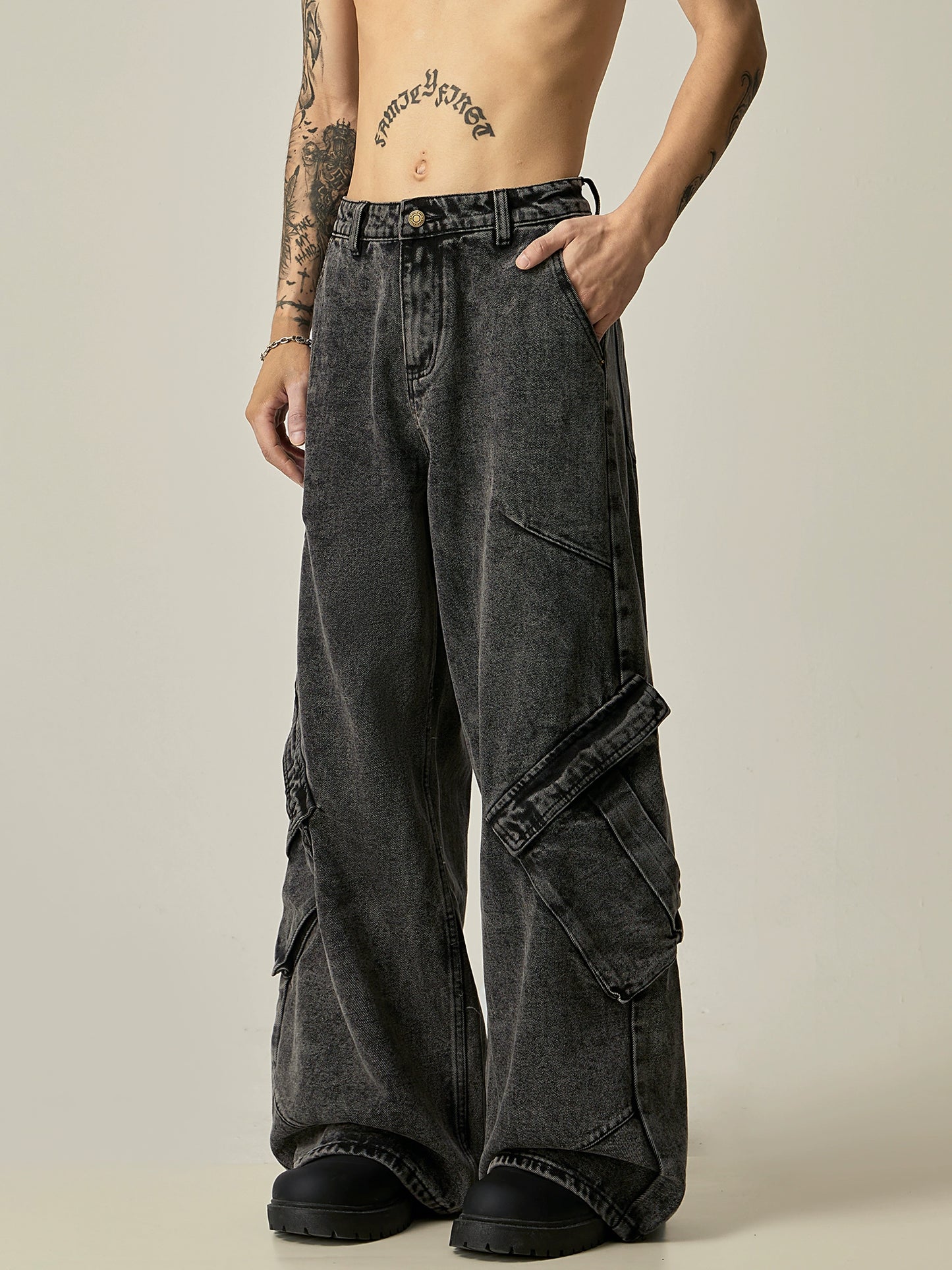 Wide Leg Cargo Denim Jeans WN8979