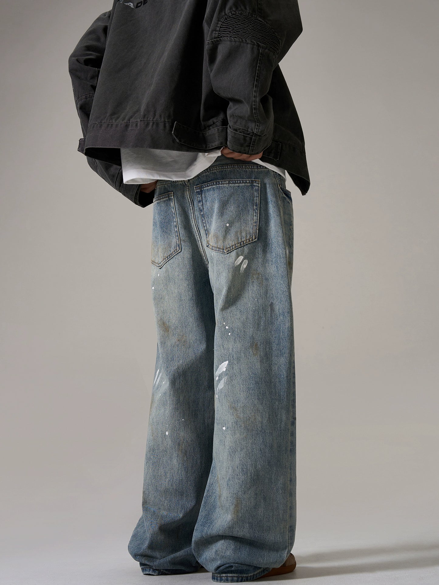 Splash Ink Damage Straight Leg Denim Jeans WN8989