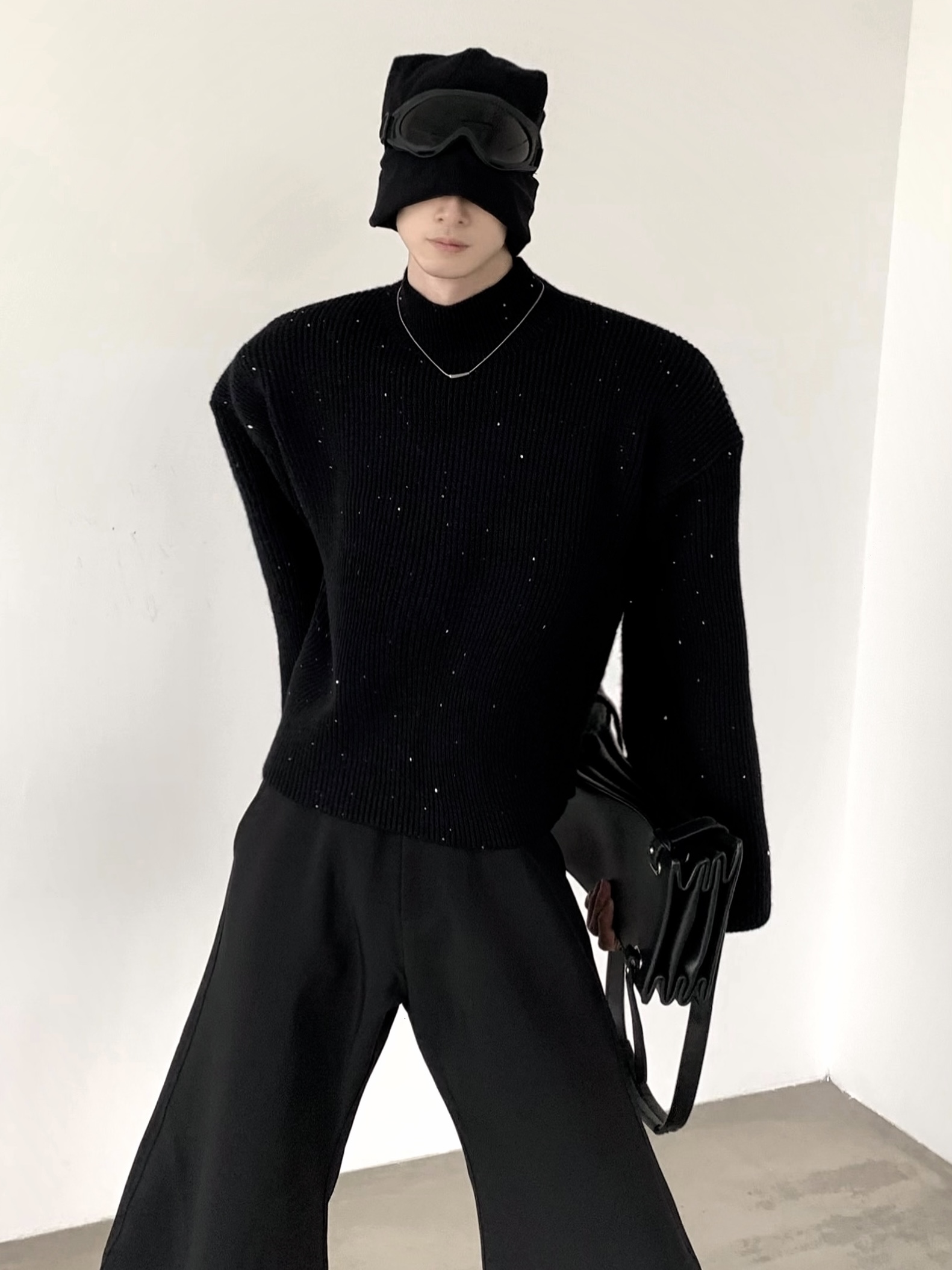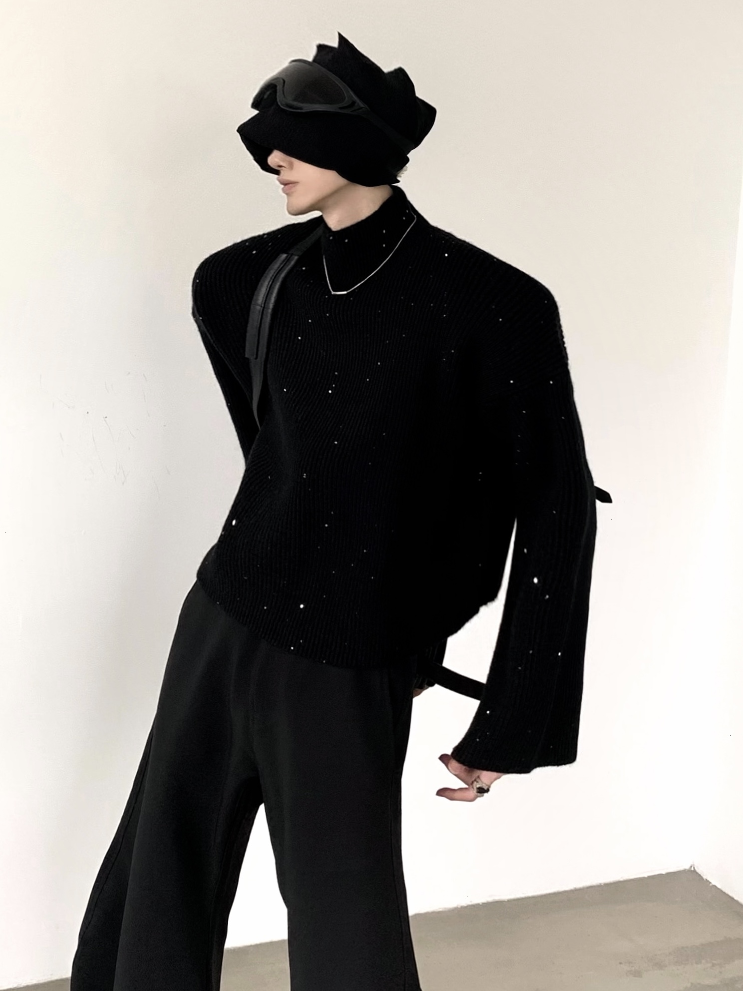 Sequin Short High Neck Knit Sweater WN9198