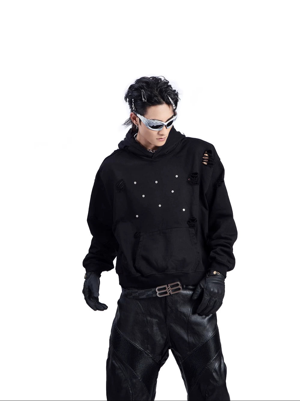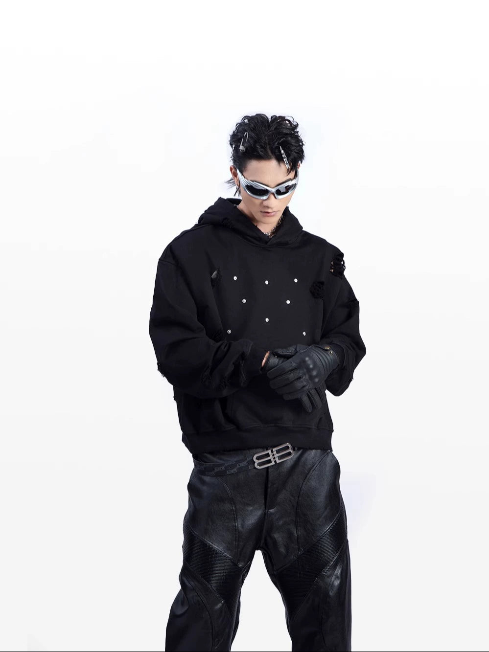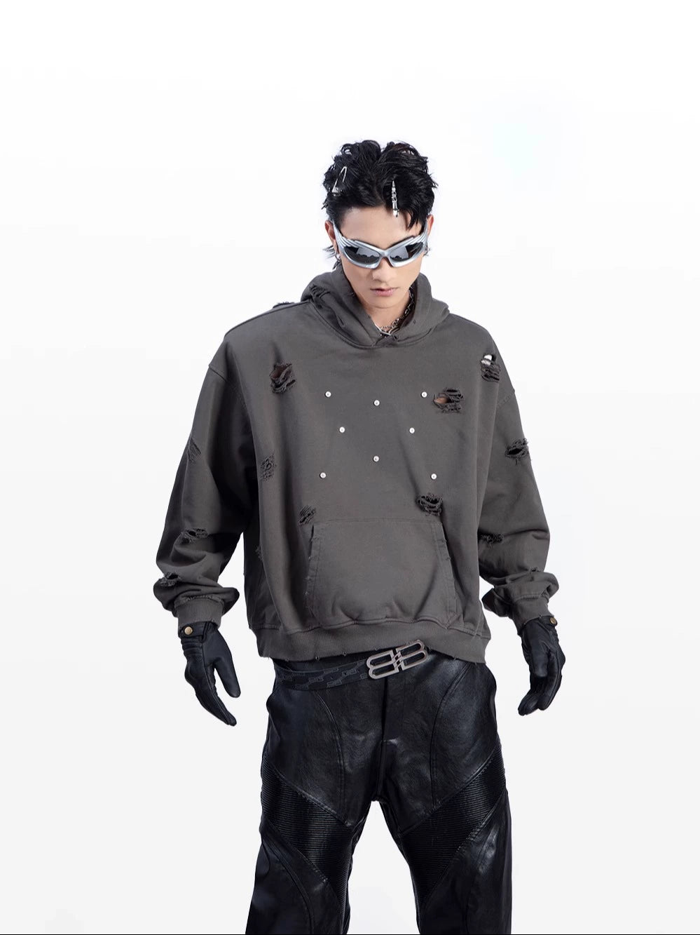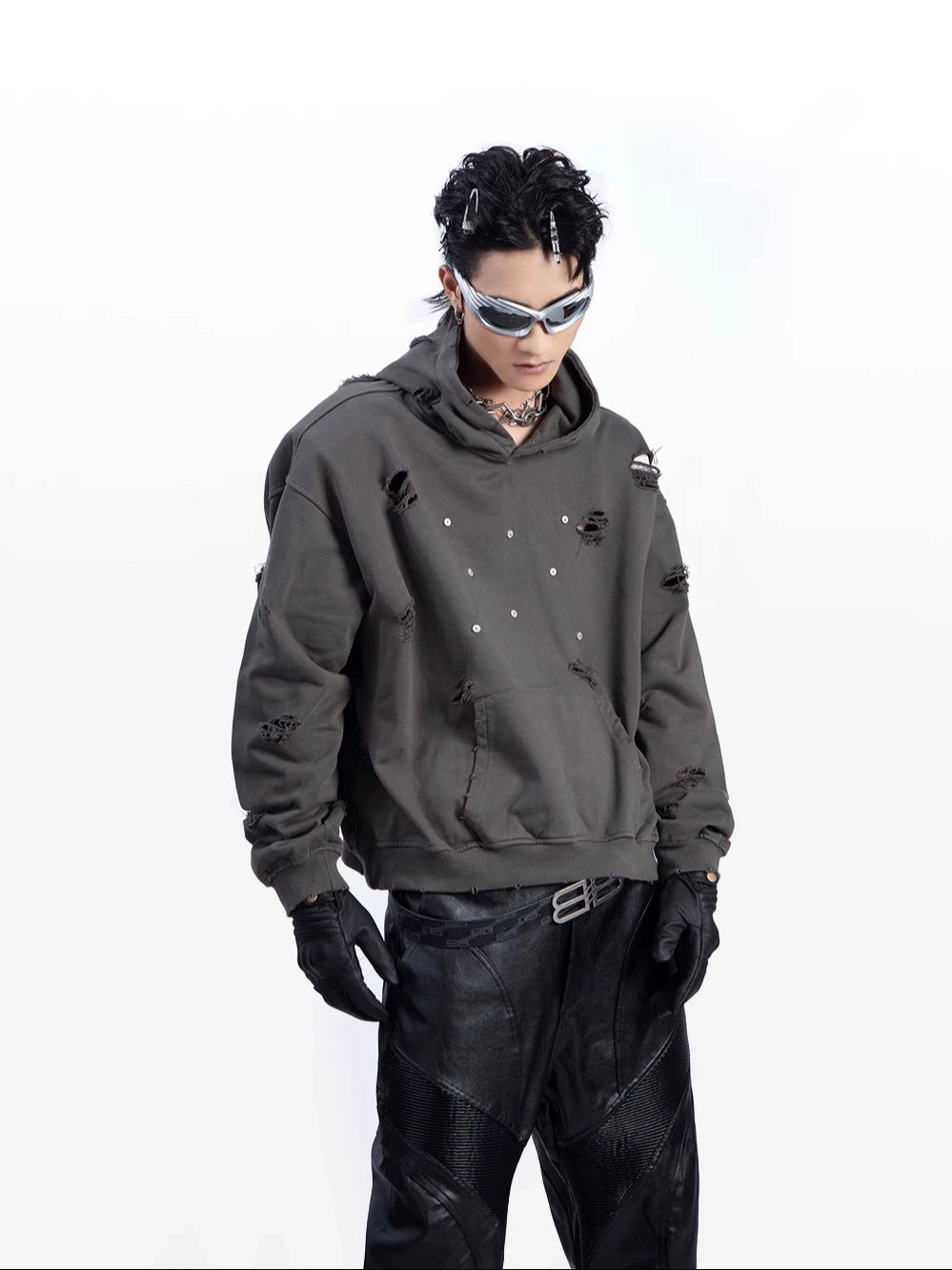 Washed Damage Pullover Hoodie WN9219