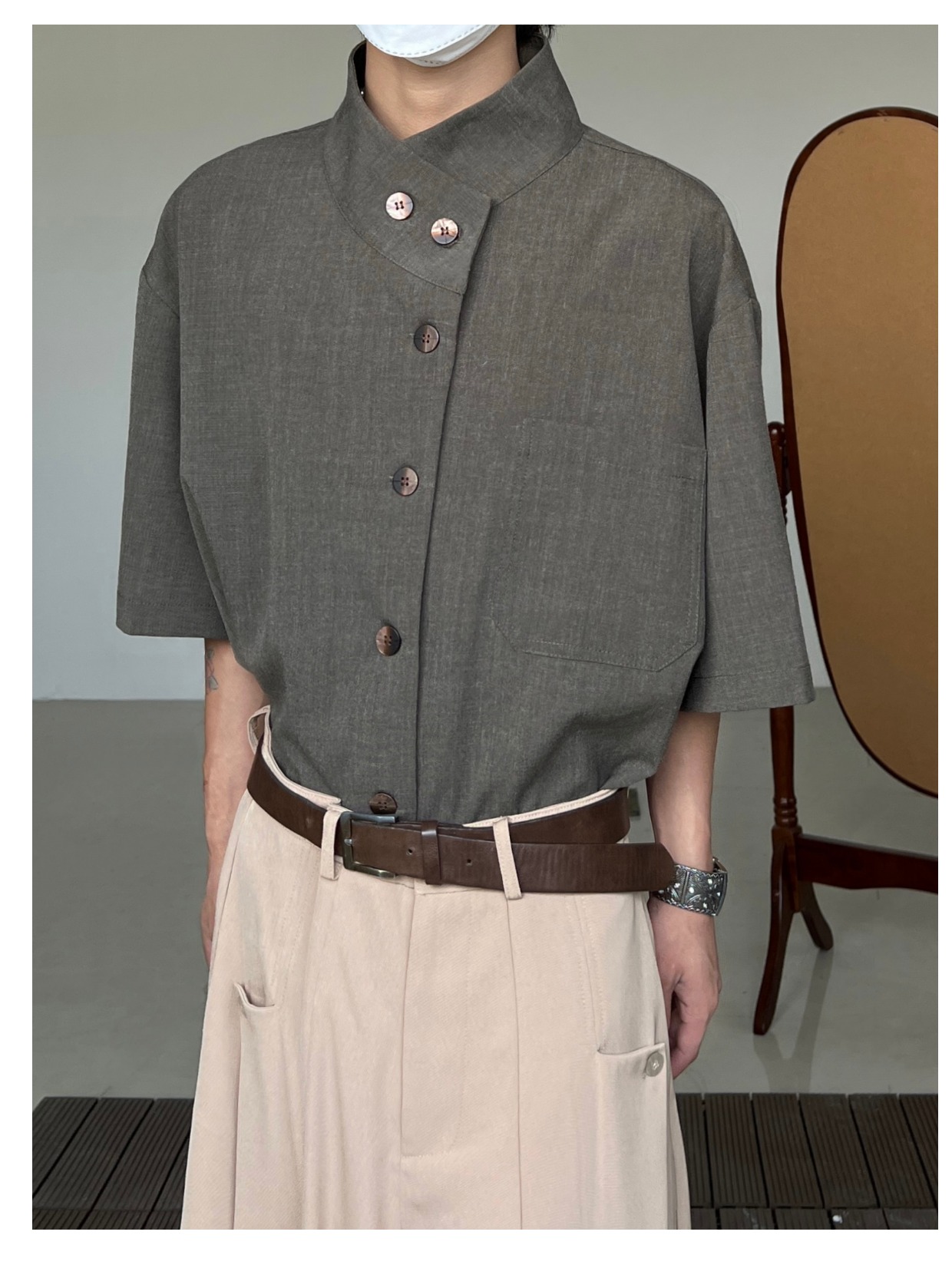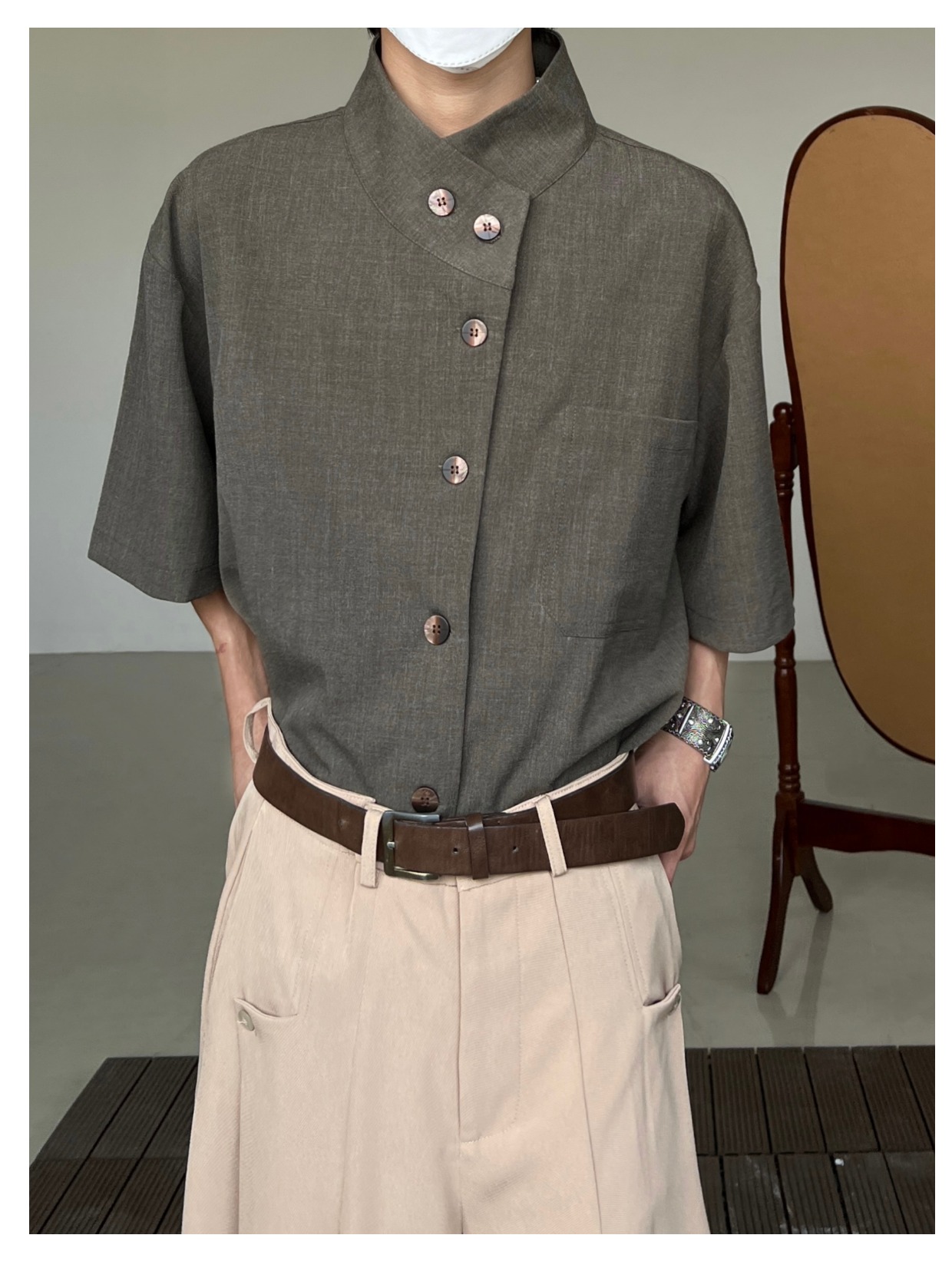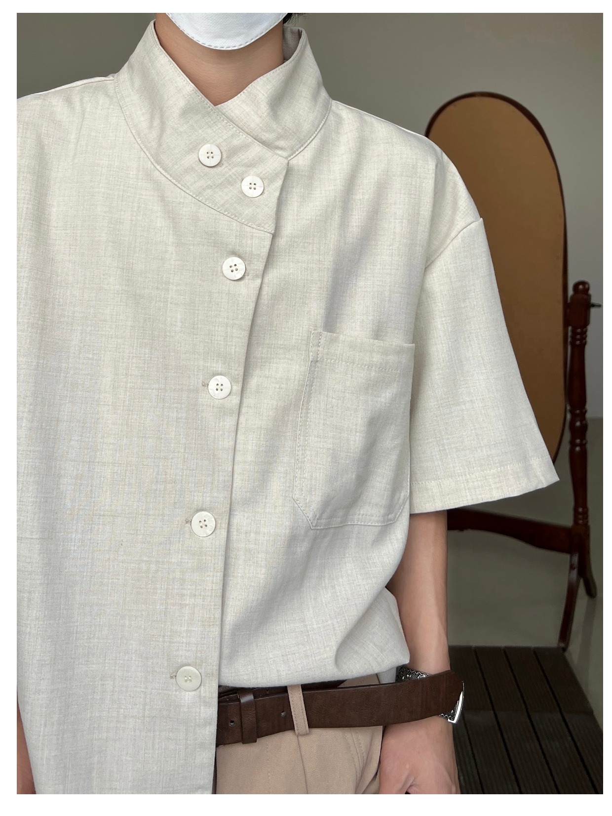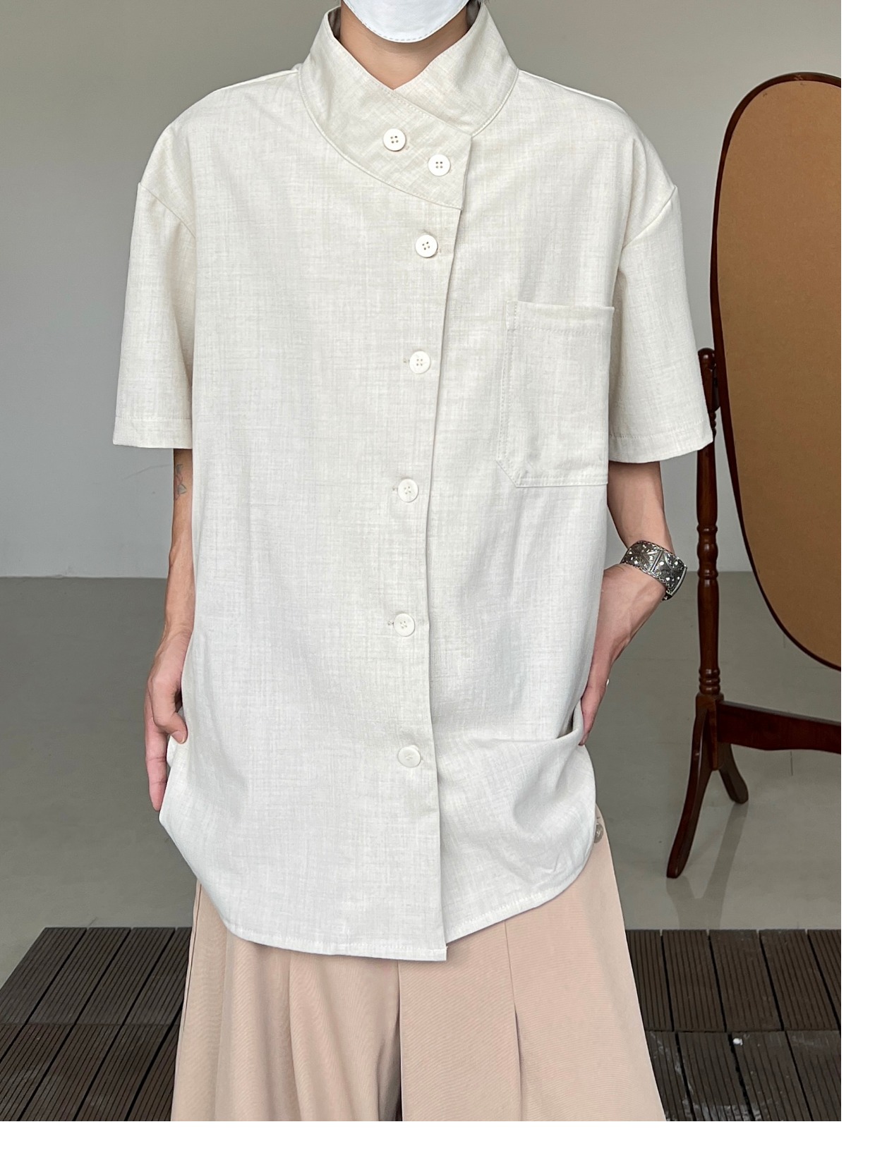 Minimalist Stand Neck Short Sleeve Shirt WN19972