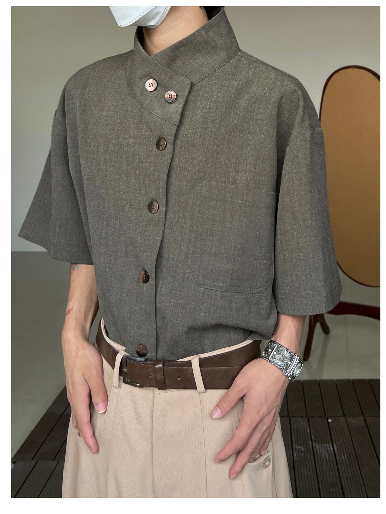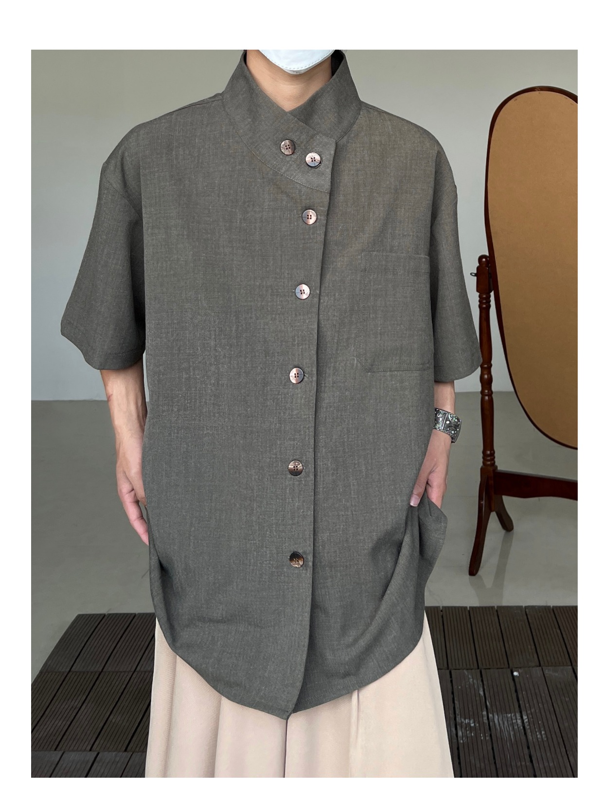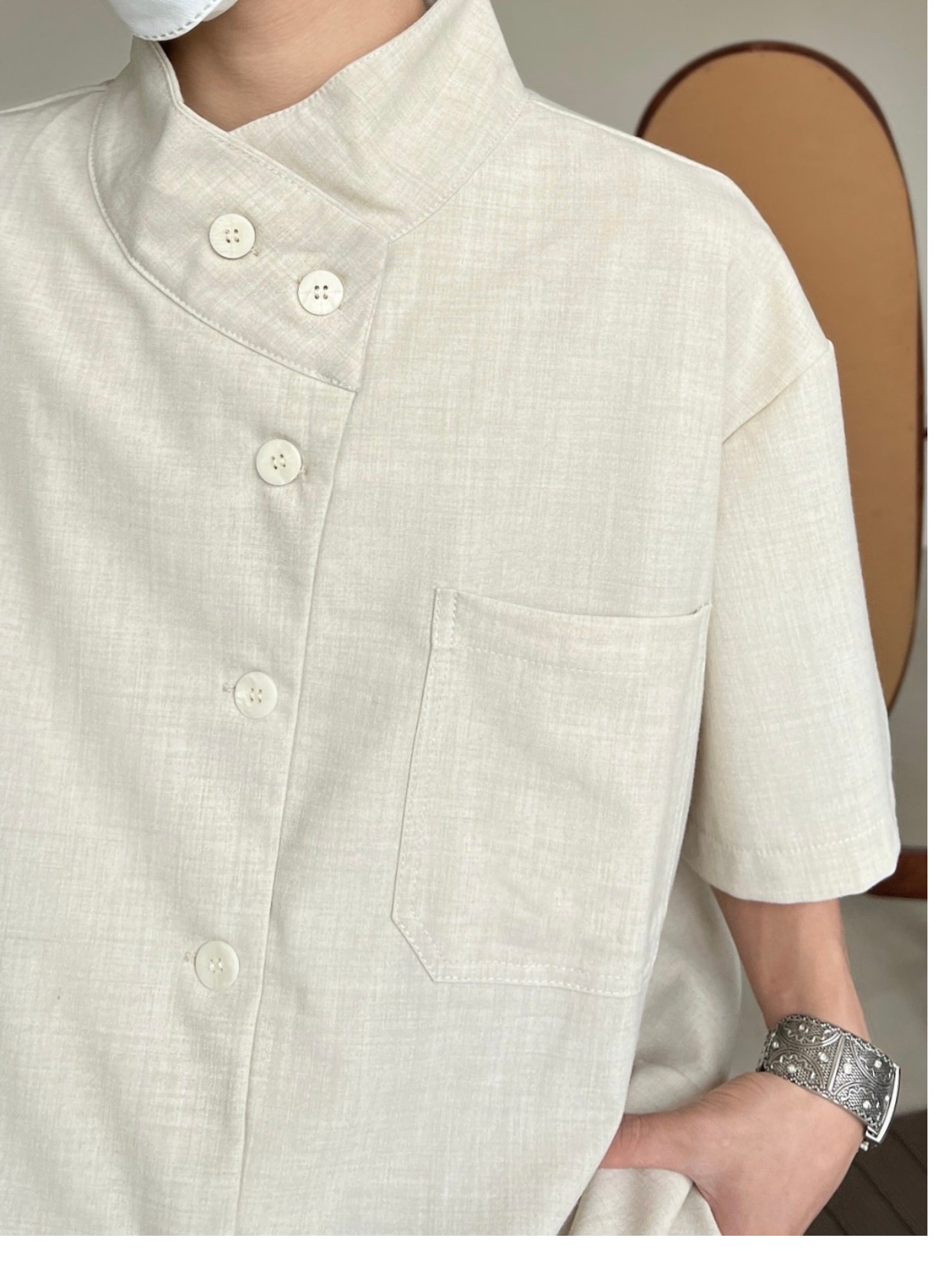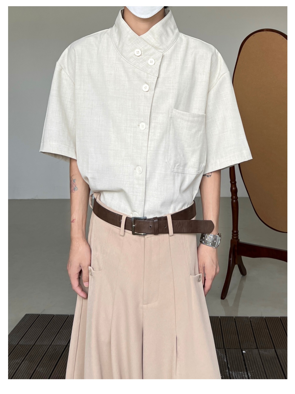 Minimalist Stand Neck Short Sleeve Shirt WN19972
