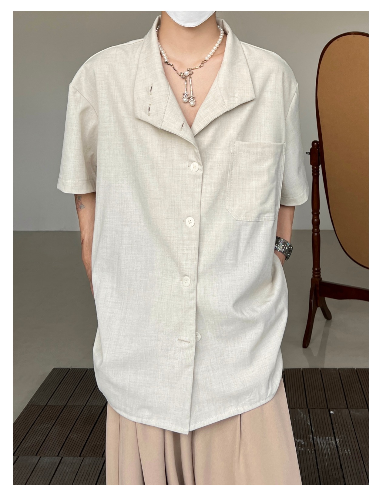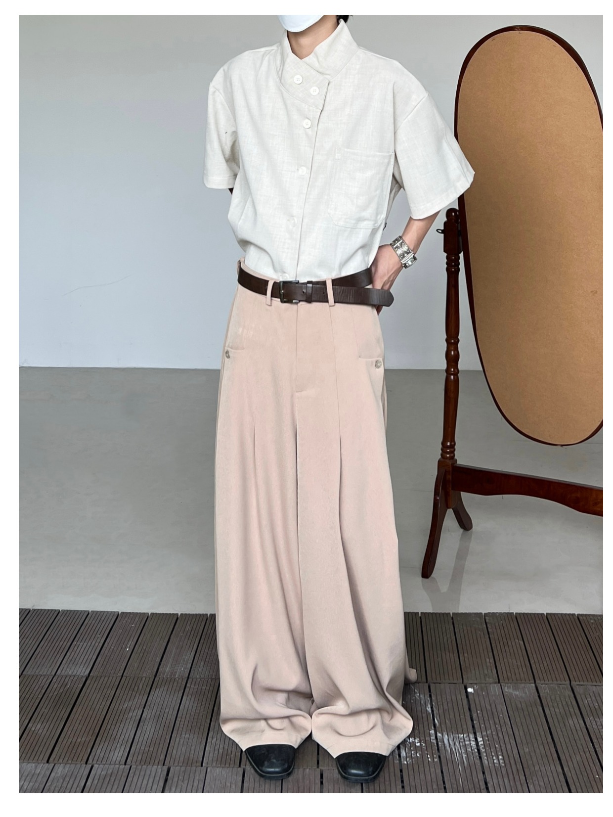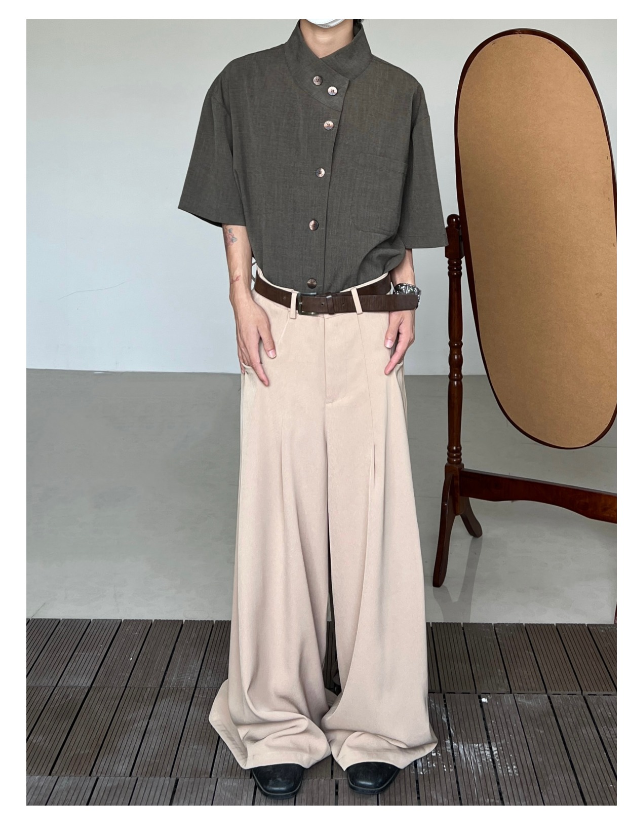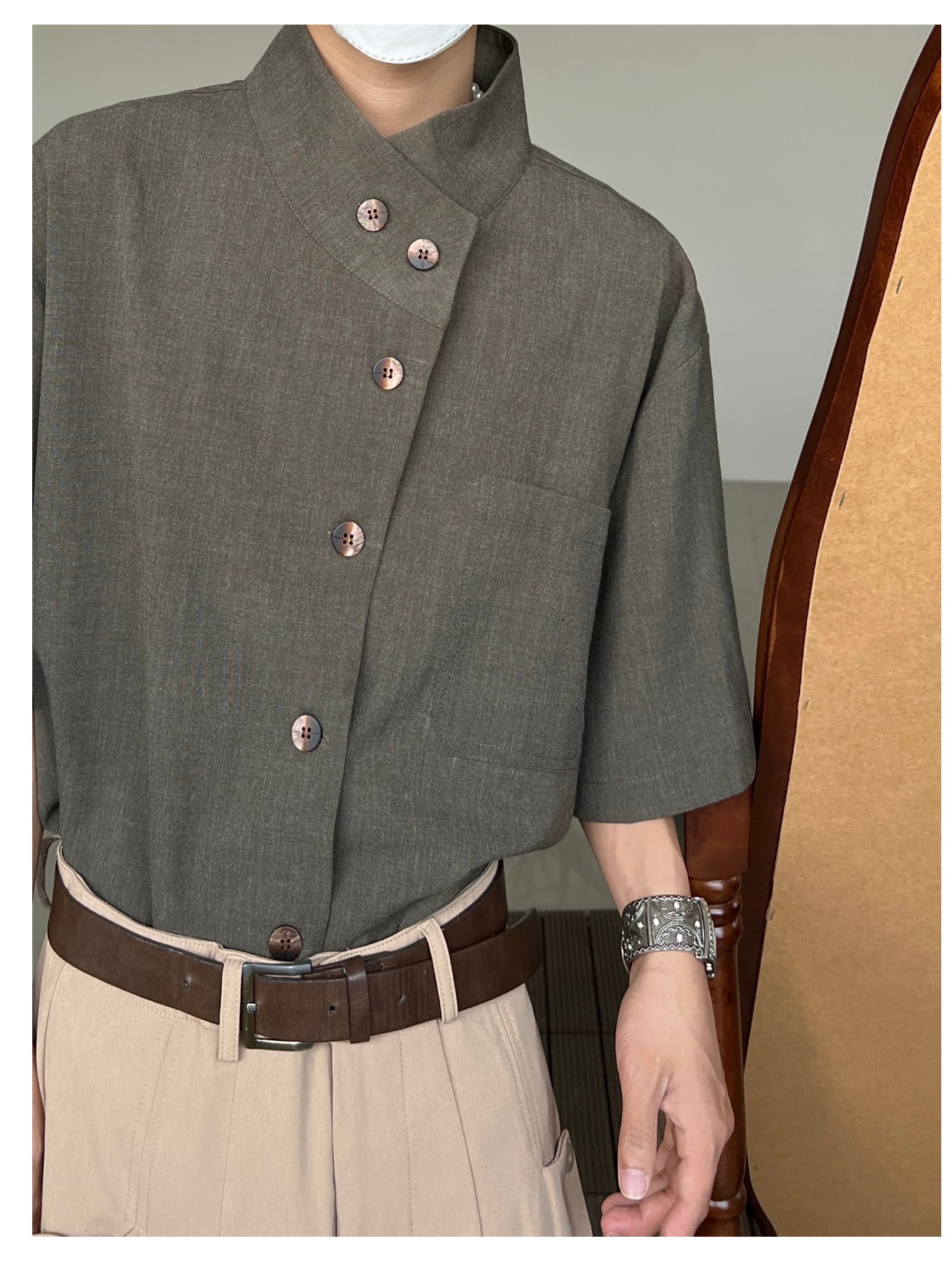 Minimalist Stand Neck Short Sleeve Shirt WN19972