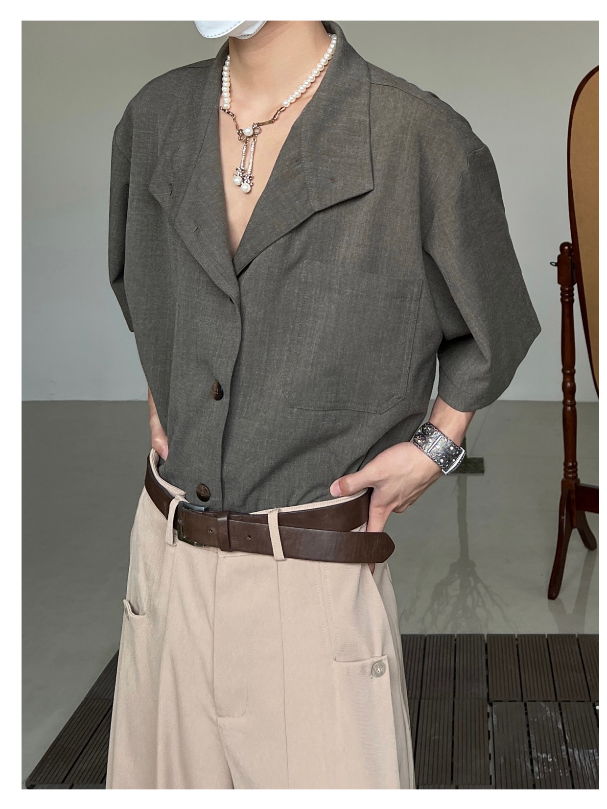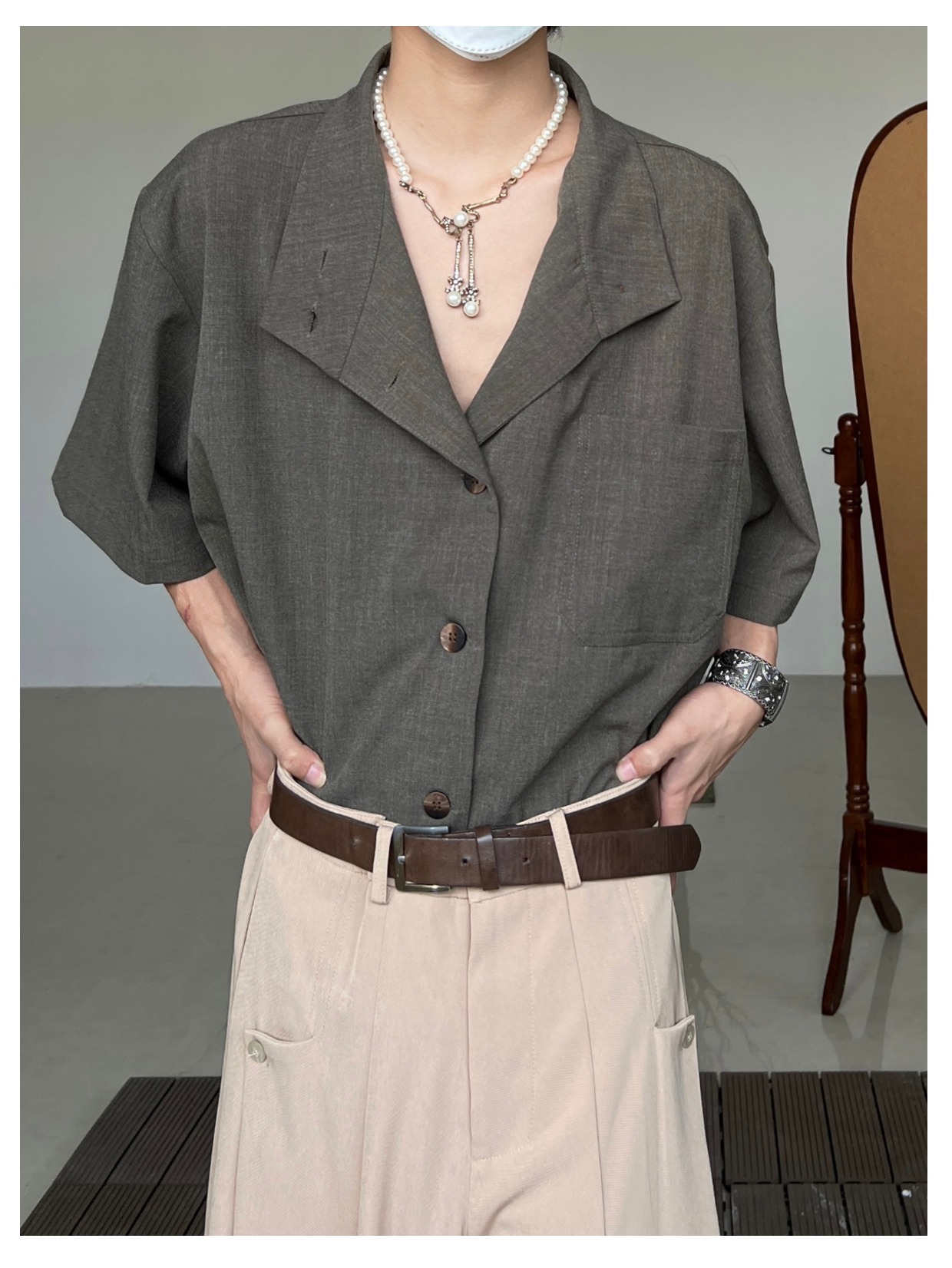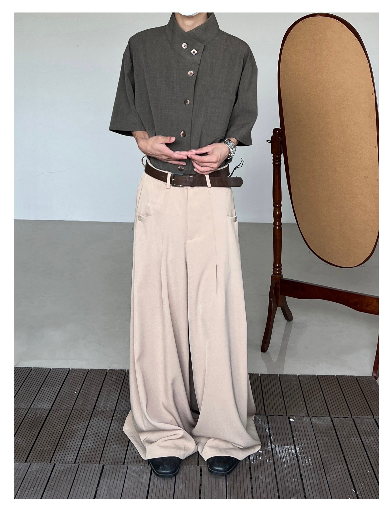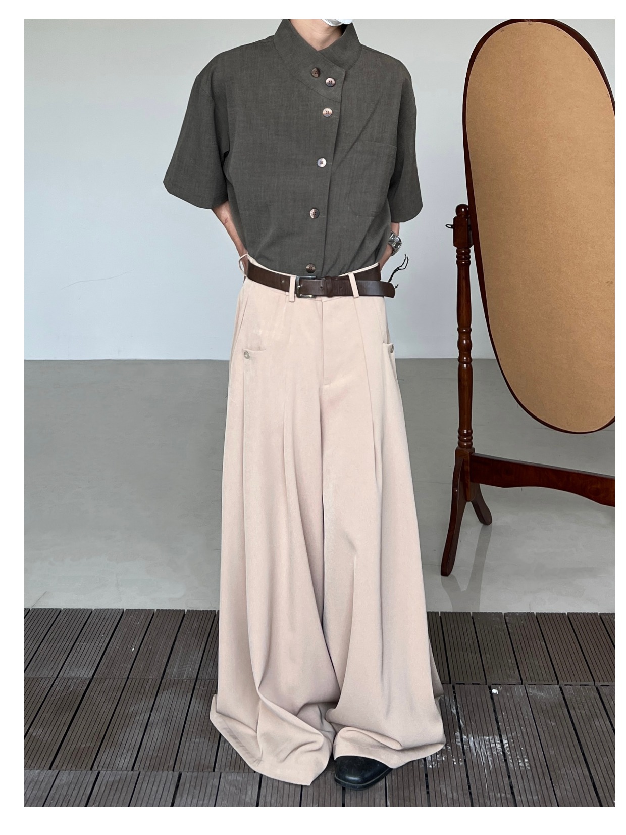 Minimalist Stand Neck Short Sleeve Shirt WN19972