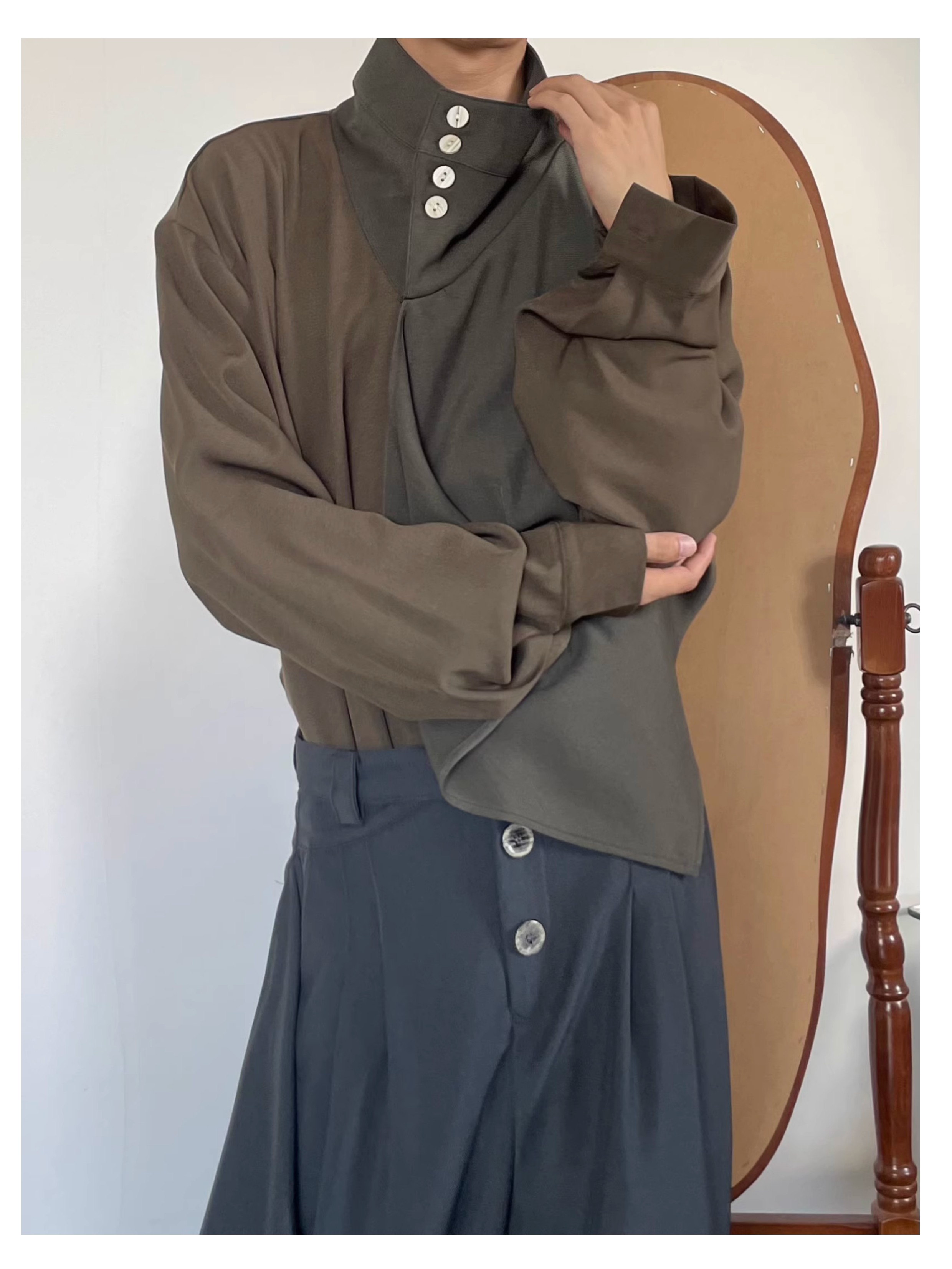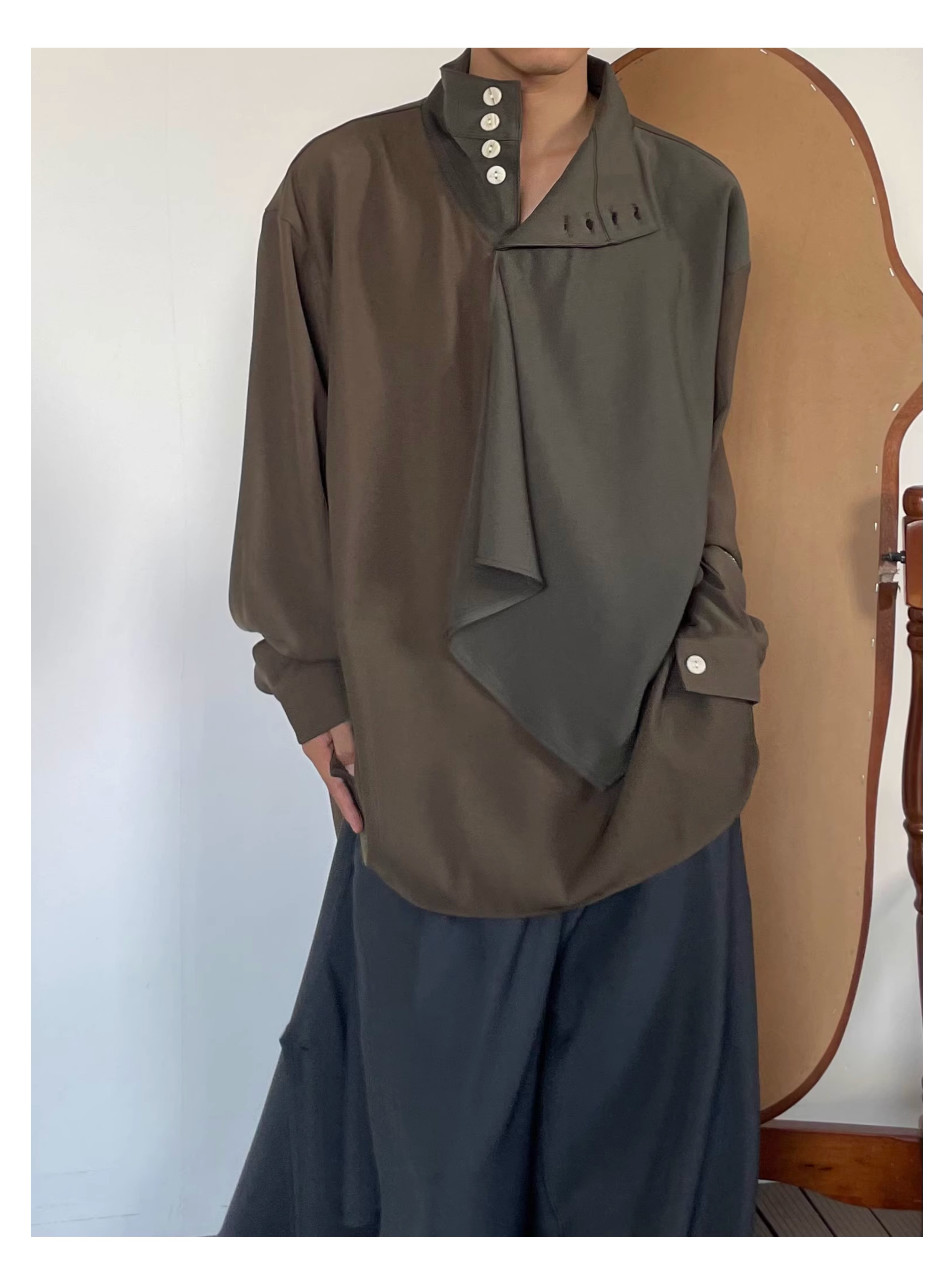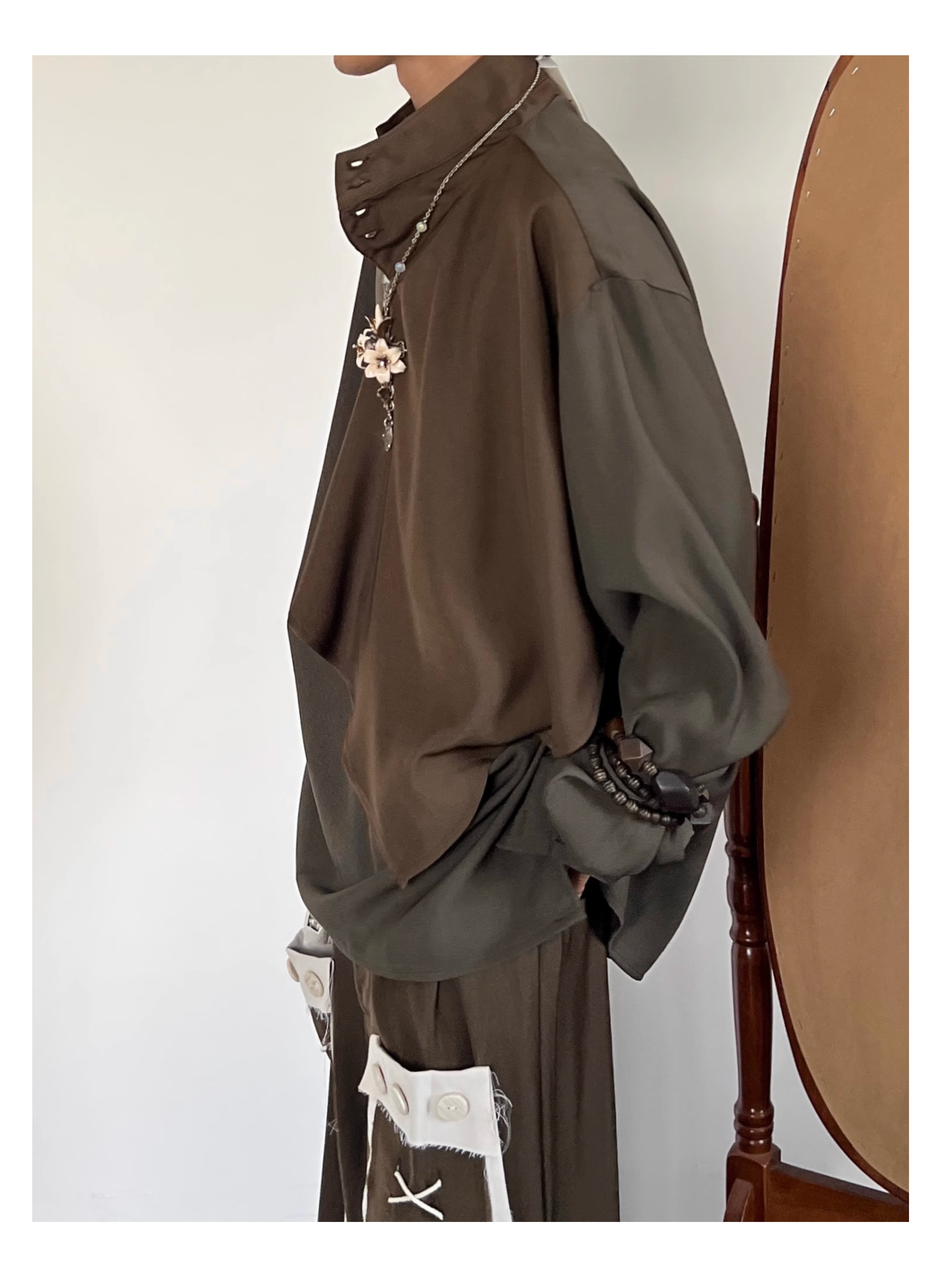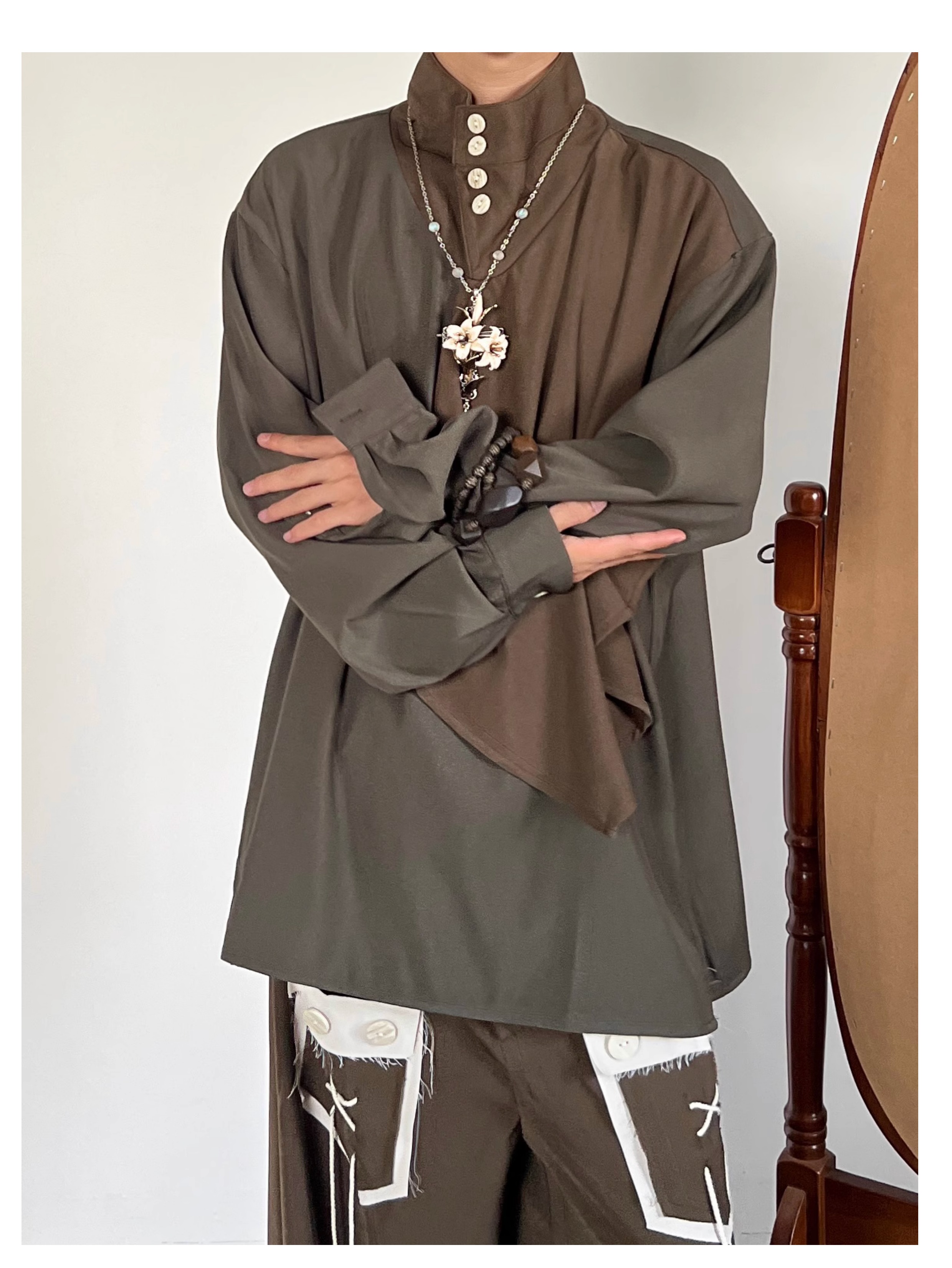 Patchwork Stand Neck Long Sleeve Shirt WN19994