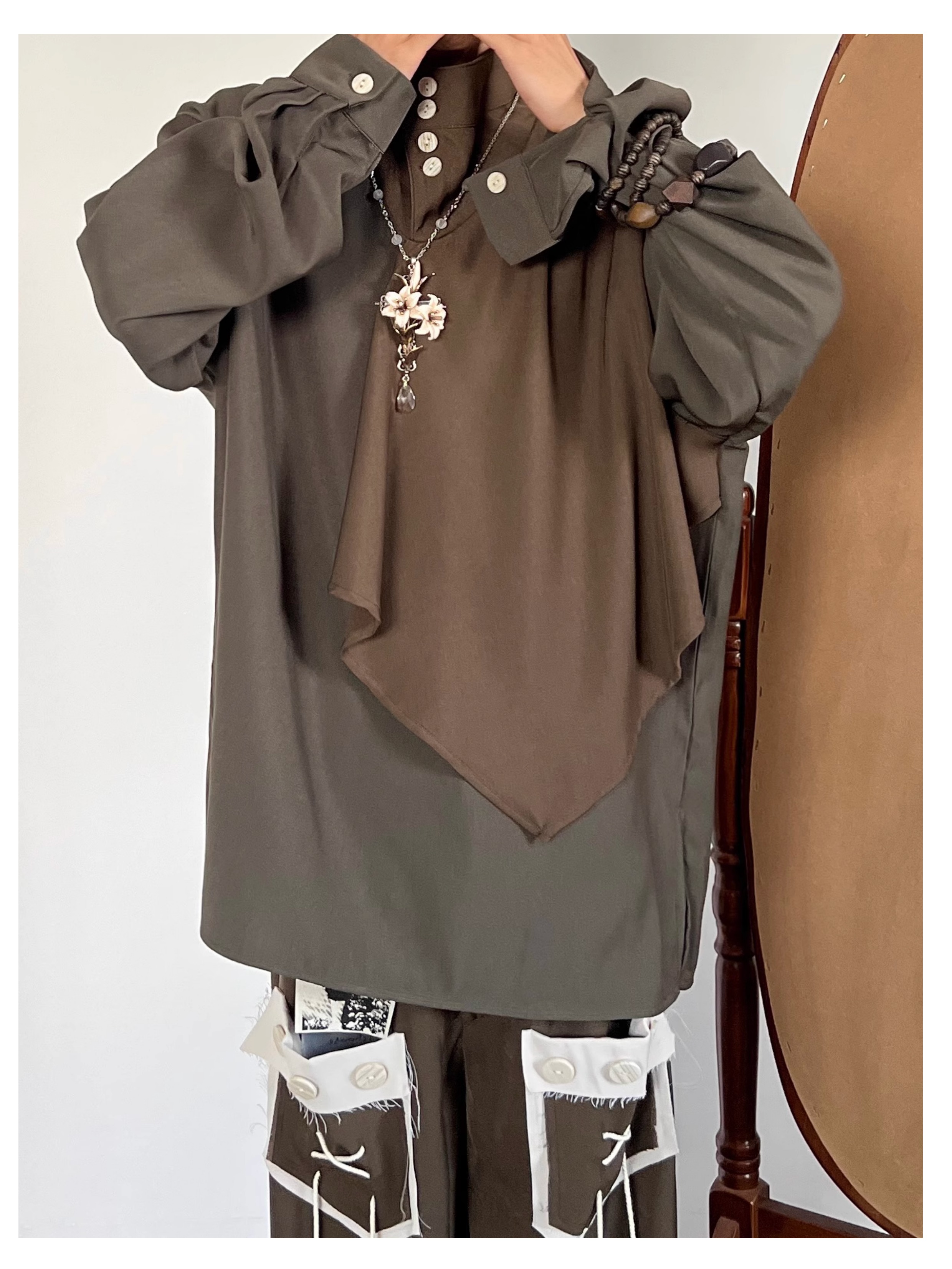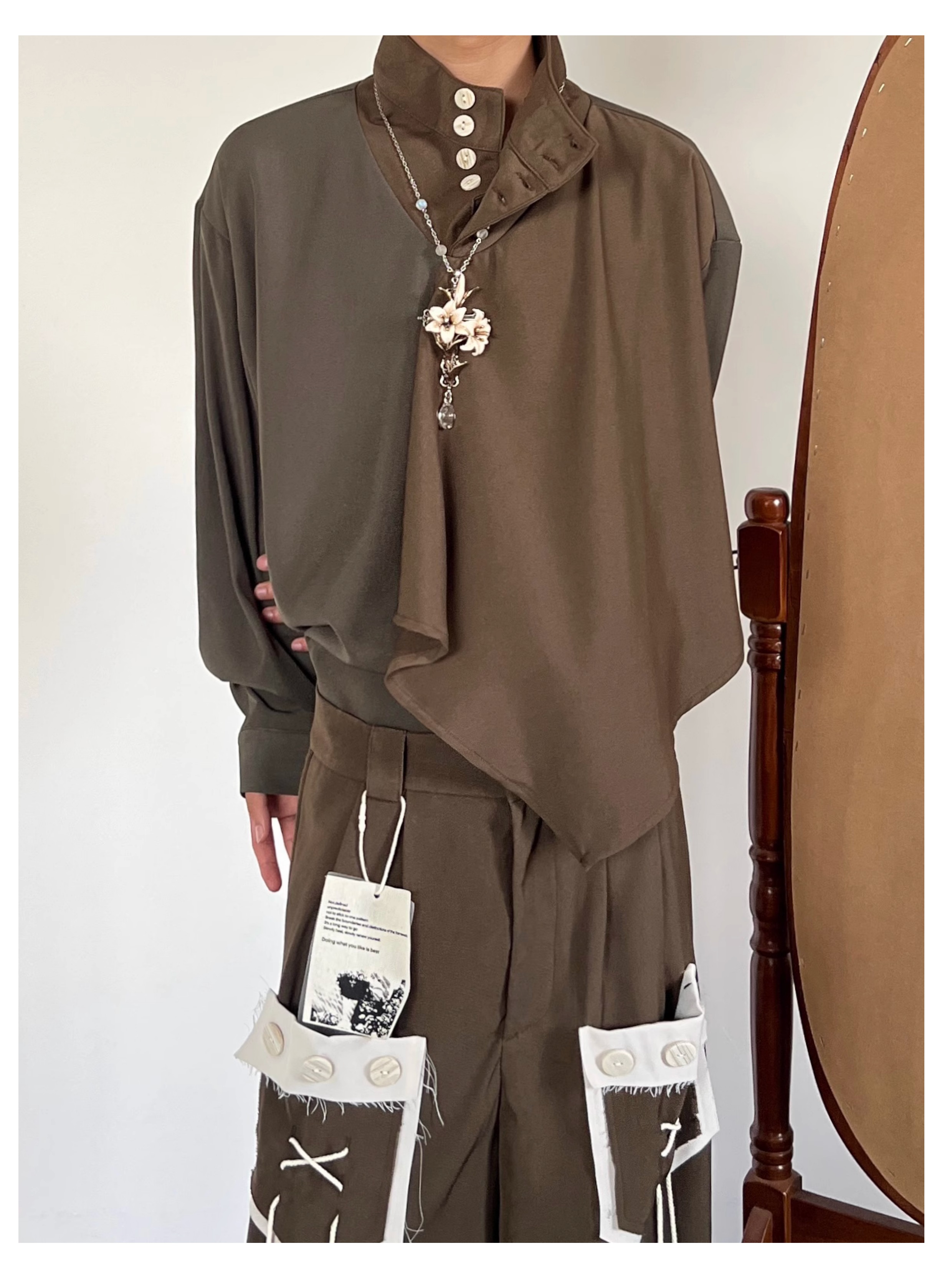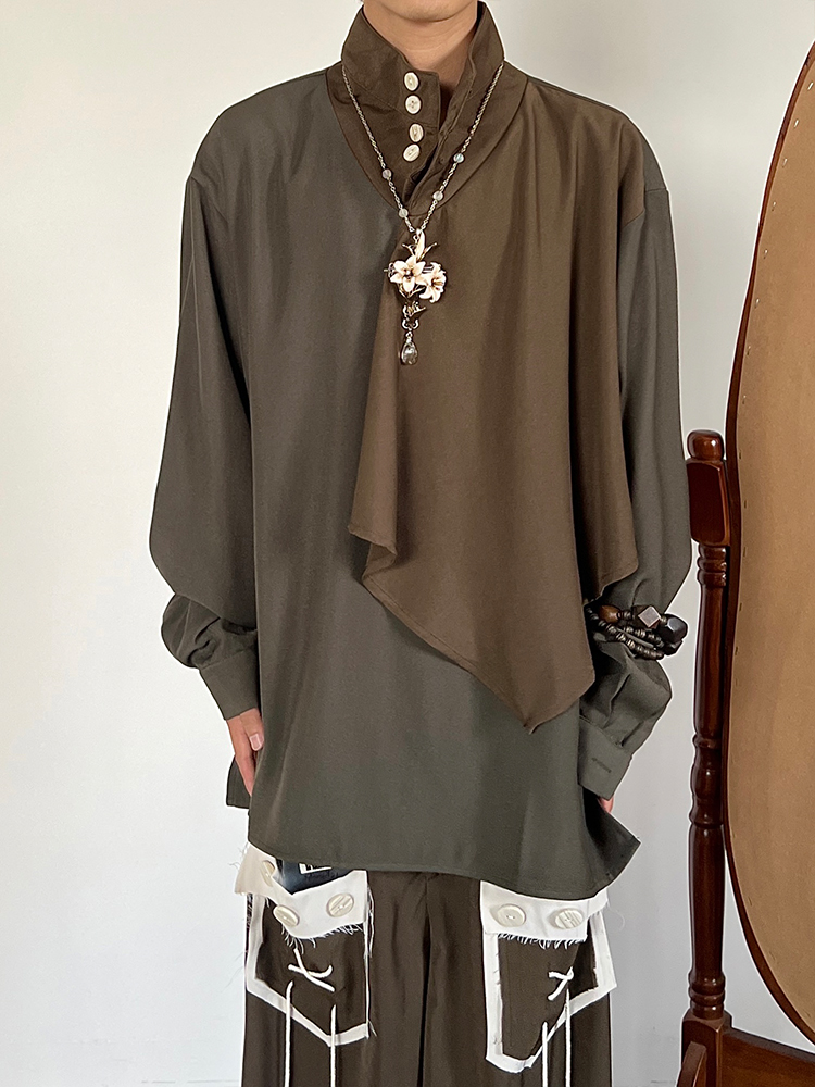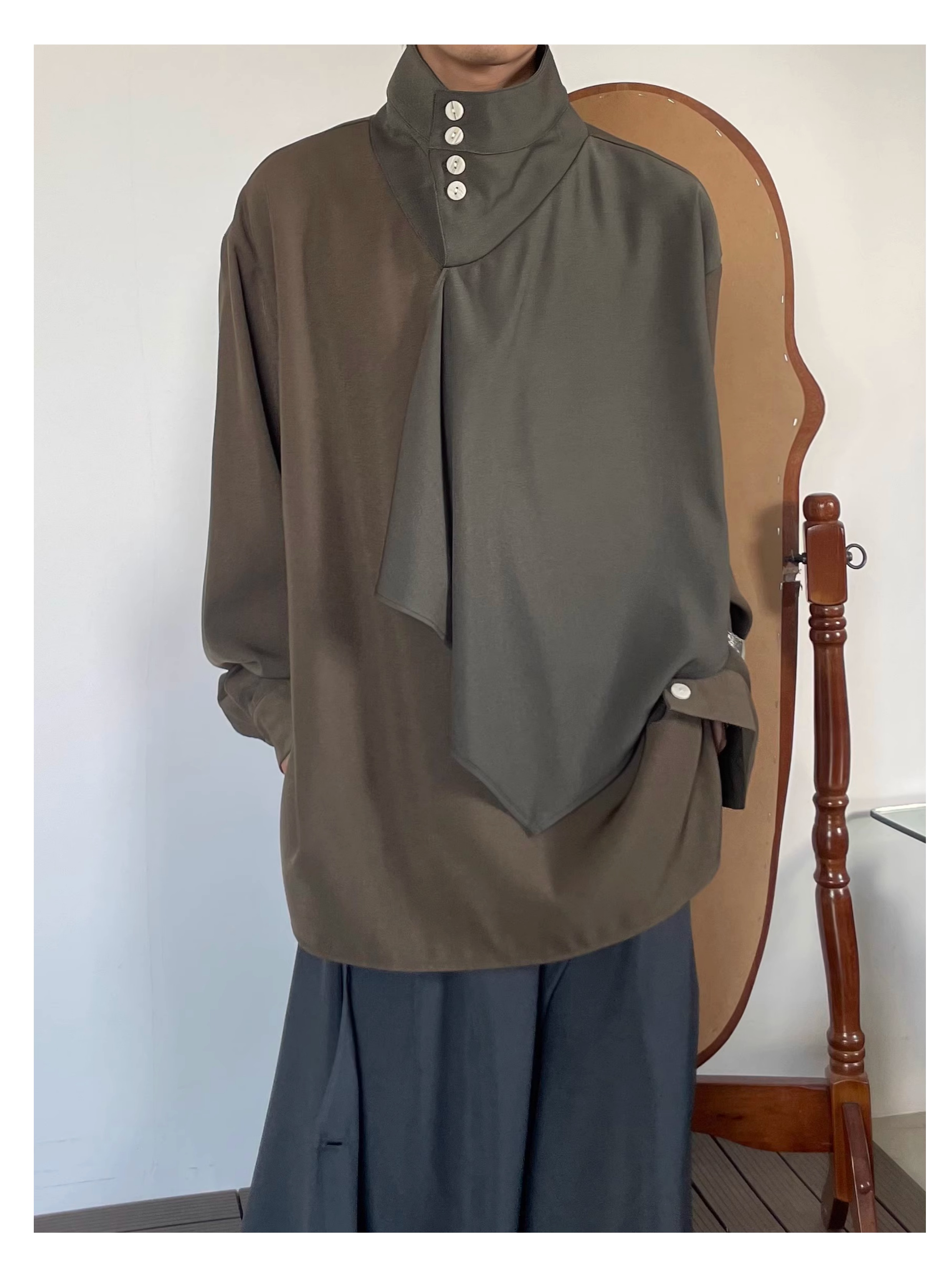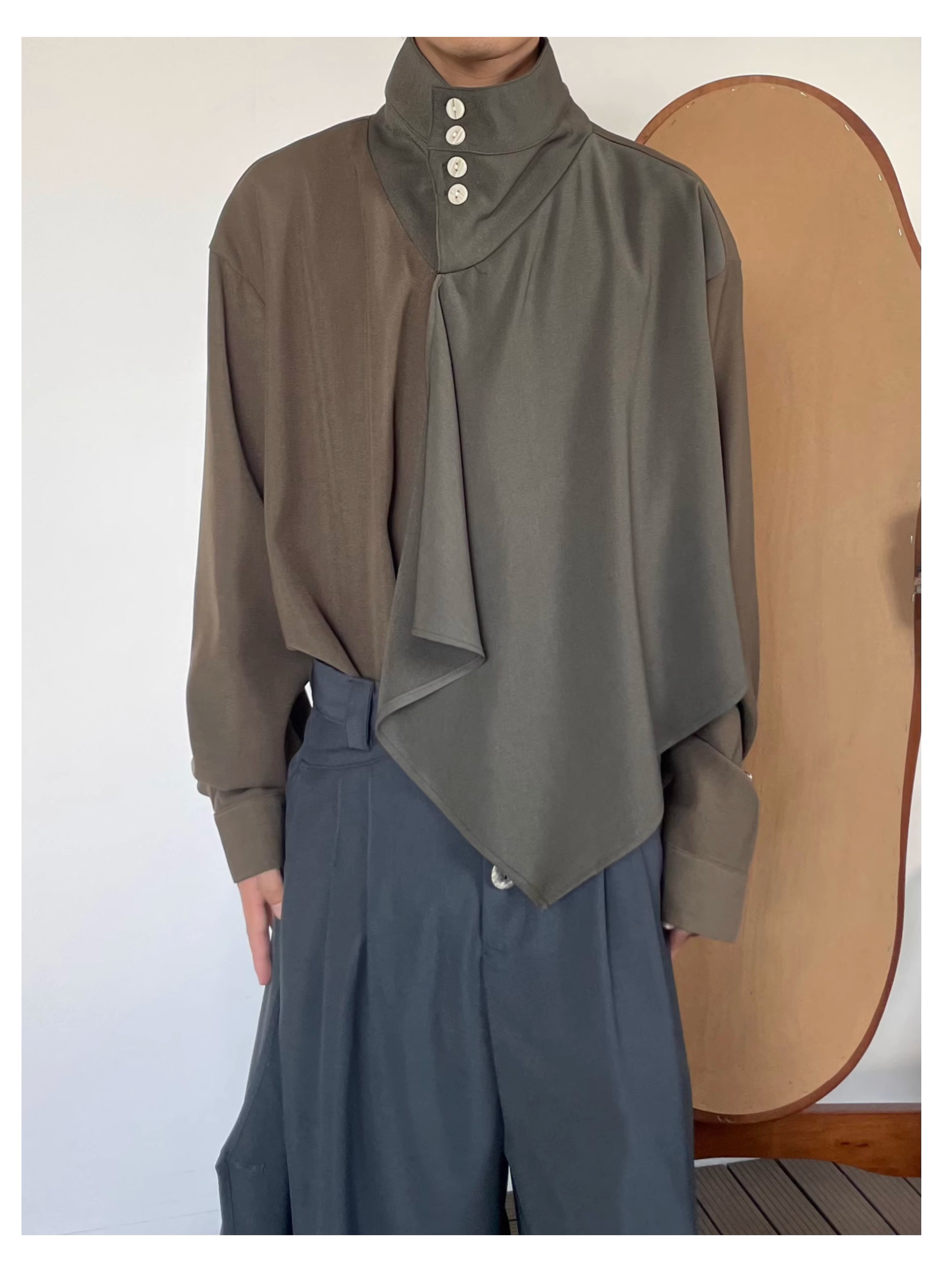 Patchwork Stand Neck Long Sleeve Shirt WN19994