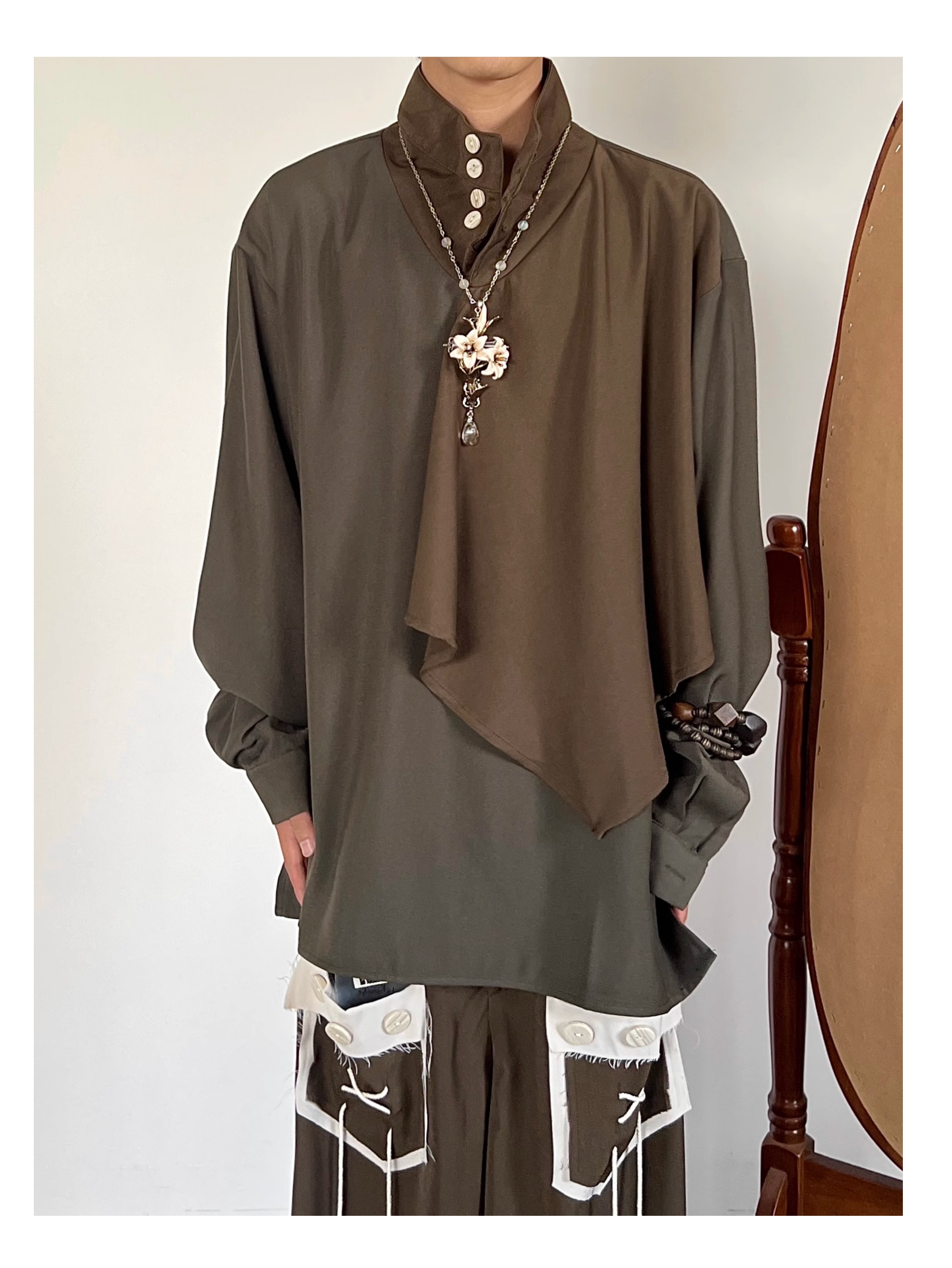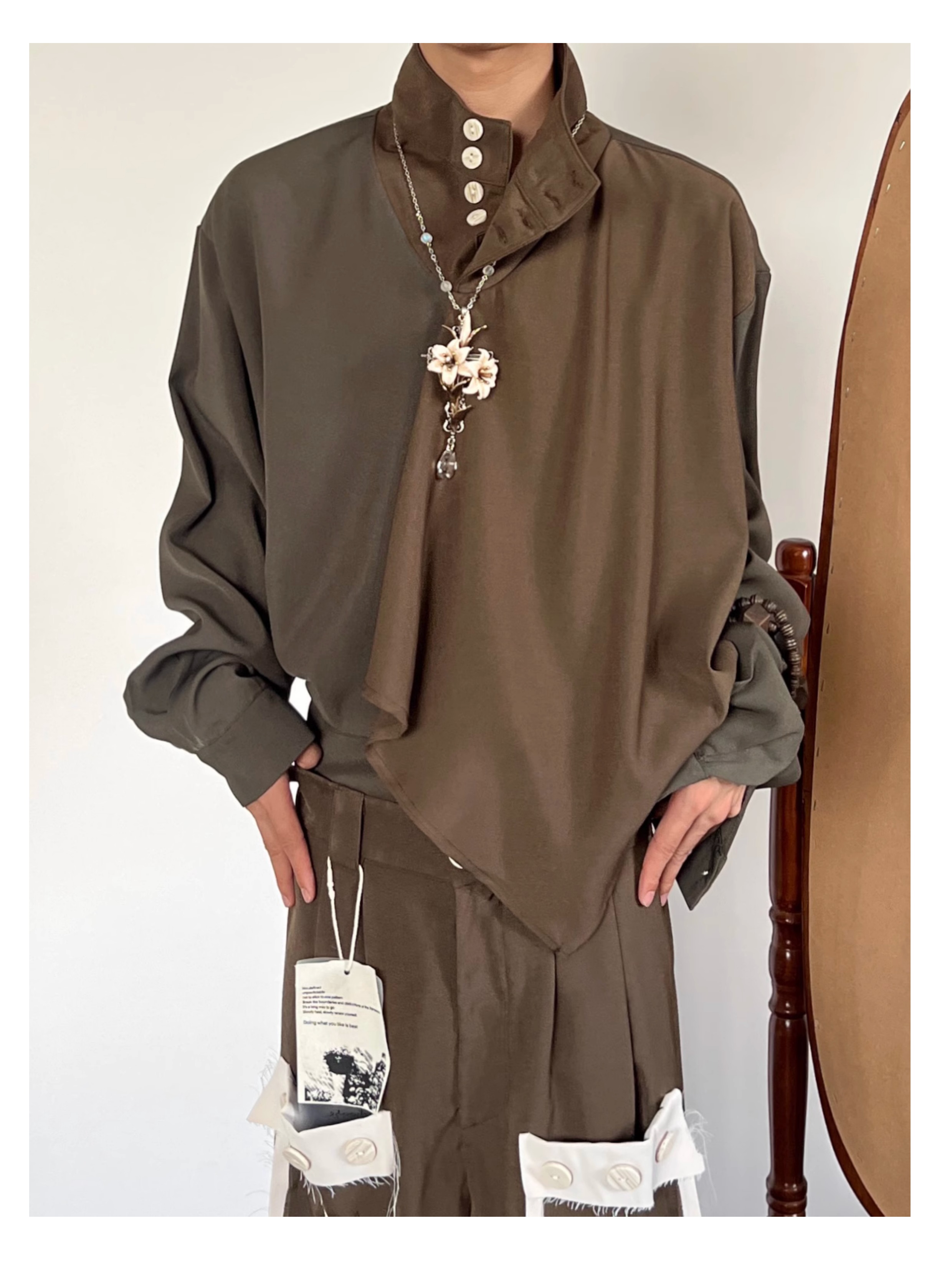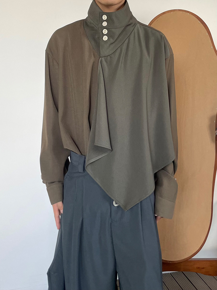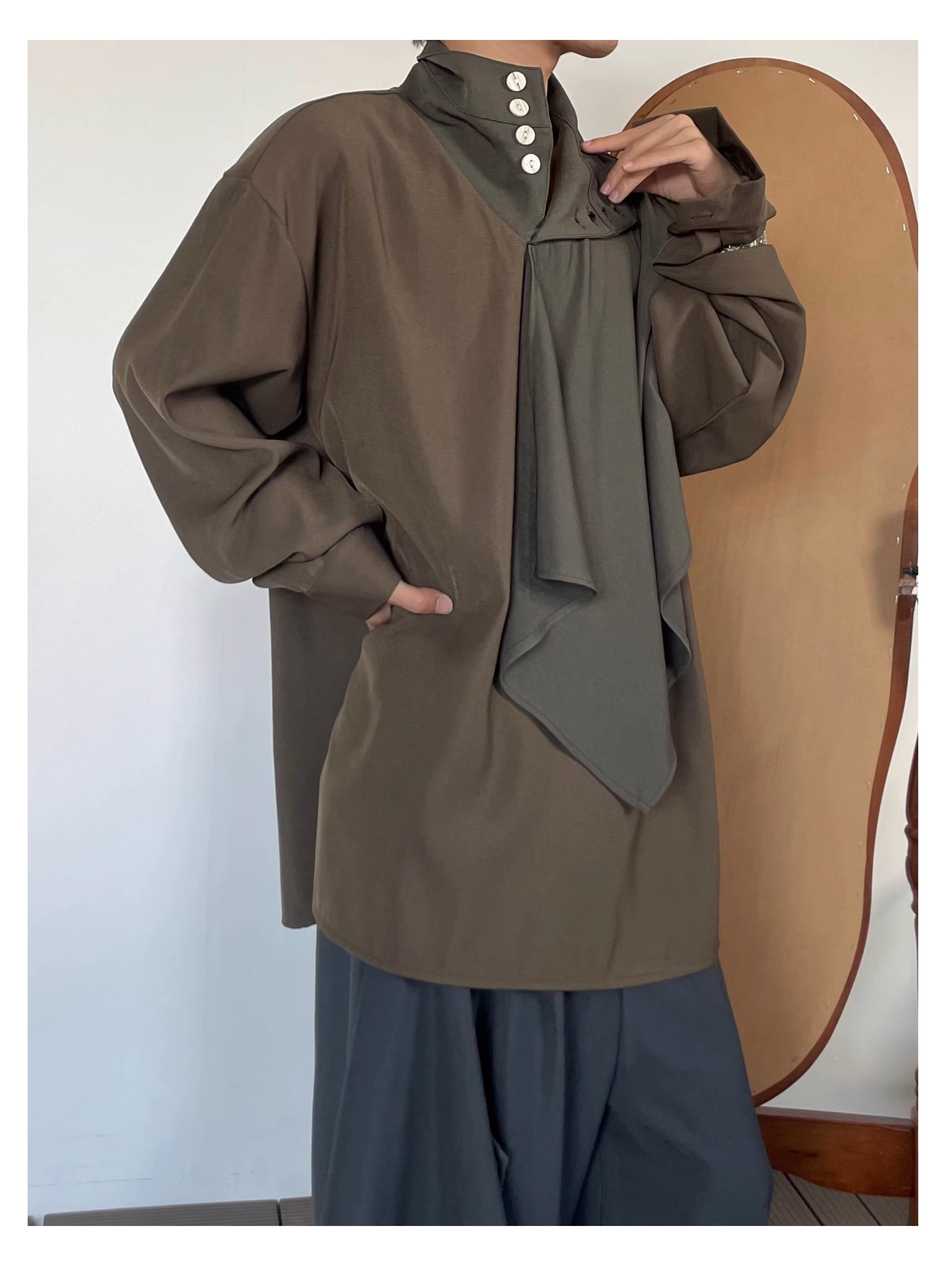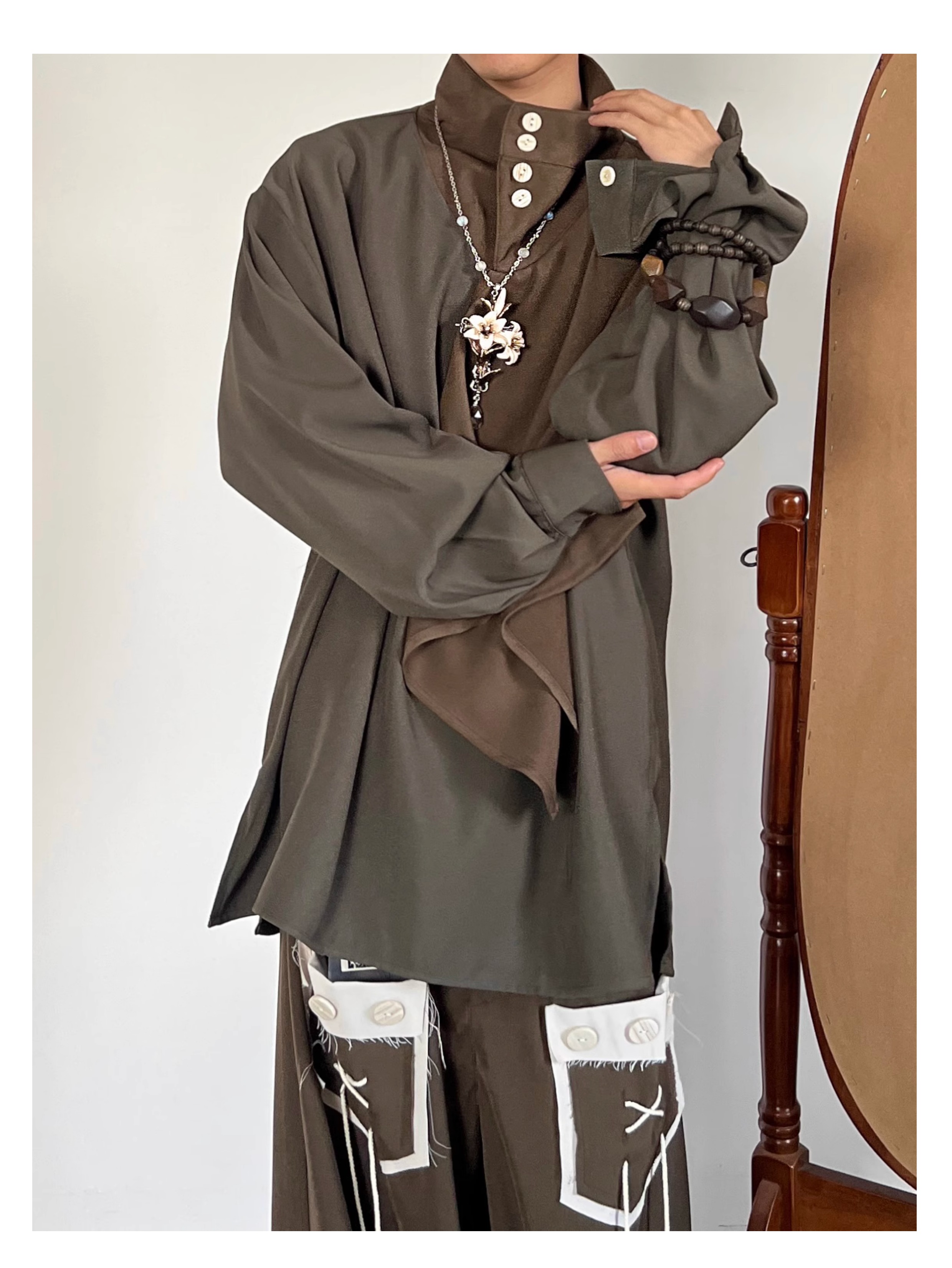 Patchwork Stand Neck Long Sleeve Shirt WN19994