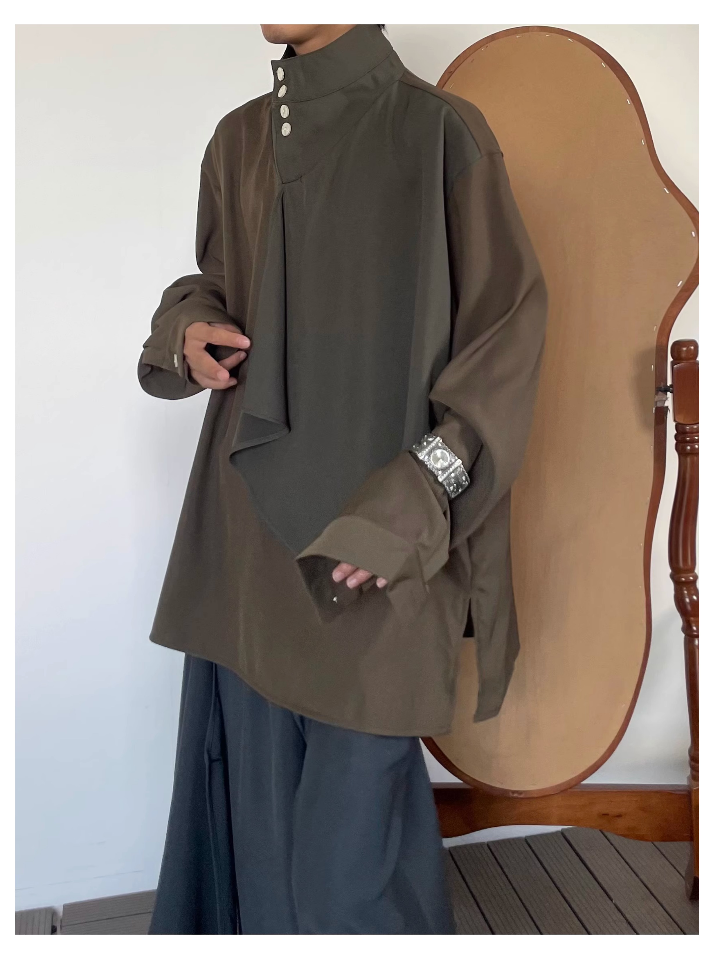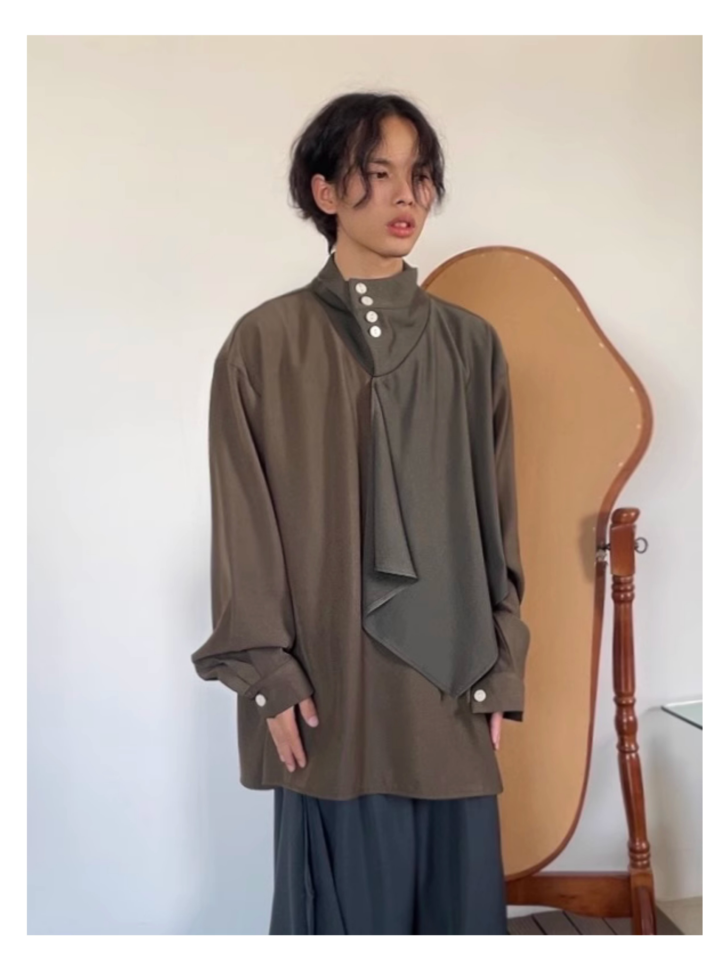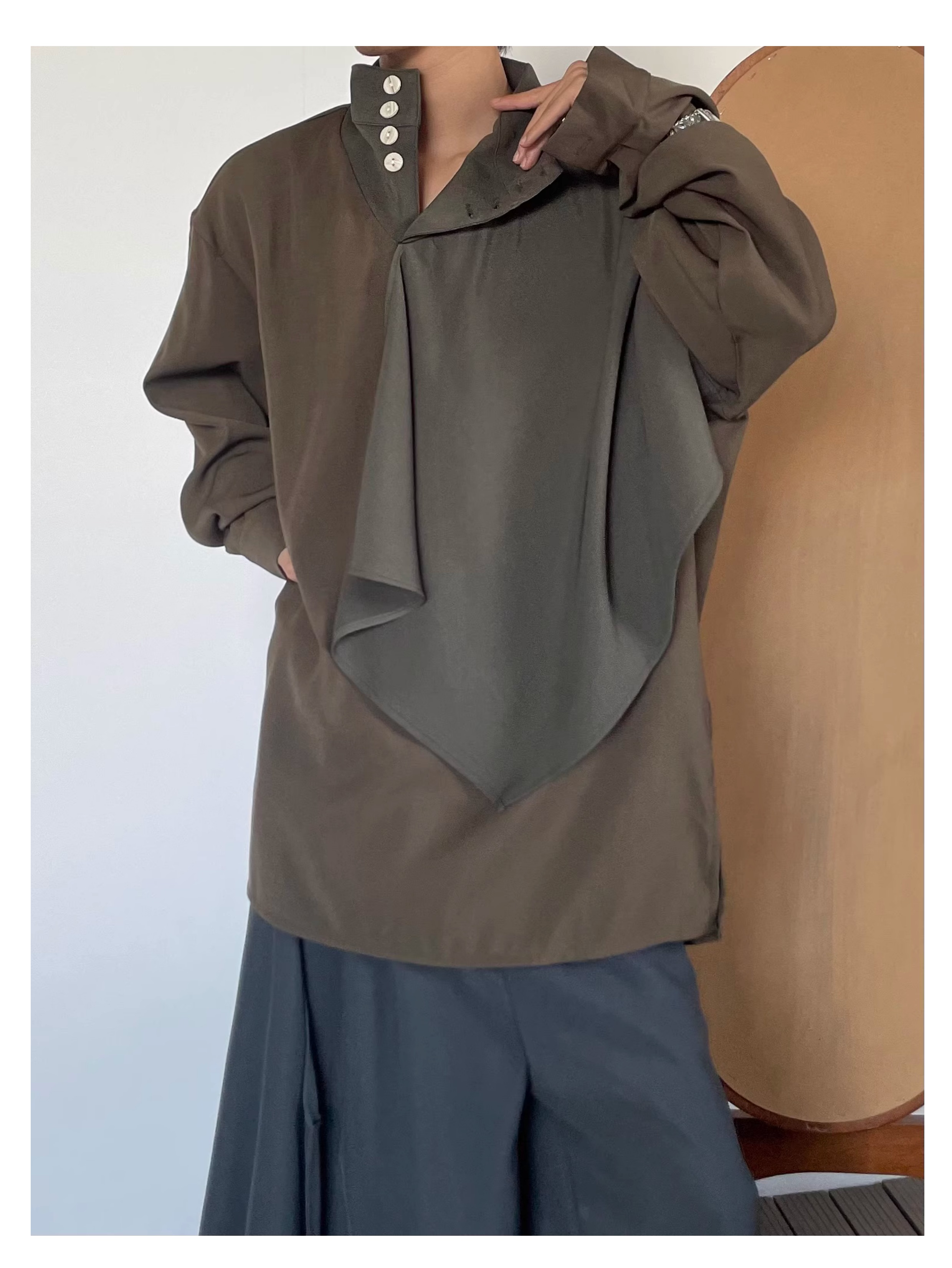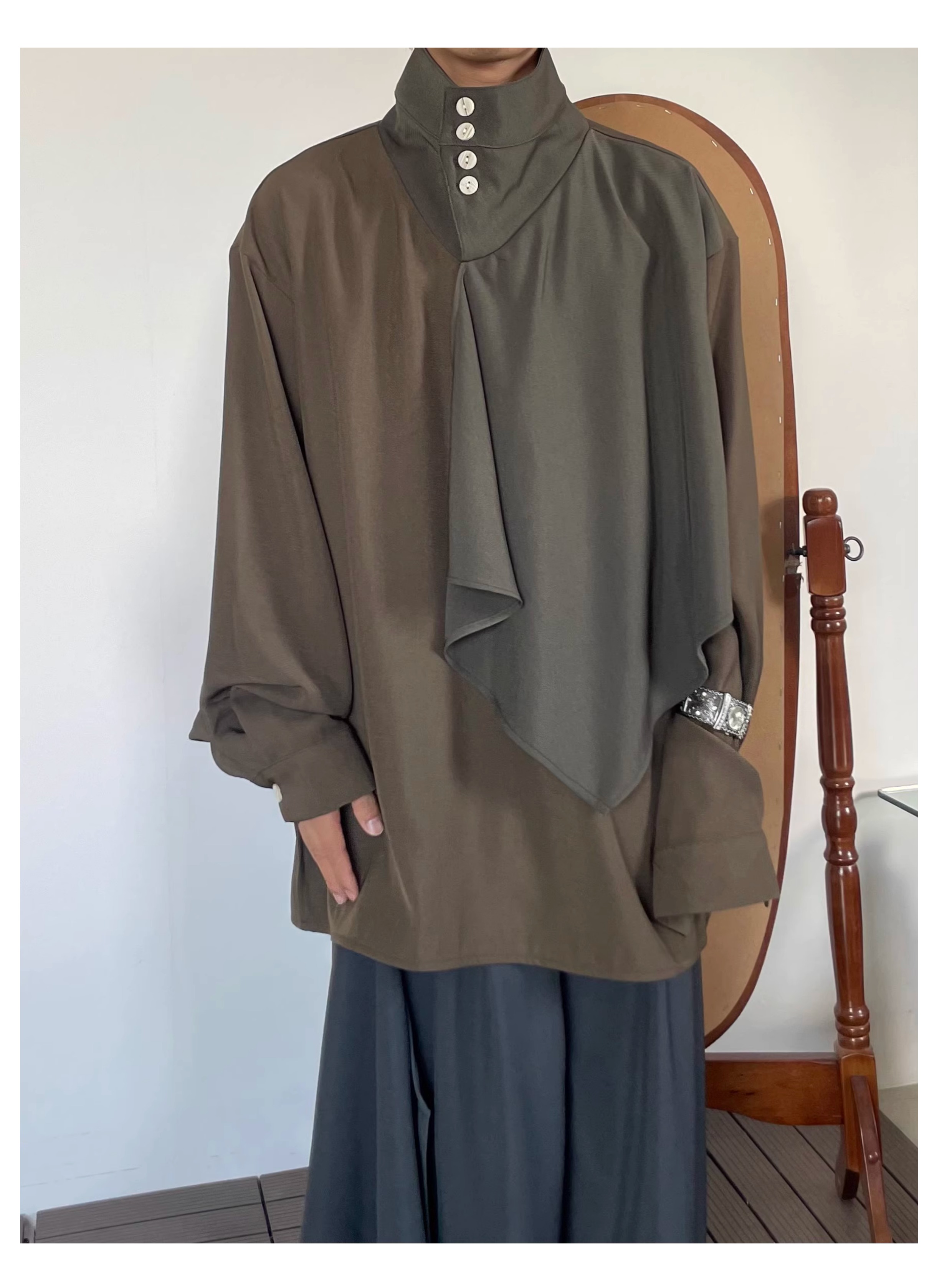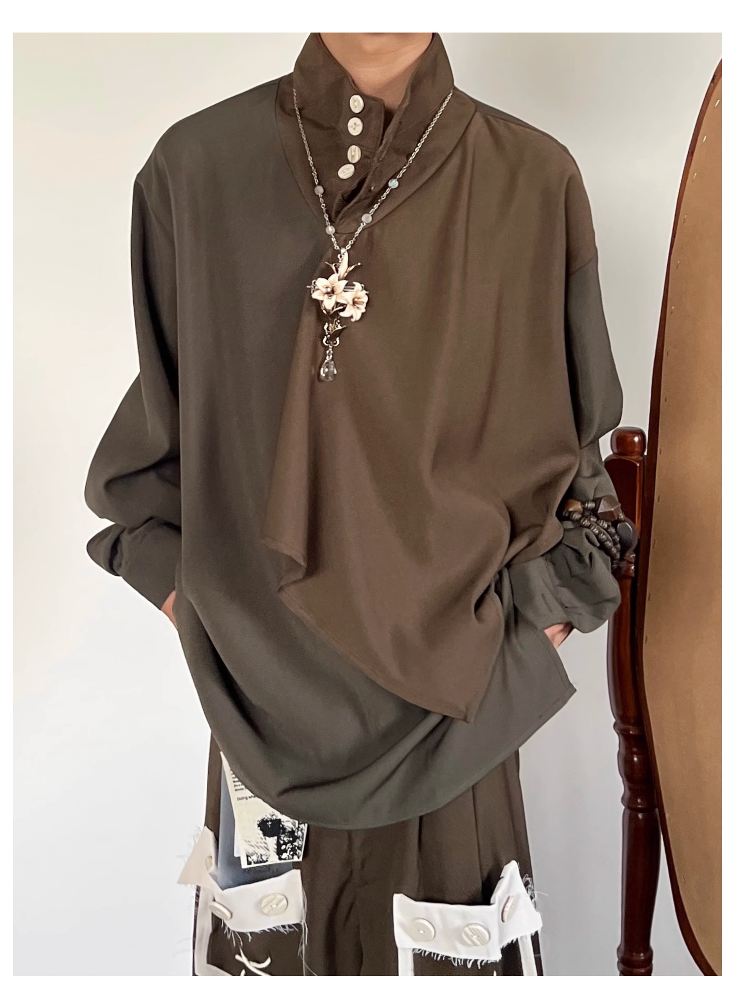 Patchwork Stand Neck Long Sleeve Shirt WN19994